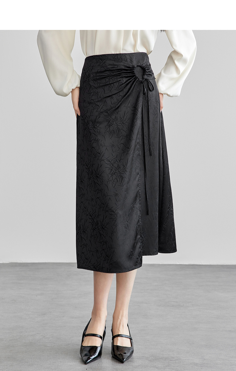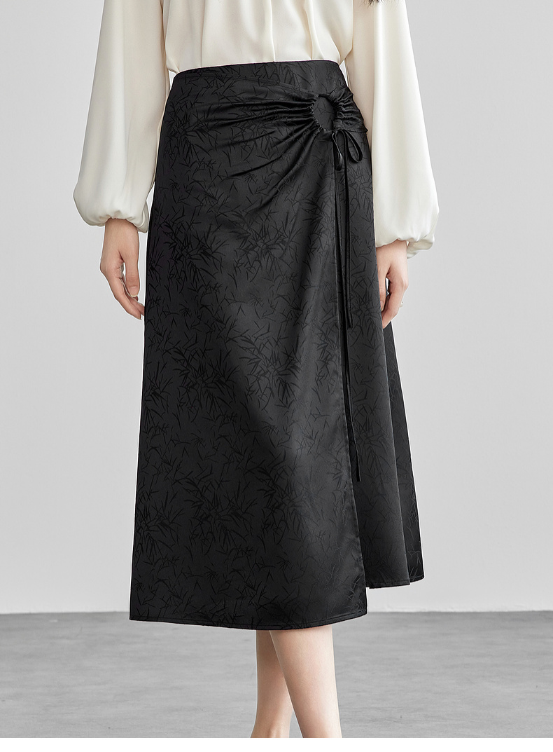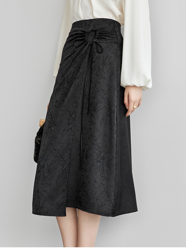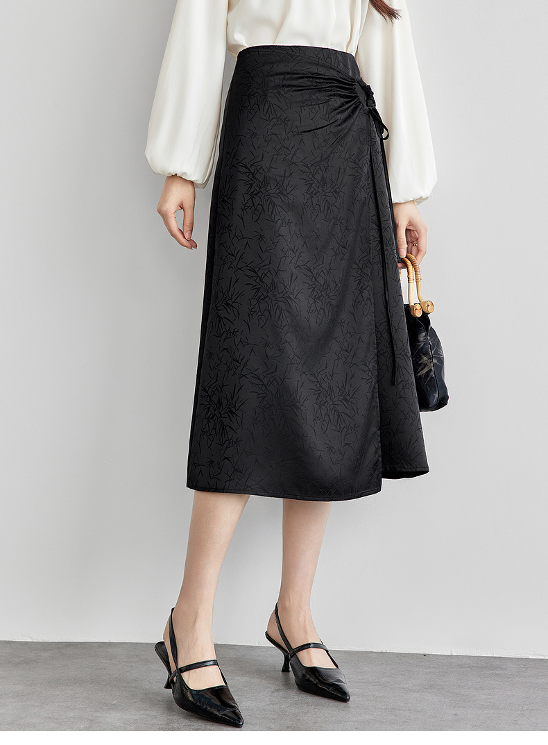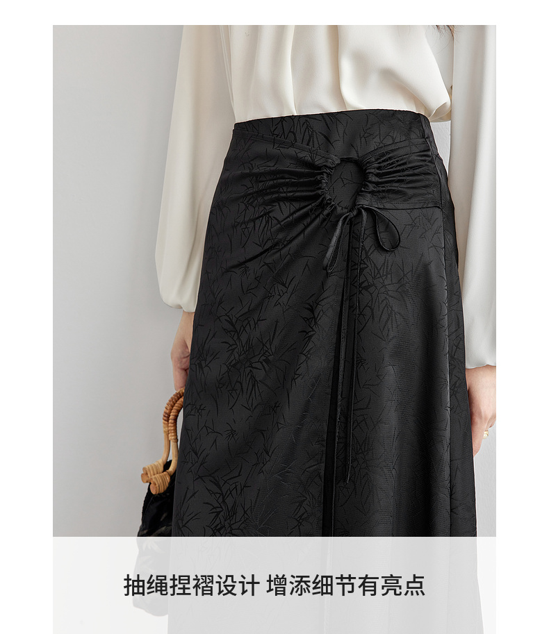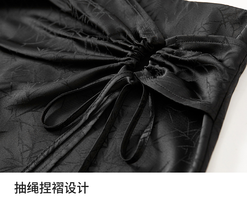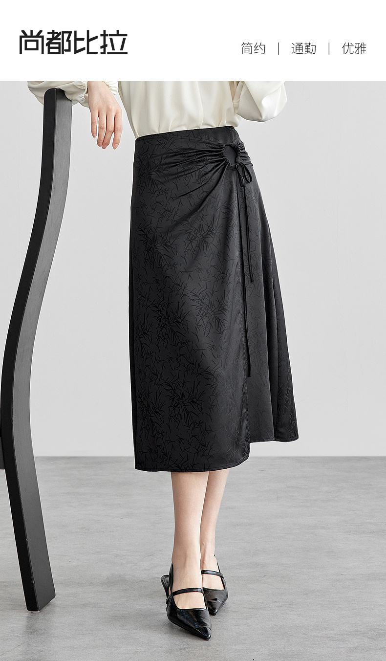 【内购】尚都比拉国风新中式时尚抽绳设计裙摆开衩复古印花半身裙-57472