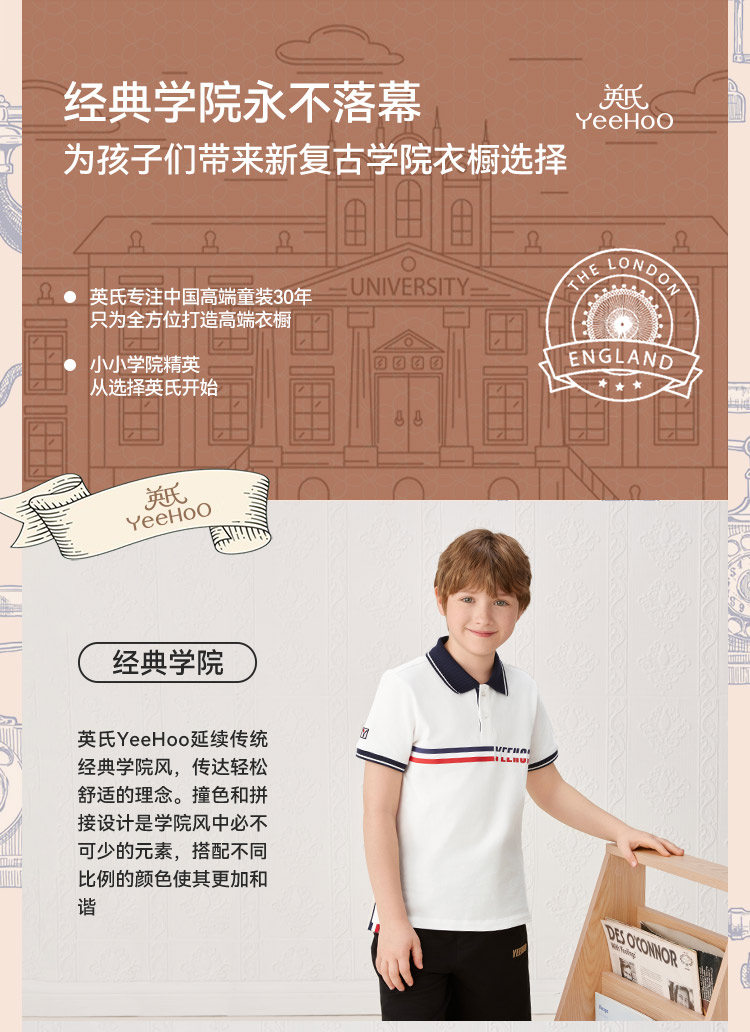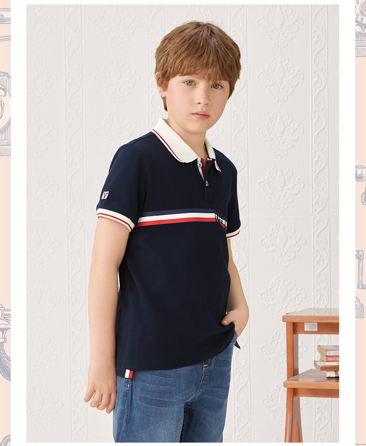 【英氏】【110-165】男童夏季短袖POLO衫