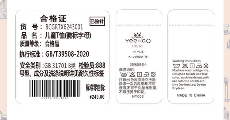 【110-160】男女童夏款插肩袖短袖T恤100%棉