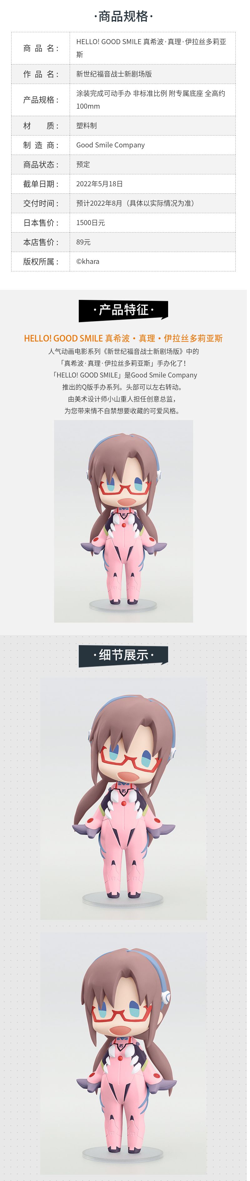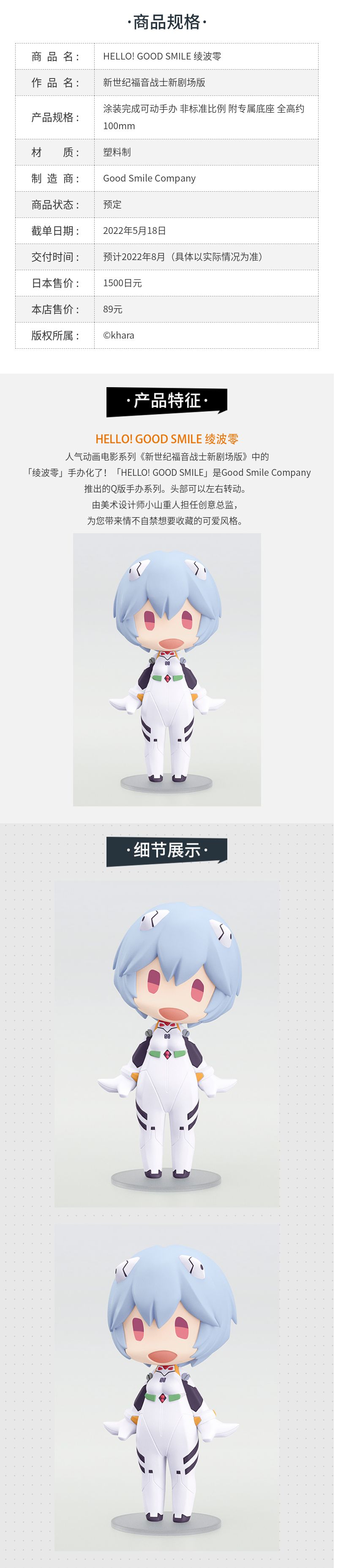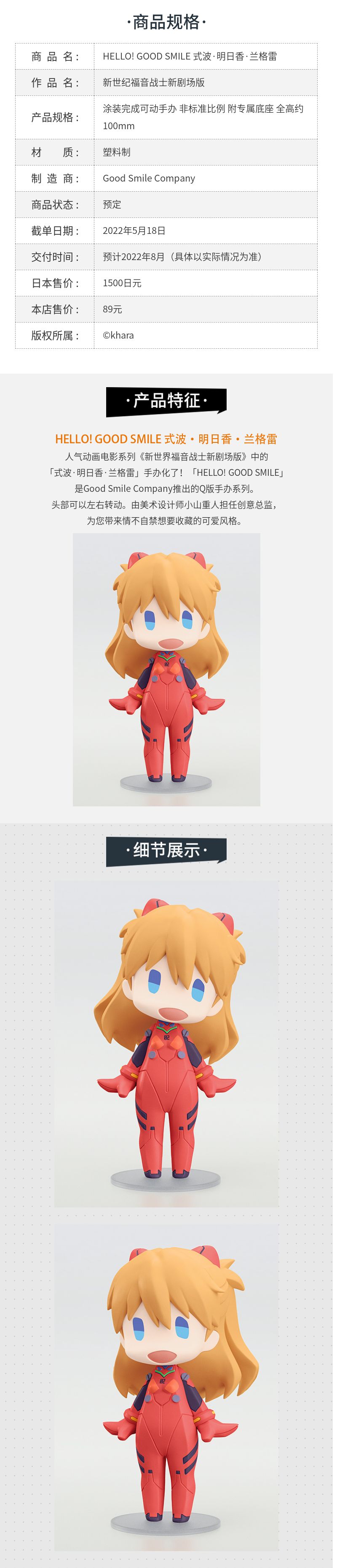 【GSC现货】HELLO! GOOD SMILE绫波零/明日香/真希波 潮玩手办