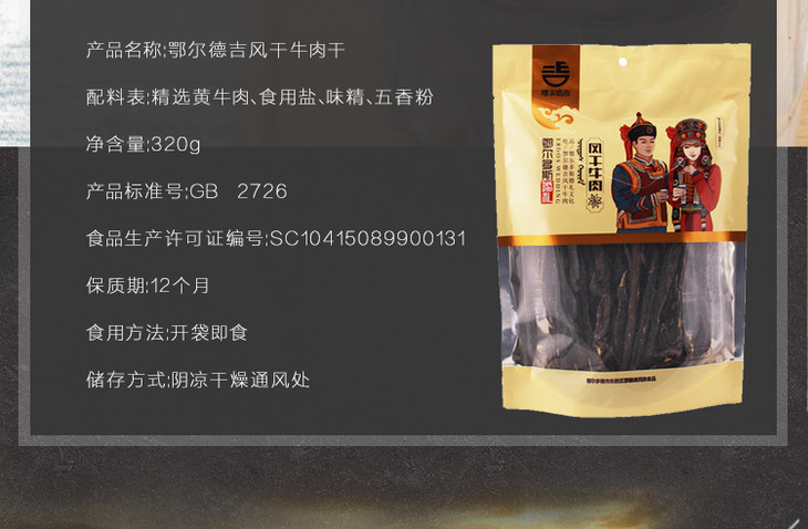 【鄂尔德吉】包邮320g牧区风干牛肉干