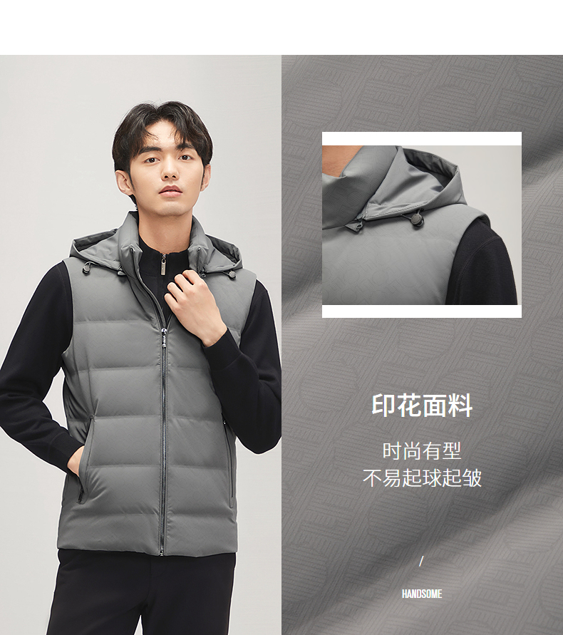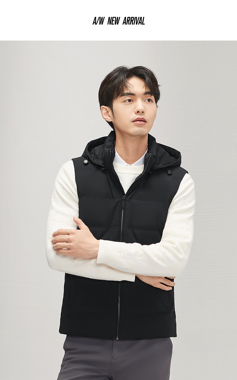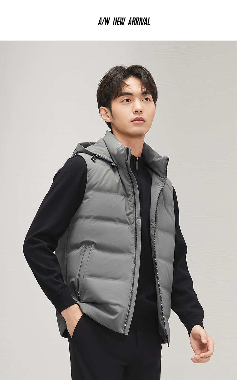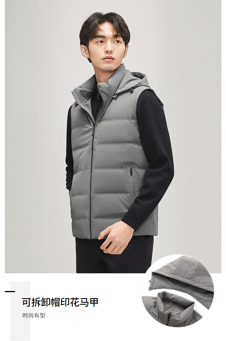 【白鸭绒】柒牌羽绒马甲男2024冬季新款可脱卸帽保暖加厚背心外套 127E71750