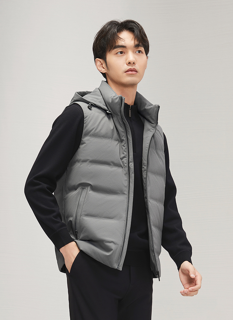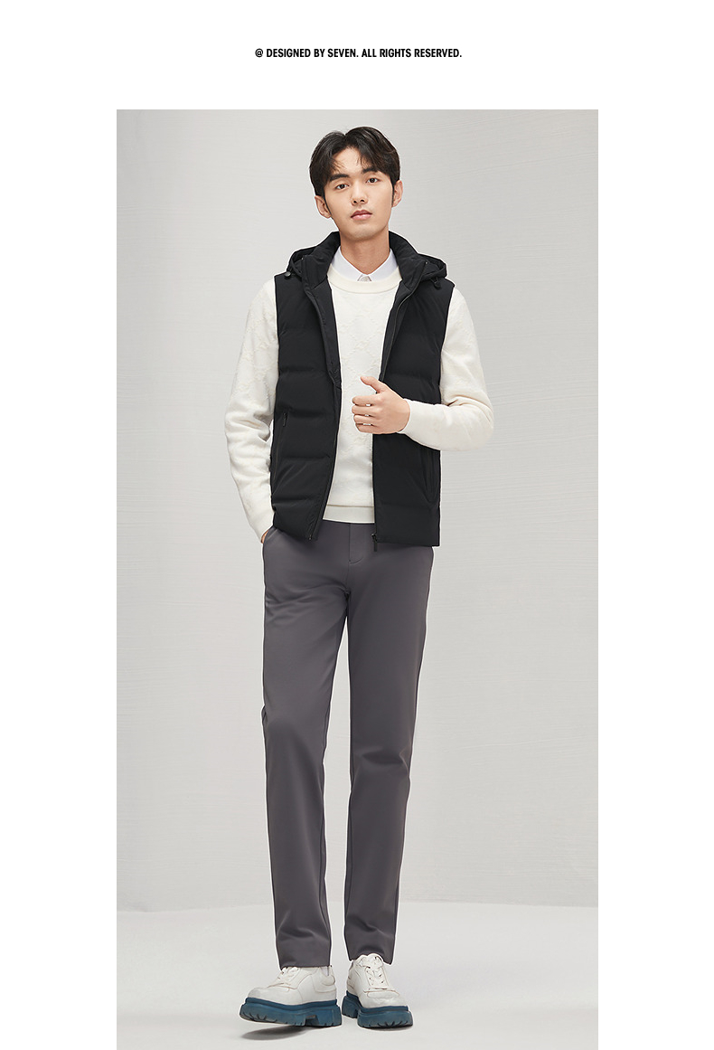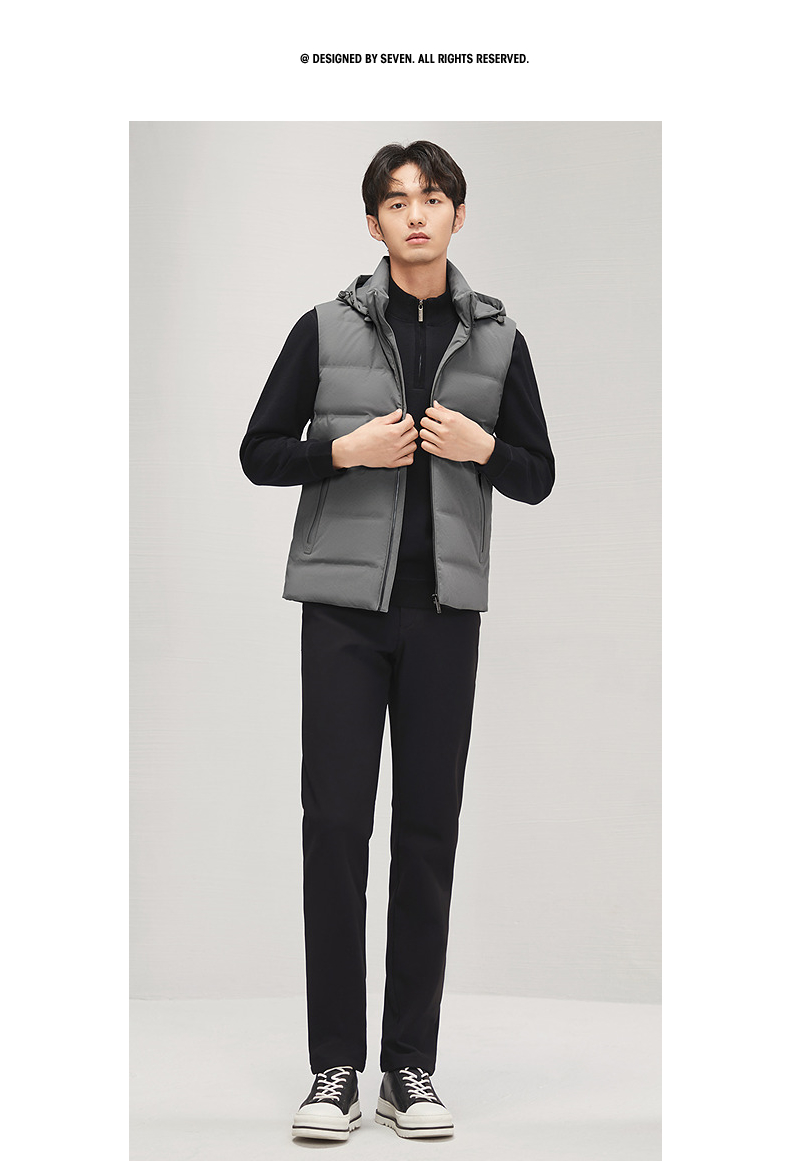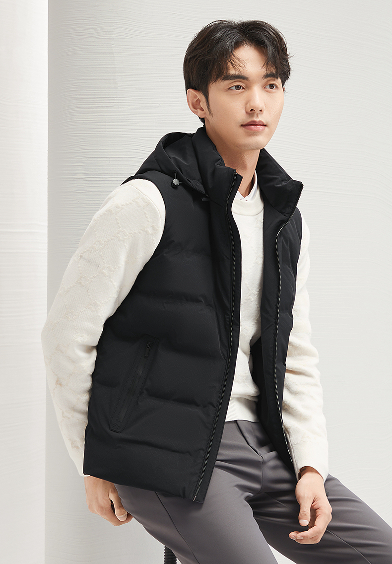 【白鸭绒】柒牌羽绒马甲男2024冬季新款可脱卸帽保暖加厚背心外套 127E71750