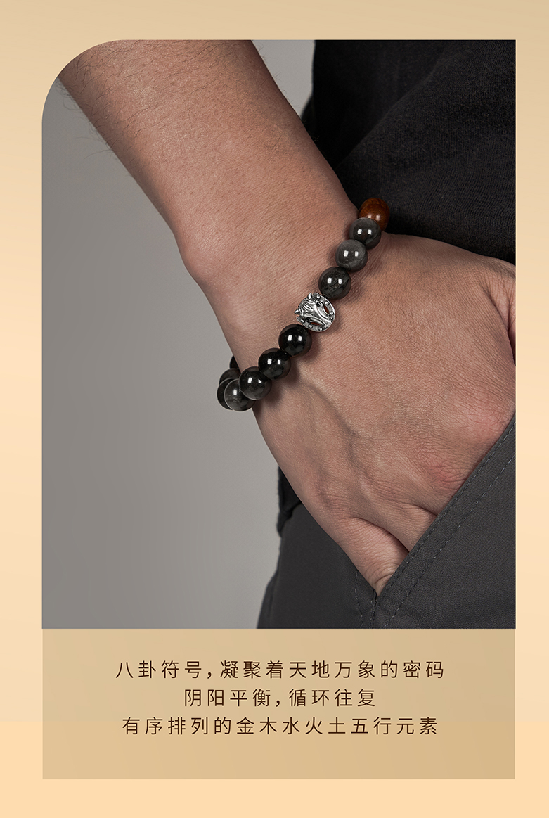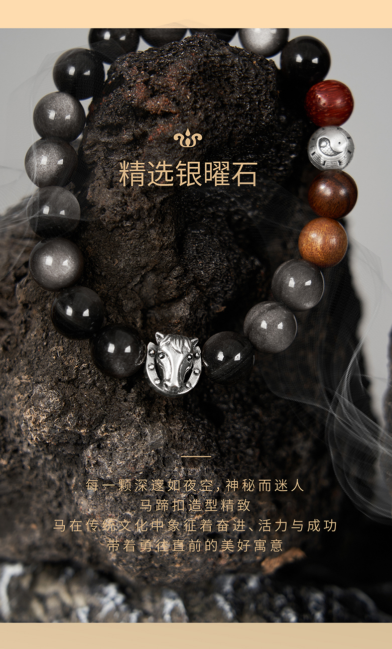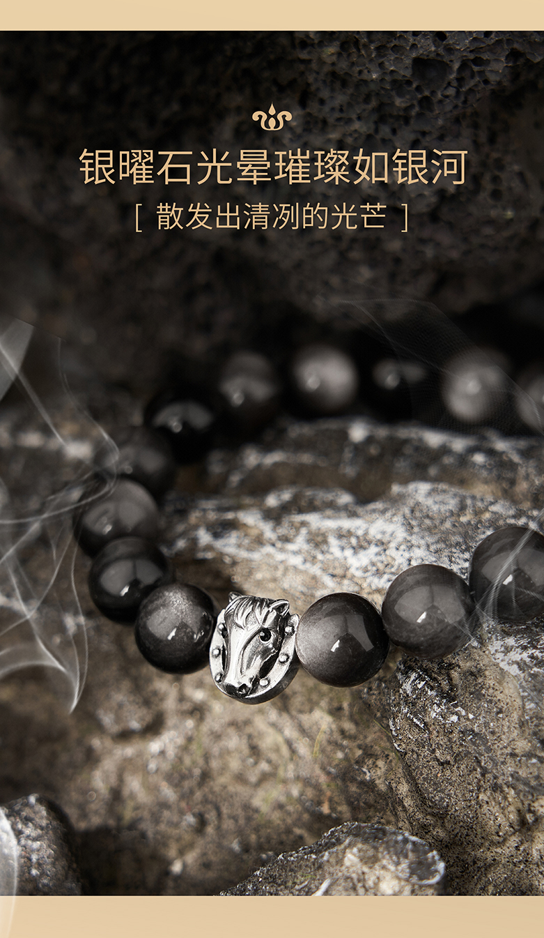 大英博物馆 欧洲文化艺术系列 玄影马扣八卦银曜石 手链