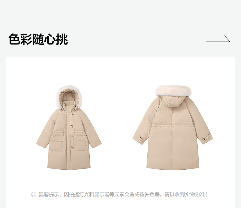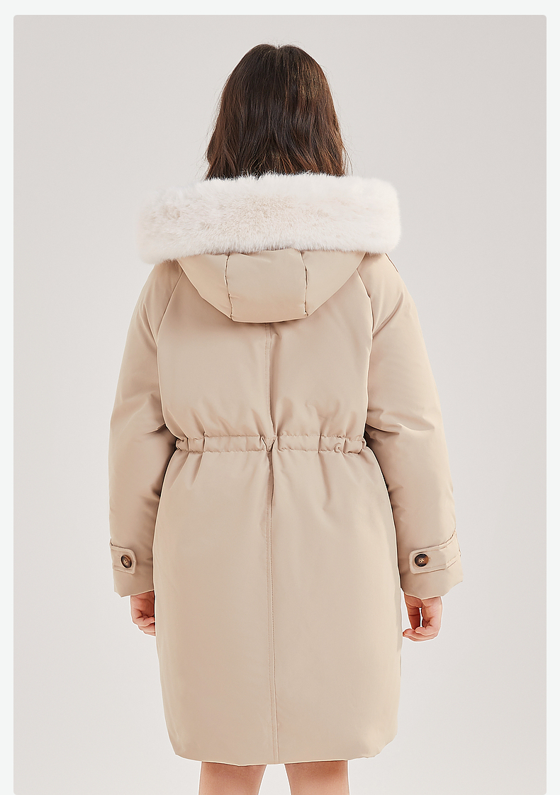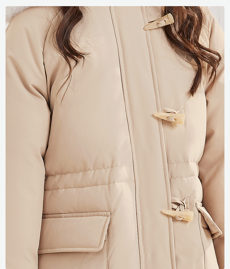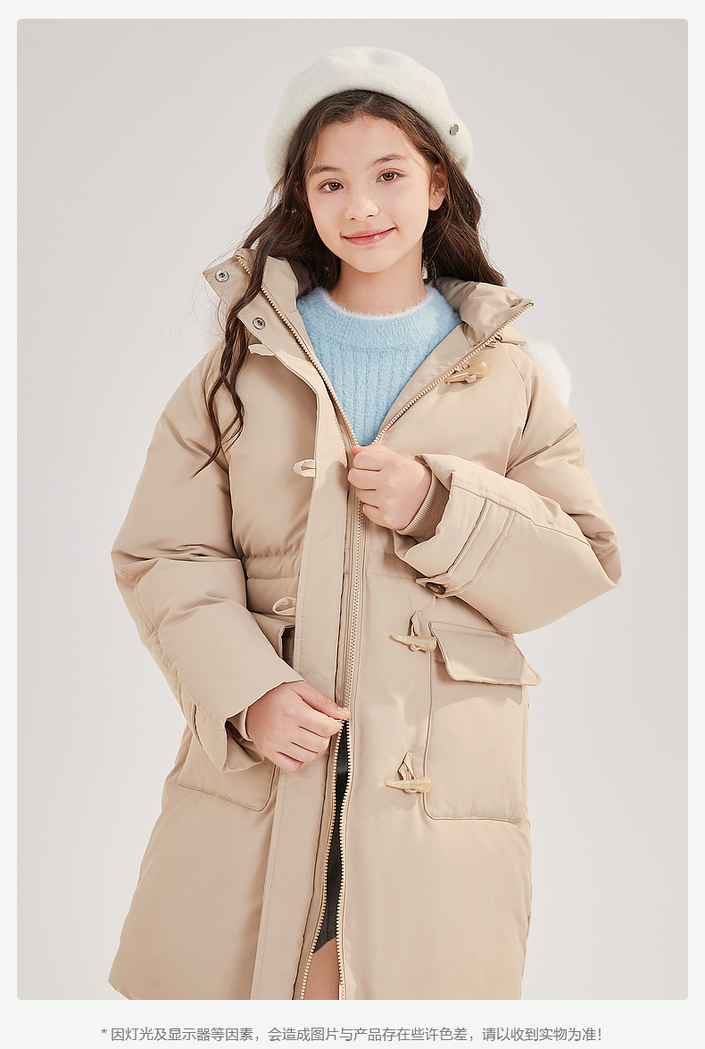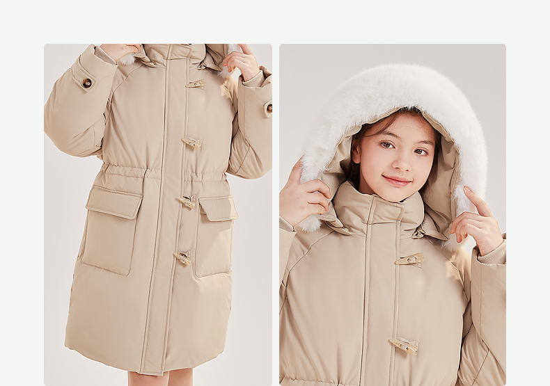 笛莎Deesha青少年女童羽绒服2024冬季新款复古学院风中长款连帽羽绒服