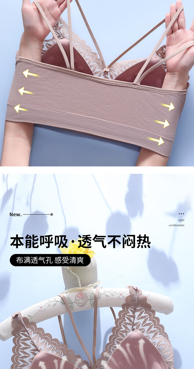 【别嫌它便宜!真的很好穿!59三件的 法式蕾丝裸感美背内衣】内嵌式杯垫 按摩解压 布满透气孔 感受清爽 蕾丝点缀 持久弹性 贴身无勒痕 M#