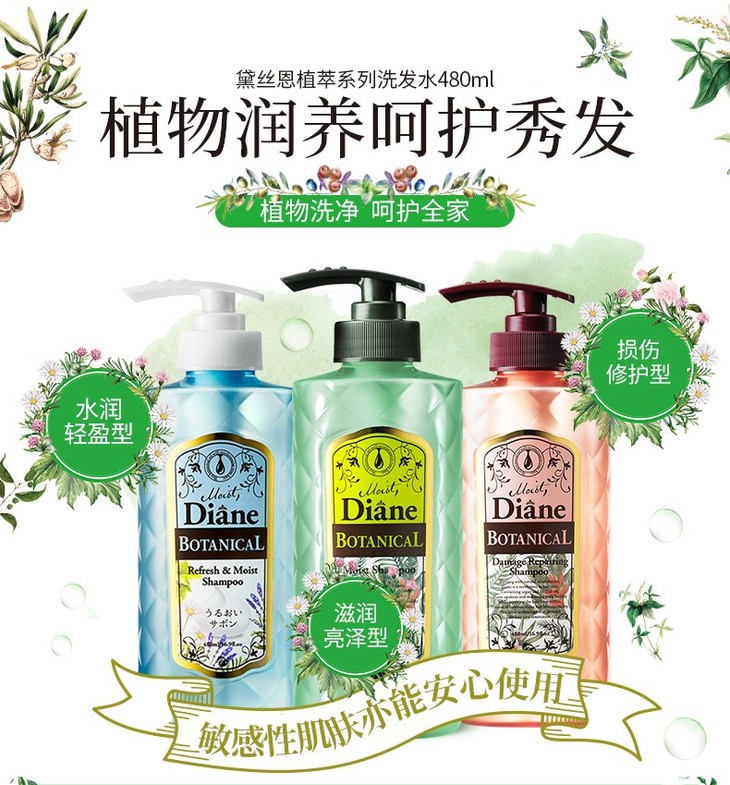 【保税仓】MOIST DIANE/黛丝恩 植萃洗护套装 滋润亮泽型