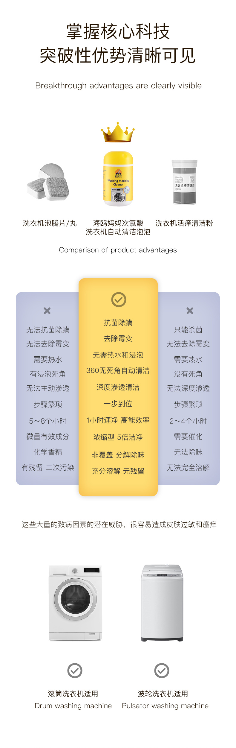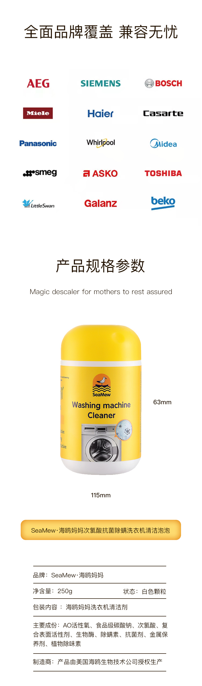 【升级加量了!每瓶500g】海鸥妈妈·自动靶向清洁技术 抗jun除螨洗衣机自净小黄瓶 关爱家人健康~ 500g/瓶