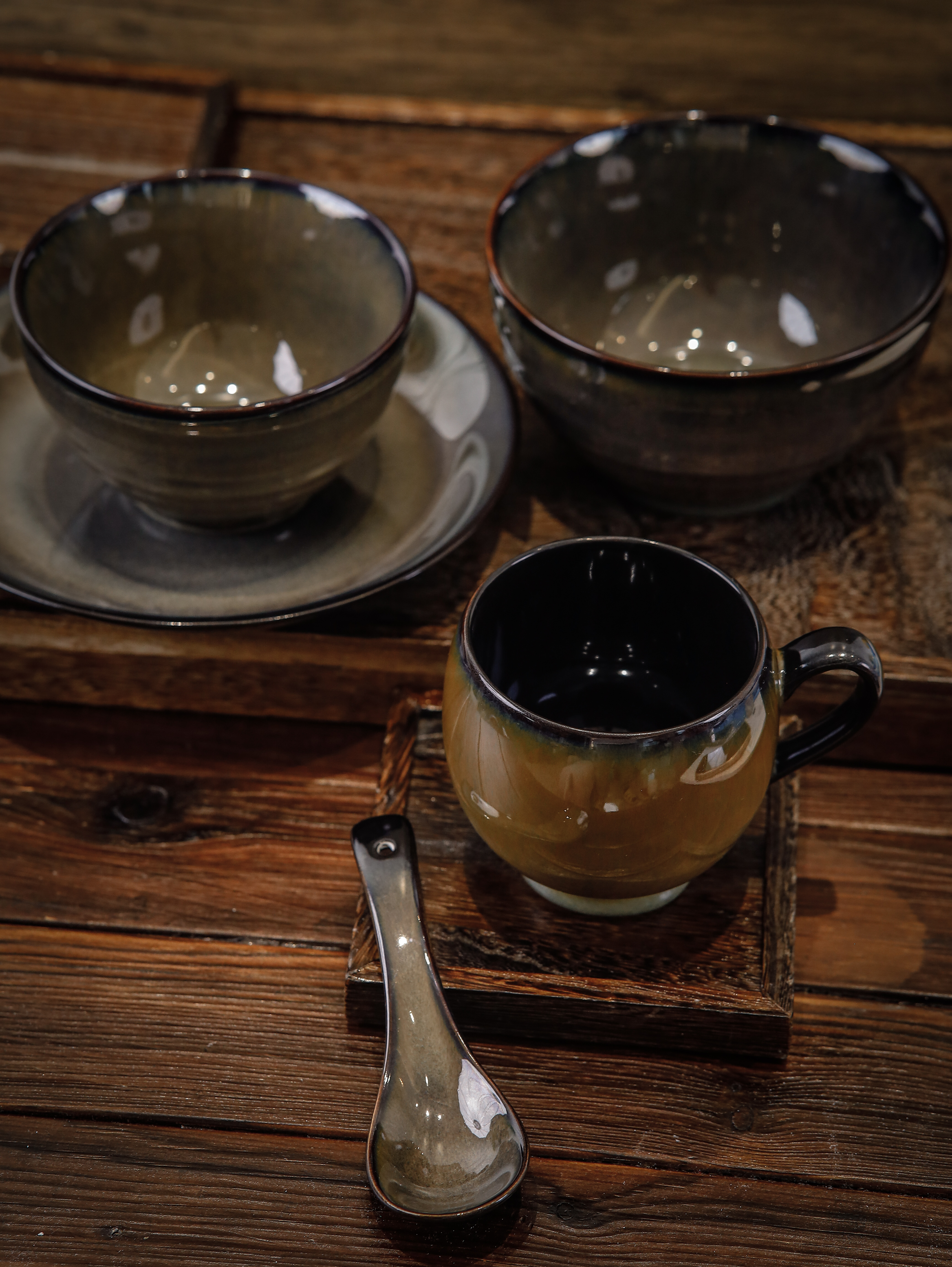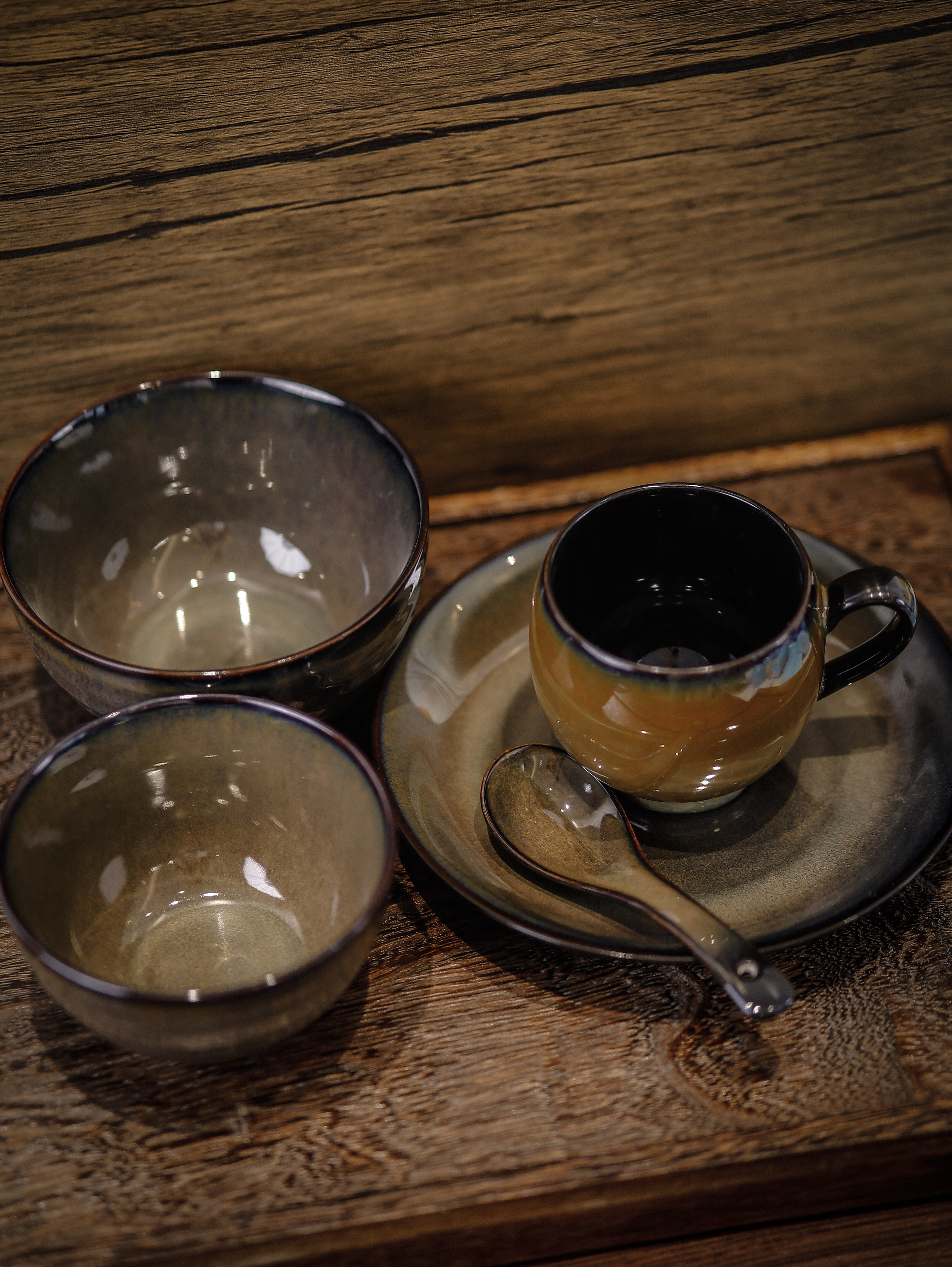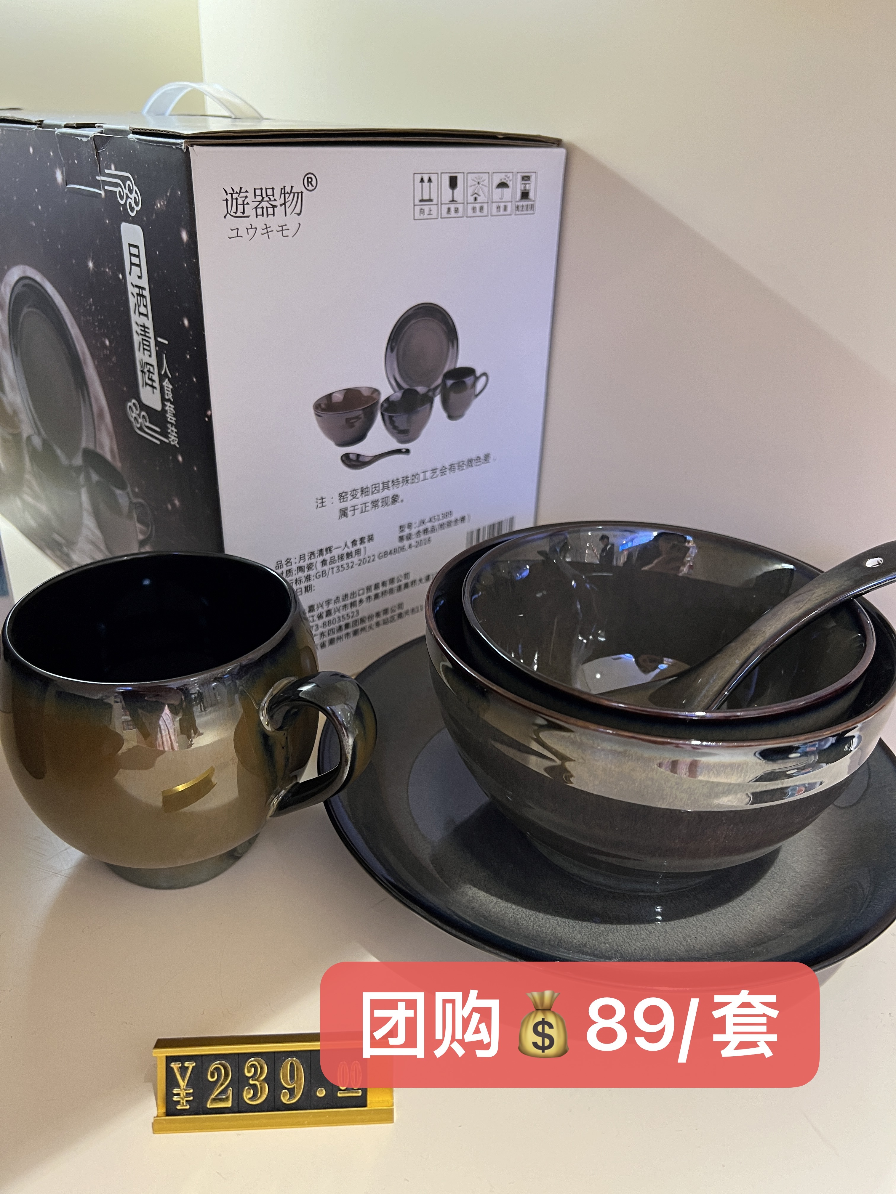 5件套💰89‼️久光在售❗️品牌直发❗️【游器物星汉灿烂/月洒清辉套装】 🔺礼盒包装发货🔺大碗+小碗+口杯+汤盘+小汤勺 ✅上等精致陶瓷✅圆型碟面,移动间浮动光影 ✅窑变工艺+十余道复杂工序
