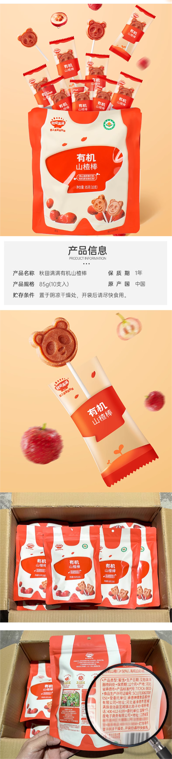 秋田满满有机山楂棒 85g(内10支)