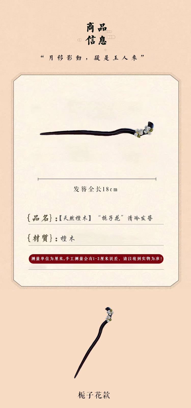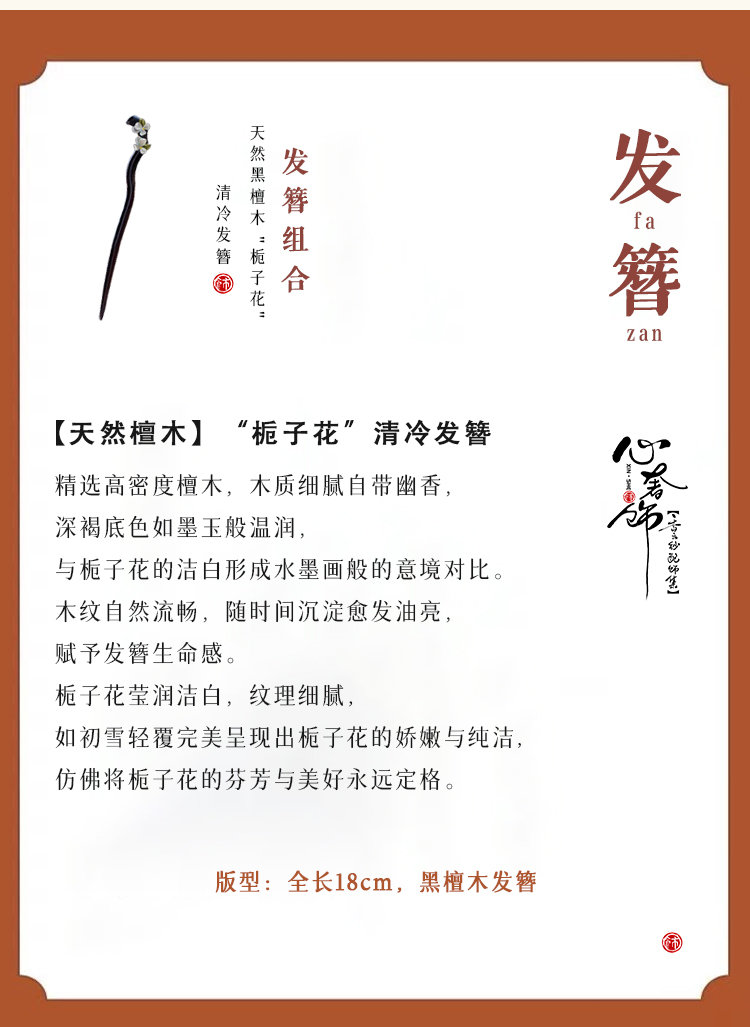 【天然檀木】“栀子花”清冷发簪 FS56117黑色