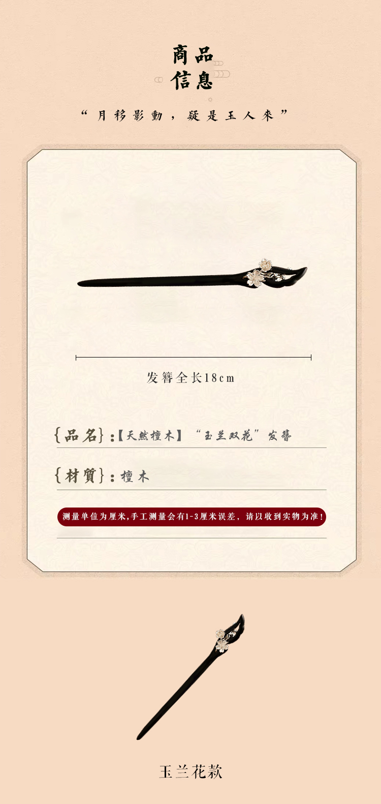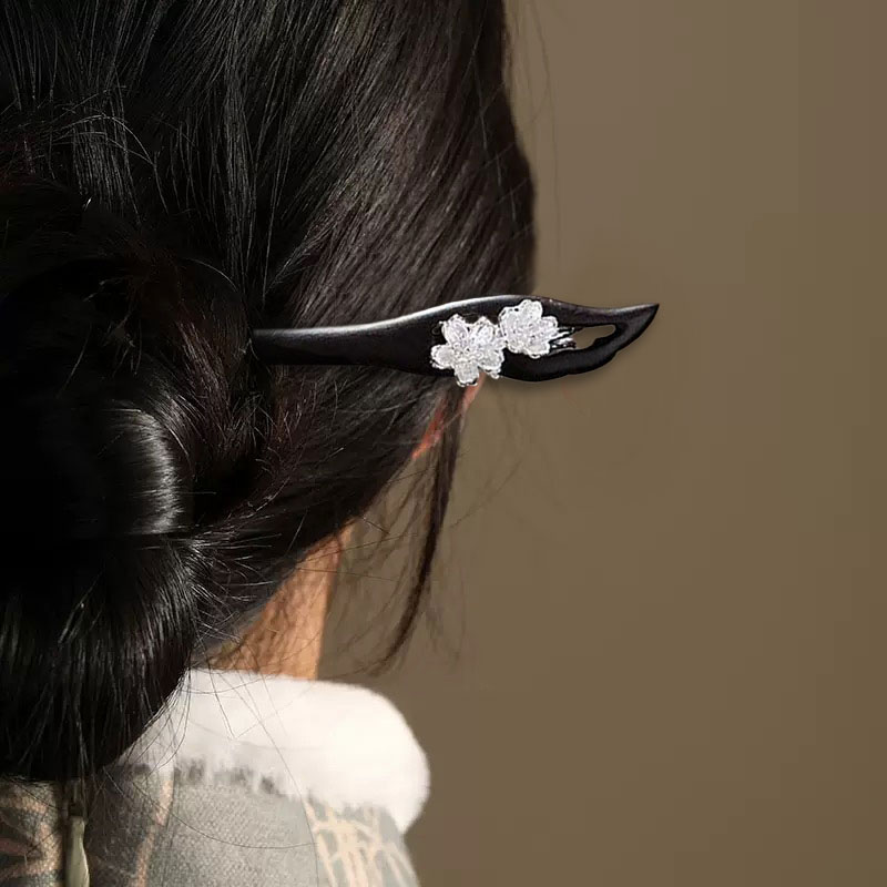 【天然檀木】“玉兰双花”发簪 FS56119黑色
