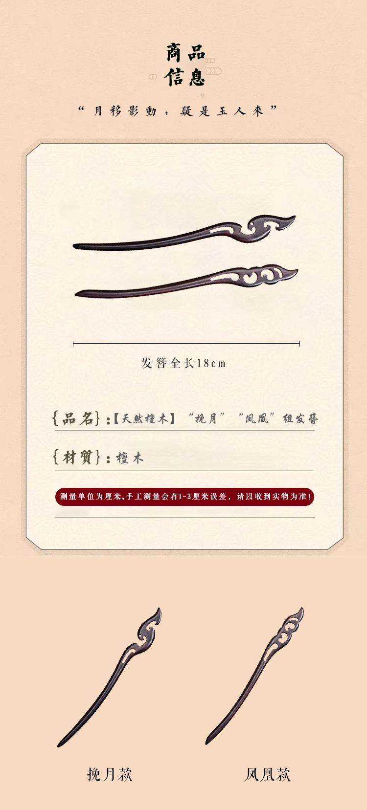 【天然檀木】“挽月”“凤凰”组发簪(两个一组,固定组合)fs56120黑色