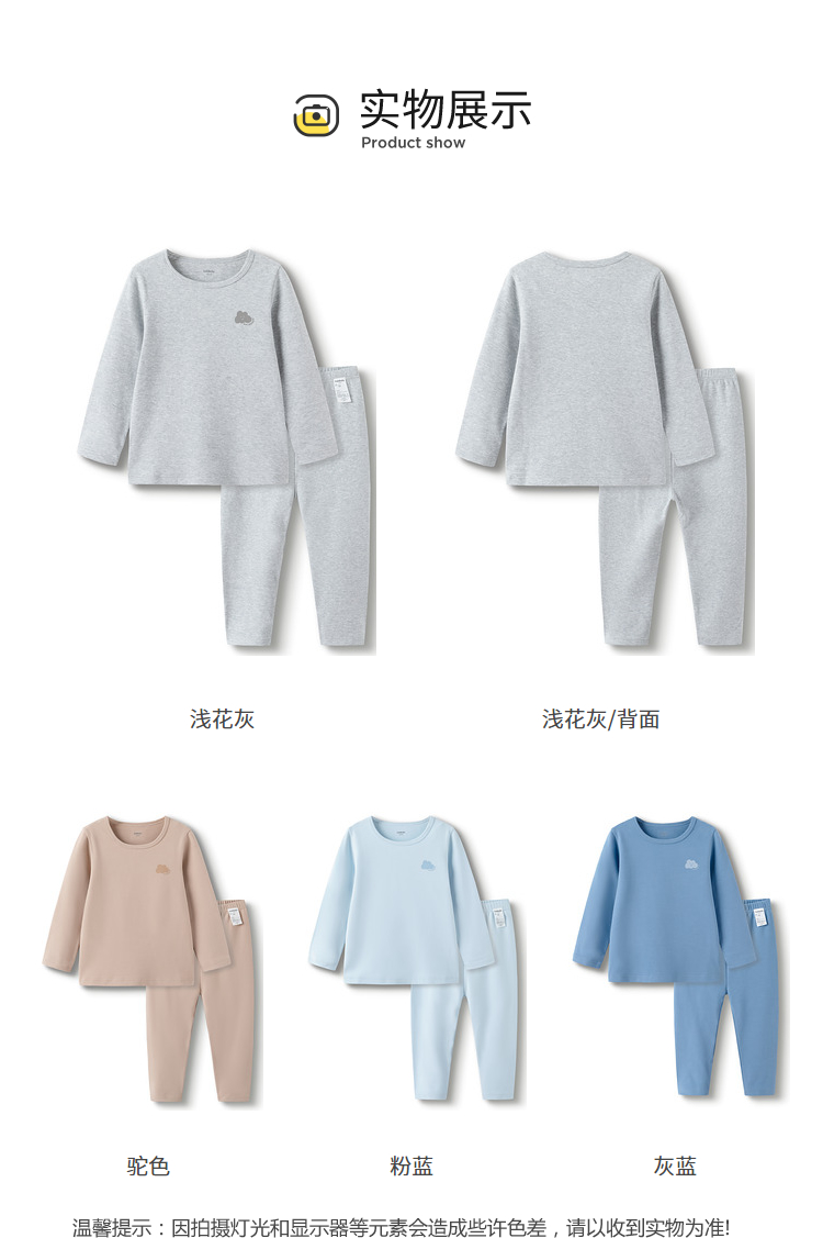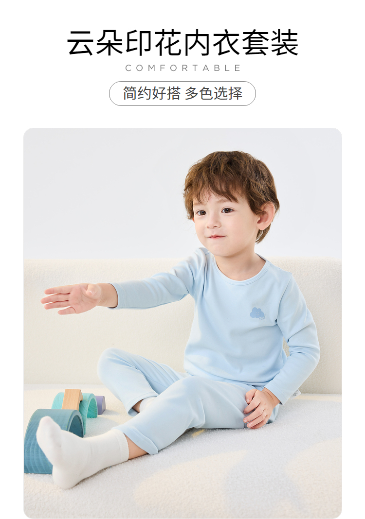 巴拉巴拉宝宝秋衣秋裤套装儿童保暖内衣冬男童中大童简约圆领舒适