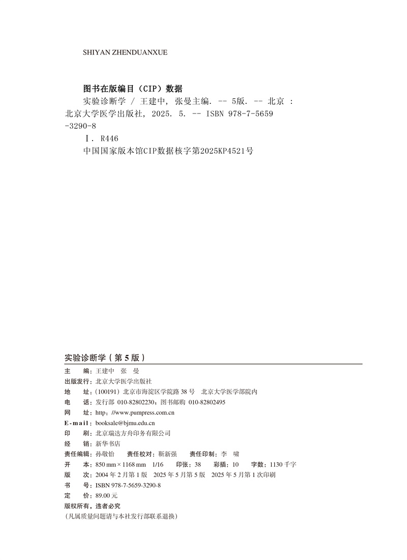 实验诊断学(第5版)十四五普通高等教育本科规划教材 王建中 张曼 供基础临床护理预防口腔医学技术类等专业用北京大学医学出版社