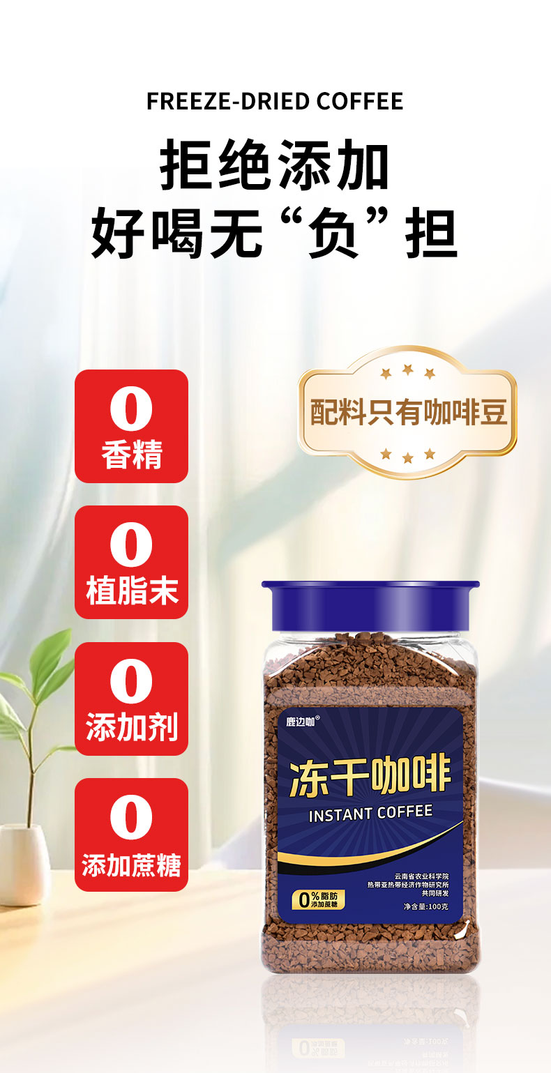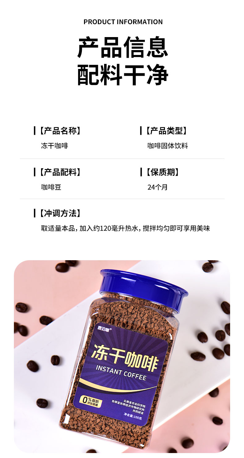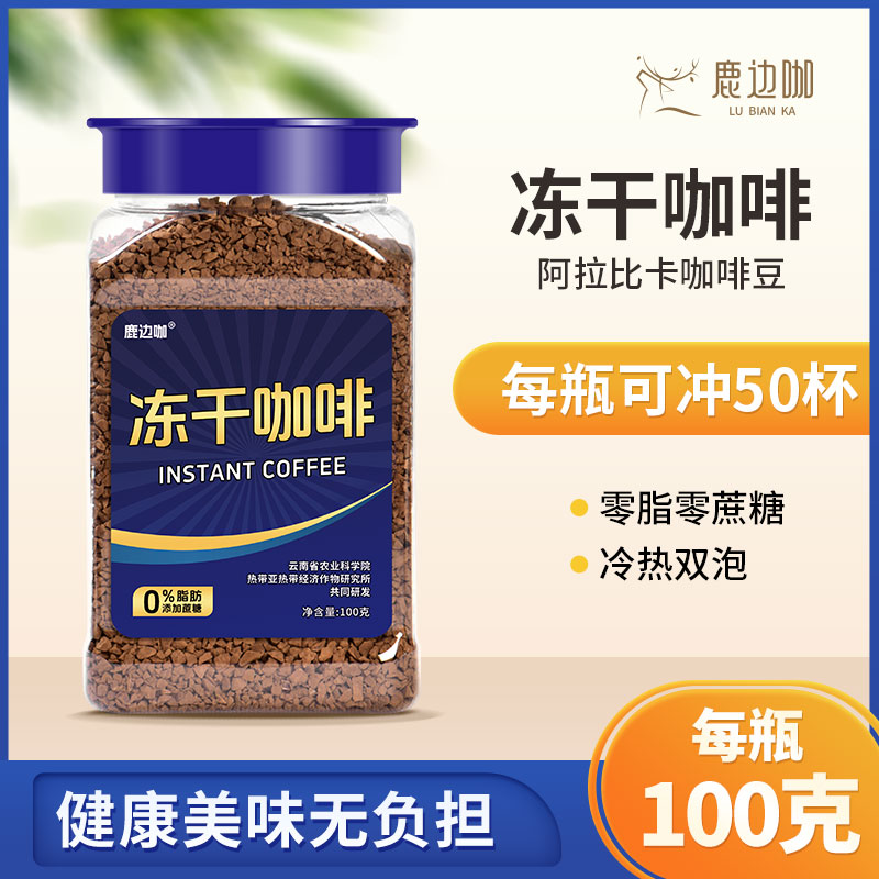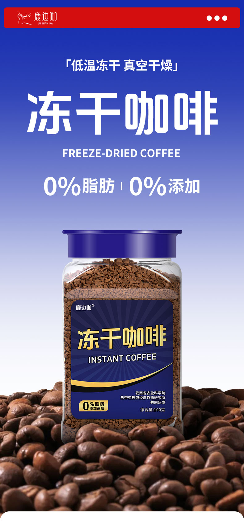 【仰姐夫同款 云南锁鲜冻干咖啡】 精选云南高海拔阿拉比卡豆,100%咖啡豆无添加,低温干燥锁鲜冻干,鲜如现磨。 鹿边咖两罐装
