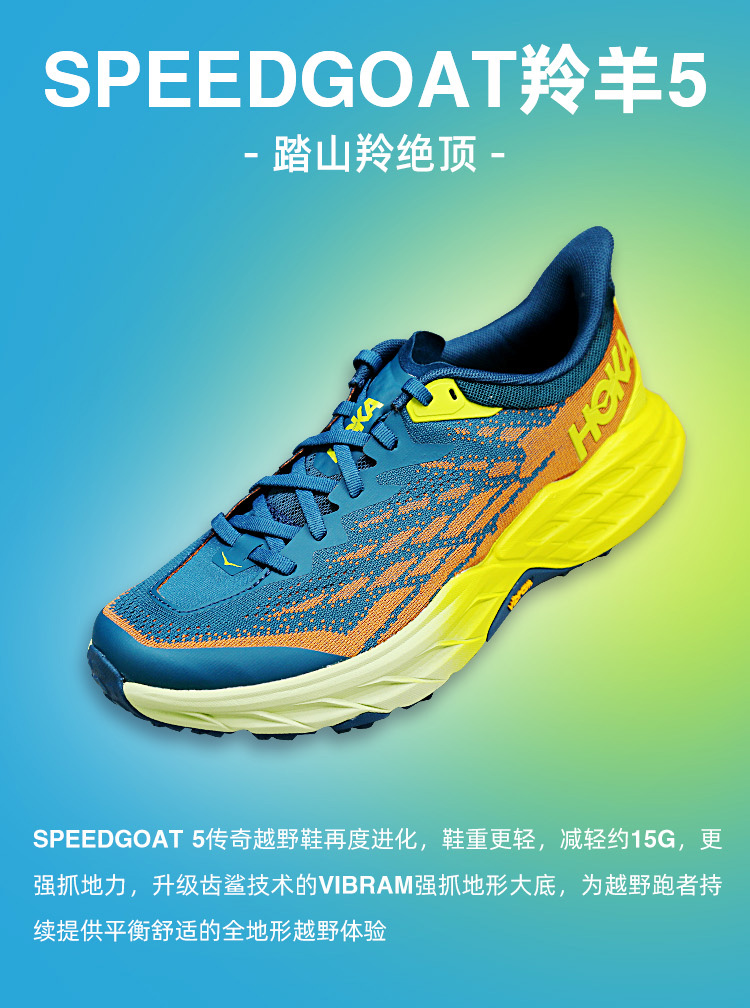 HOKA 快羊羚羊5 SPEEDGOAT 5飞速羚羊男款V底全地形越野缓震跑鞋