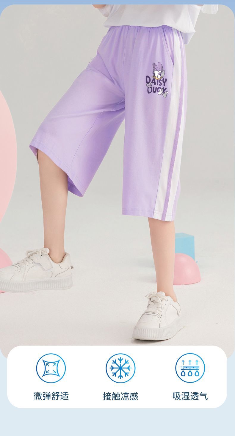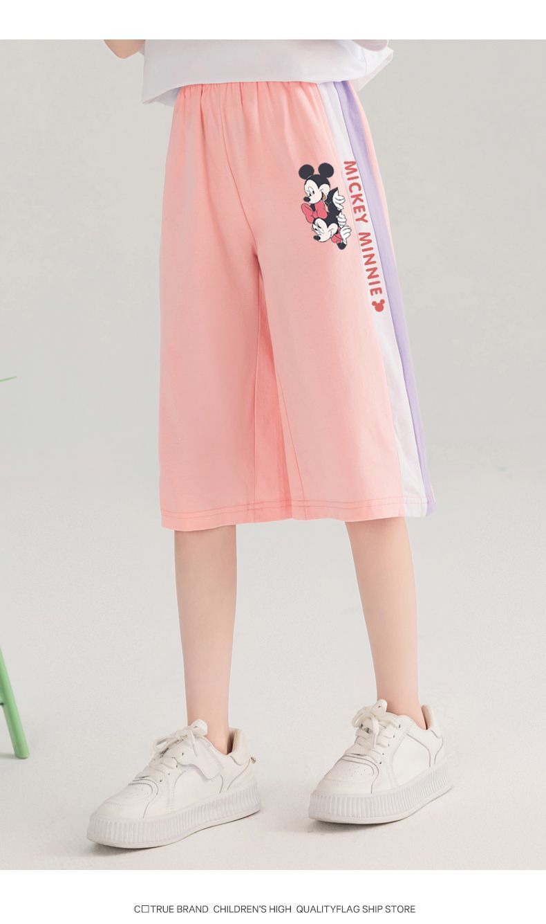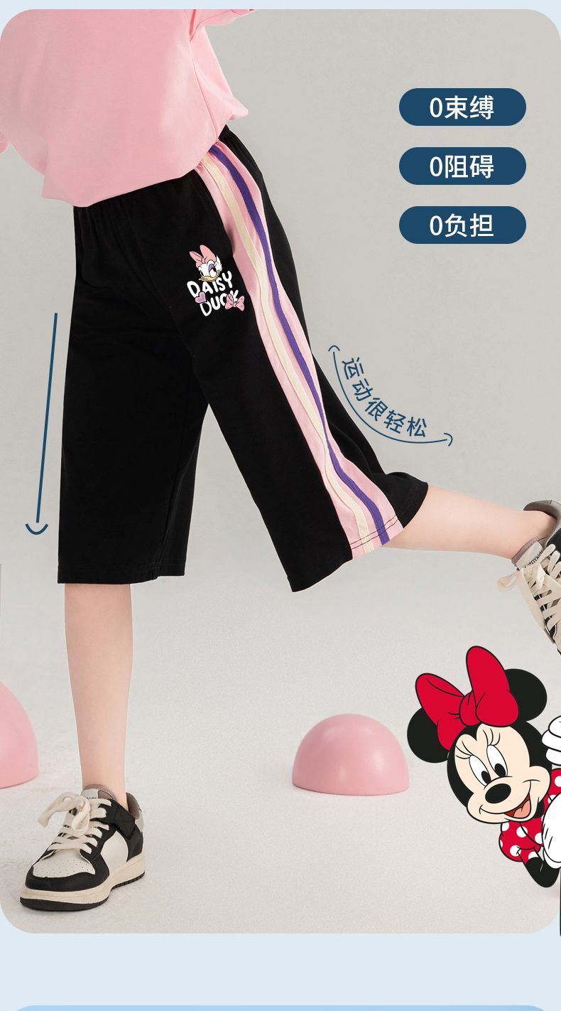 H34迪士尼女童夏装七分裤薄款短裤女孩夏季裤子运动休闲中大童潮
