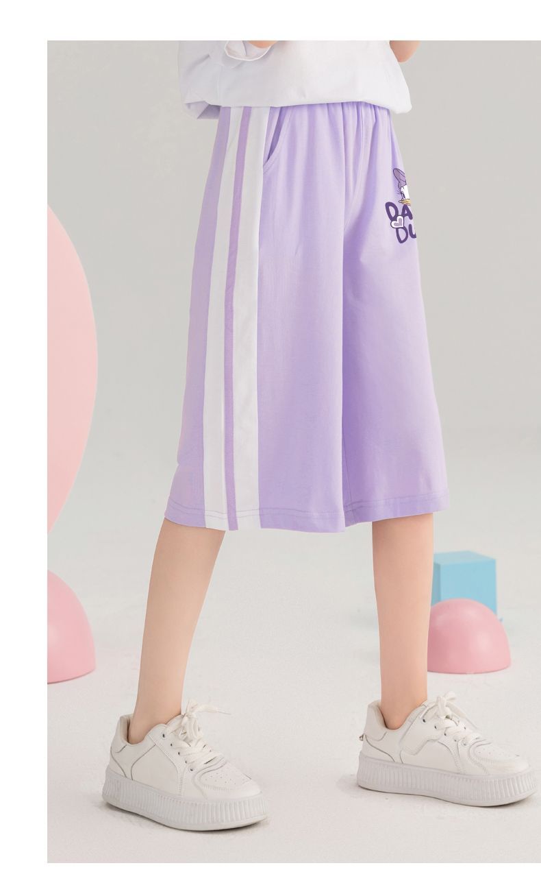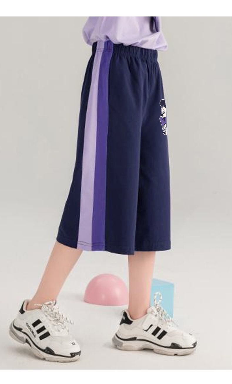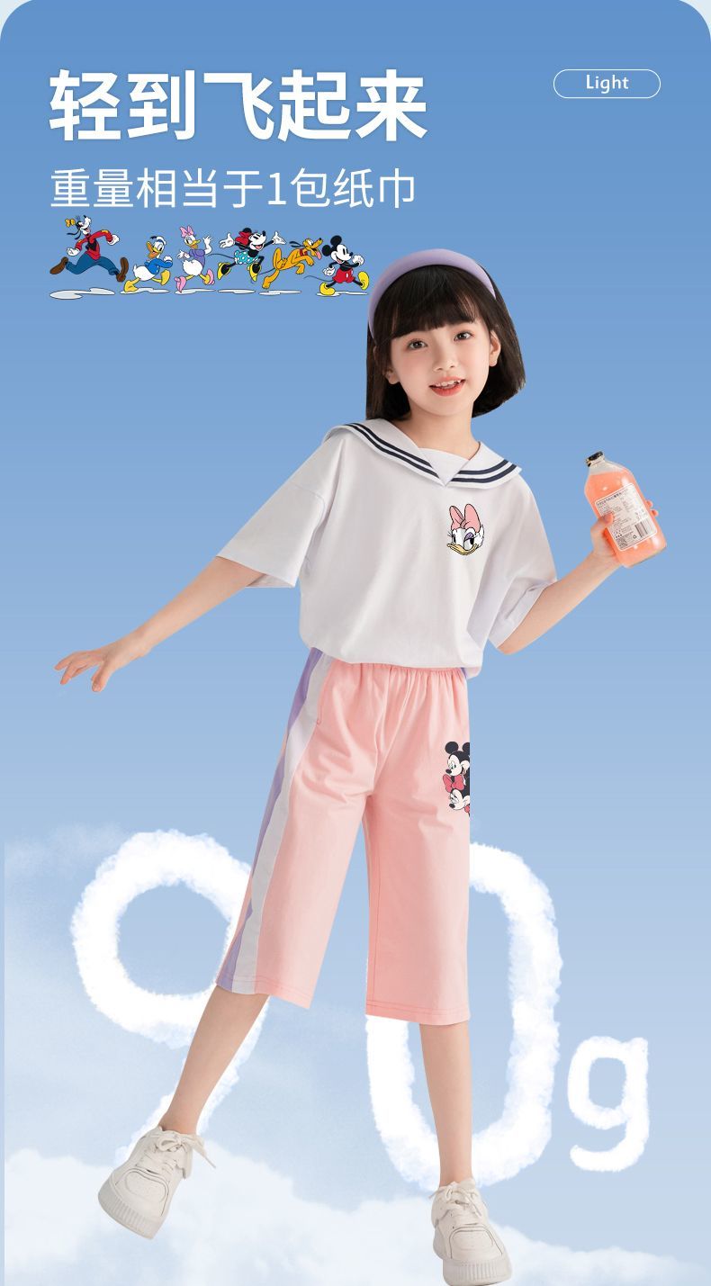 H34迪士尼女童夏装七分裤薄款短裤女孩夏季裤子运动休闲中大童潮