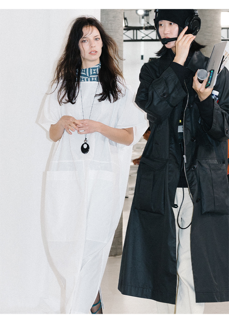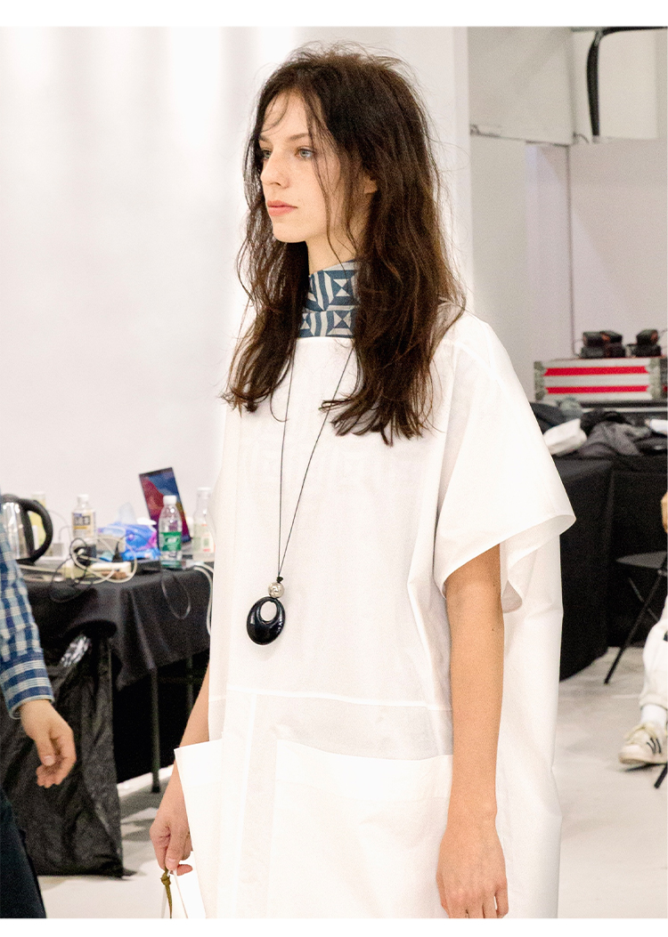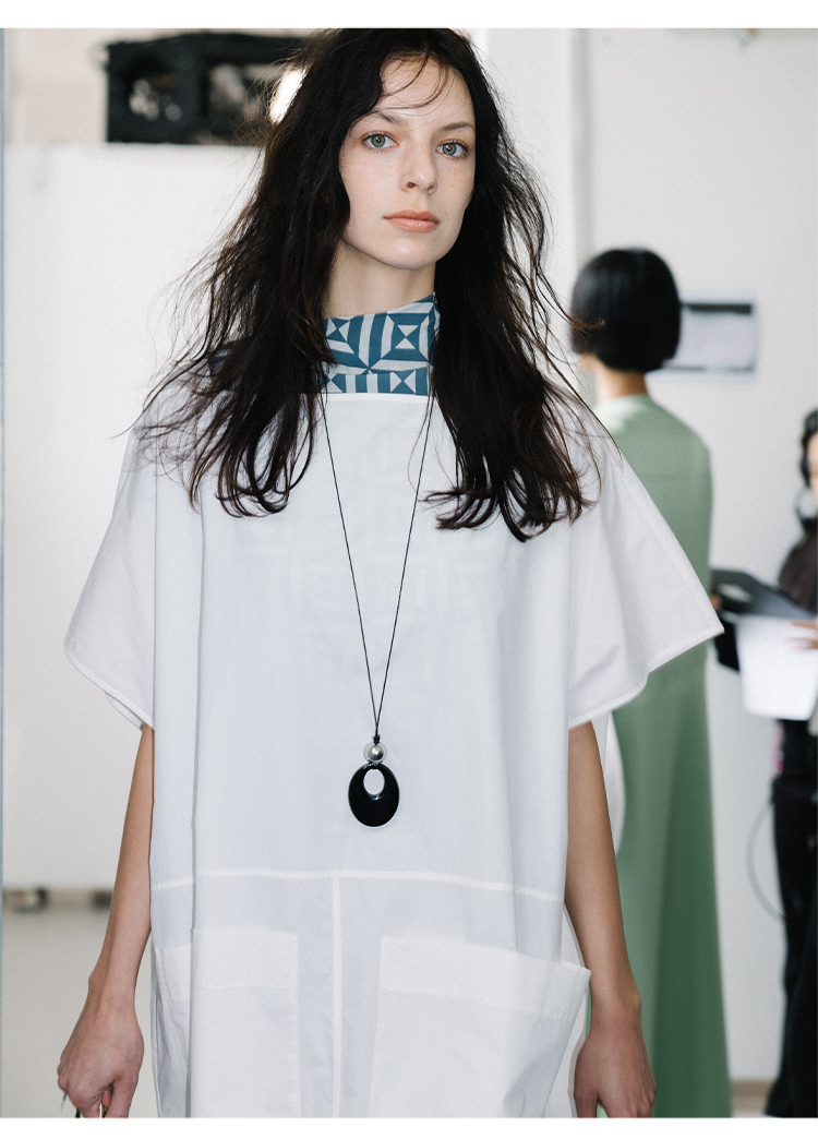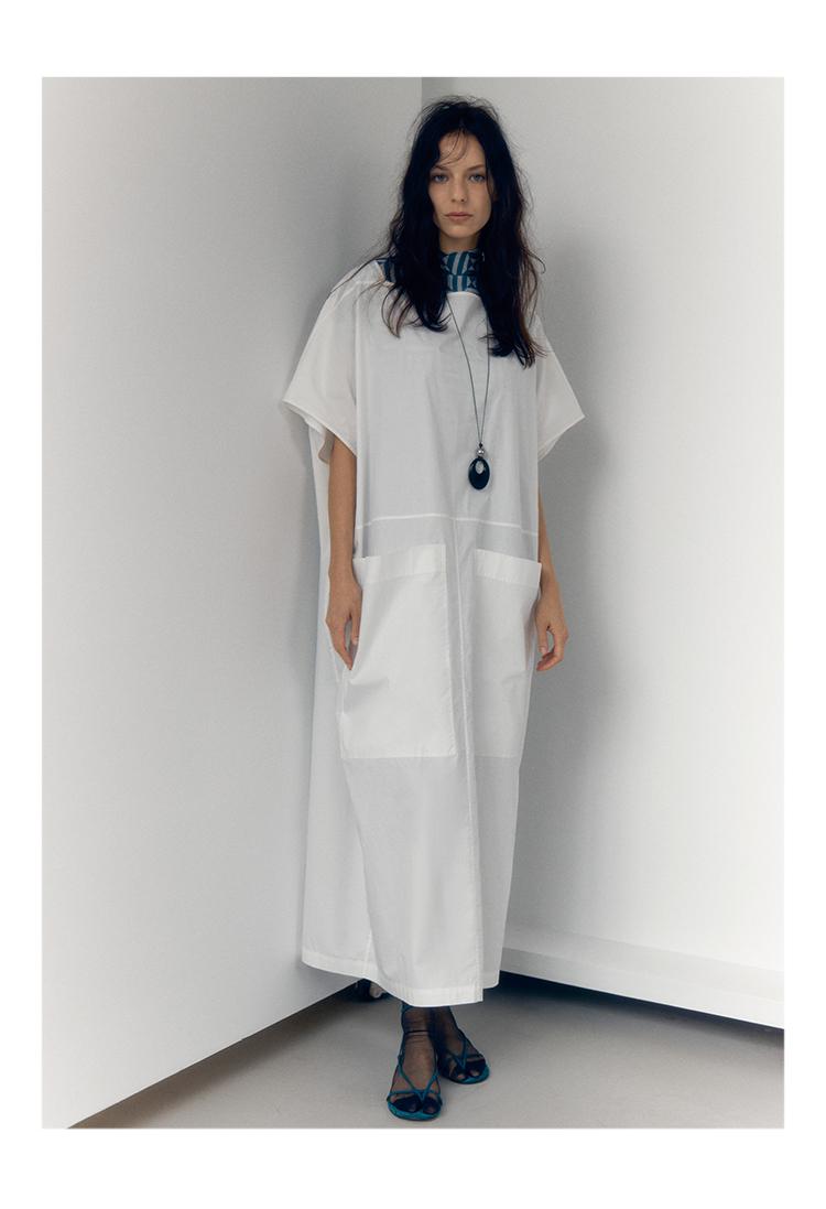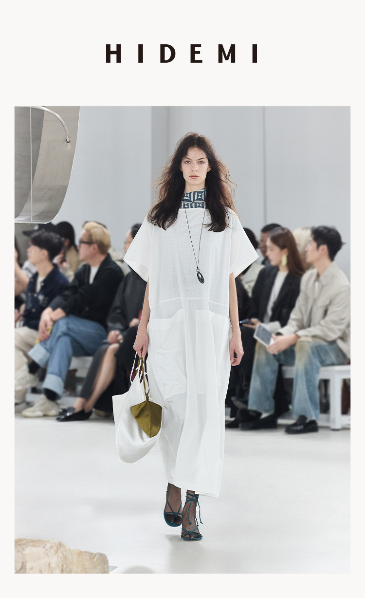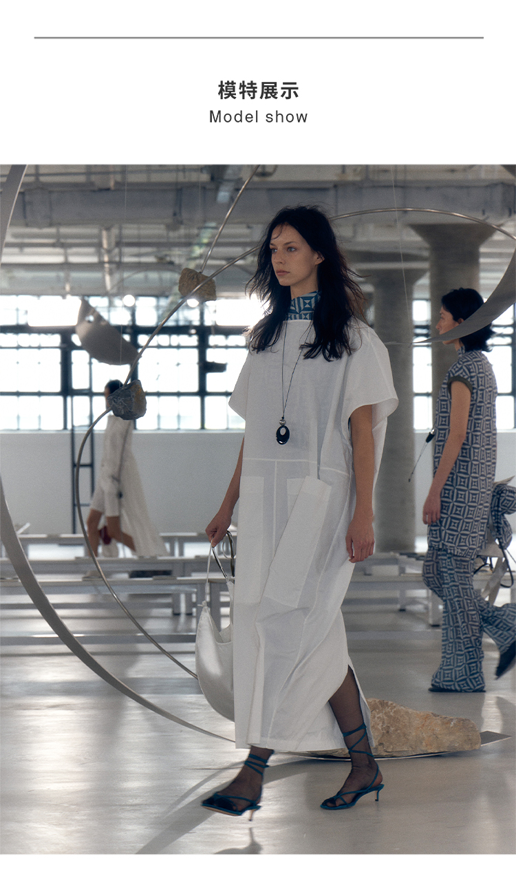 HIDEMI 度假系列极简一字领大口袋大廓形设计感水洗棉宽松式连衣裙