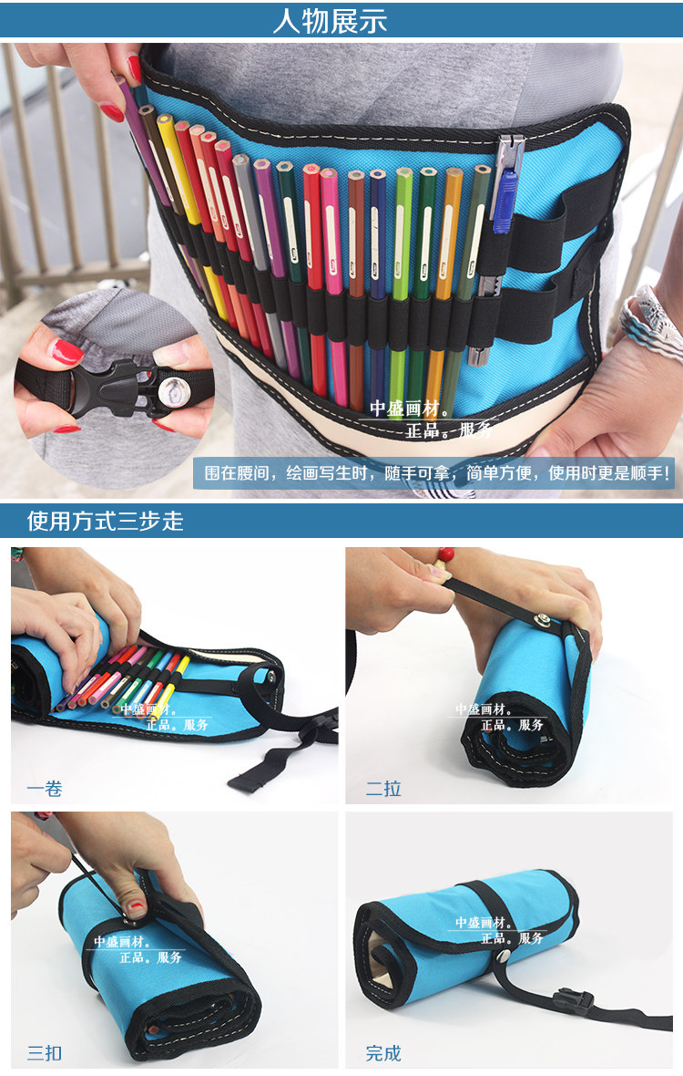 加厚帆布可卷式素描铅笔袋 36支装笔帘彩色铅笔笔袋美术用品