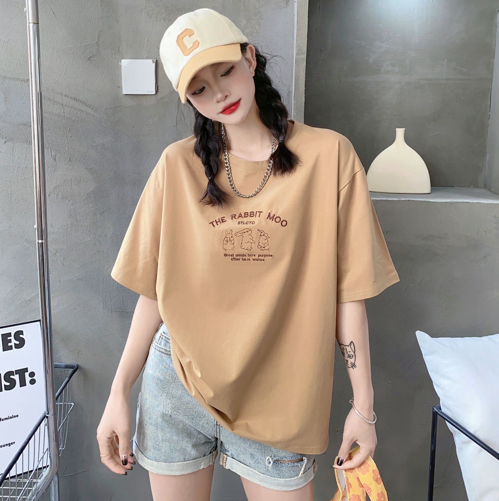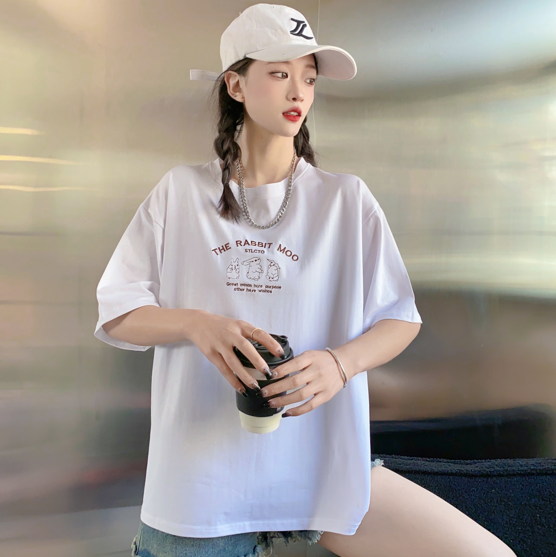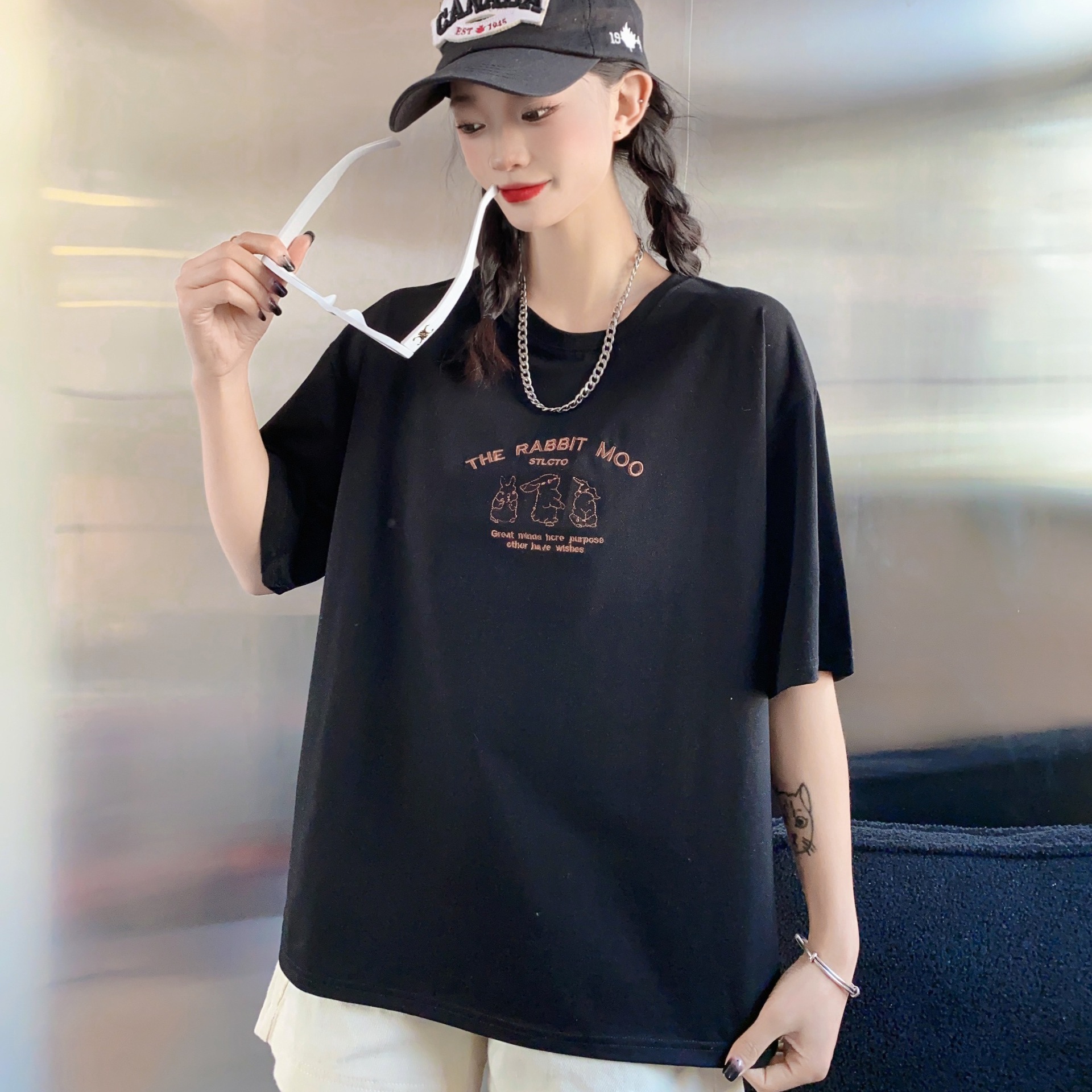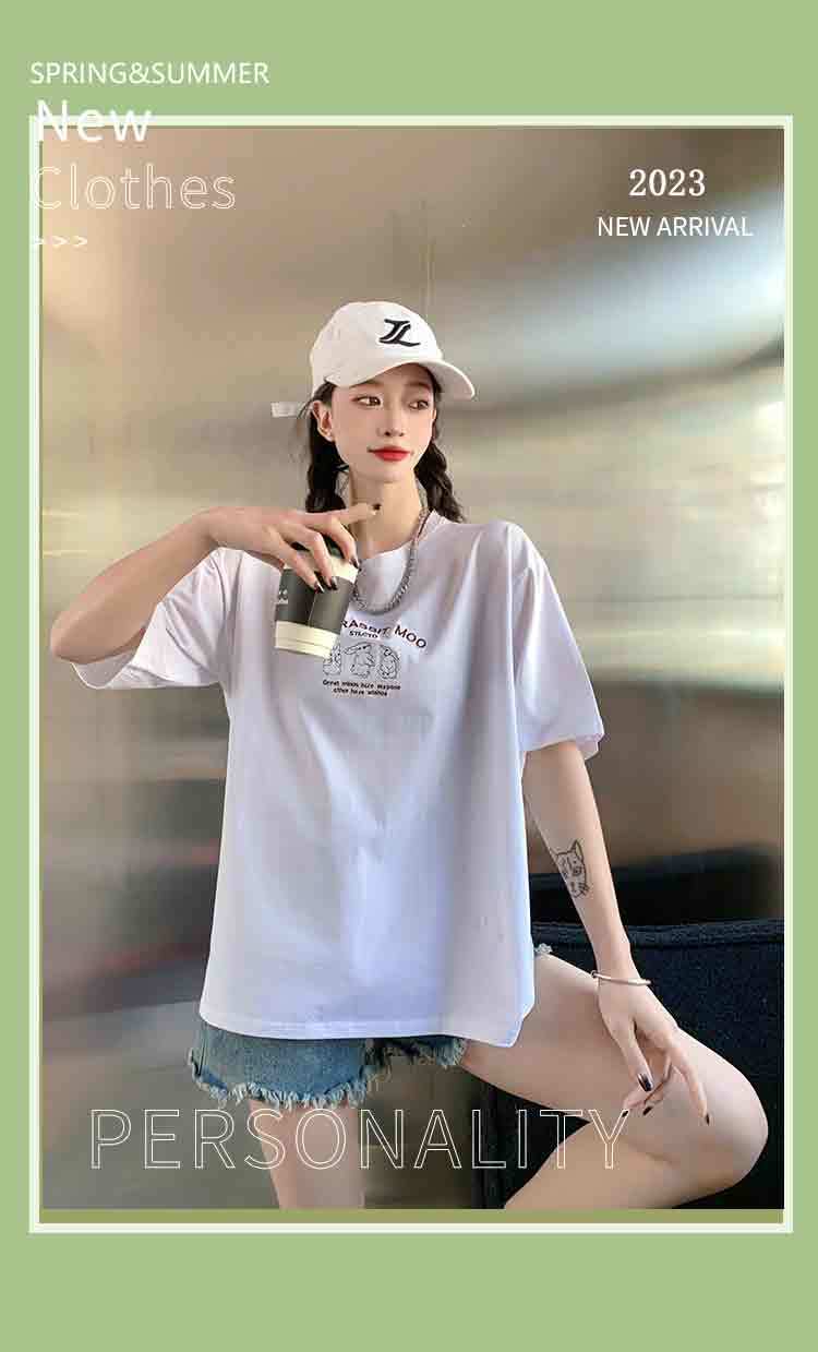 2023白色短袖T恤女ins潮夏季新款设计感小众圆领宽松上衣4.3版