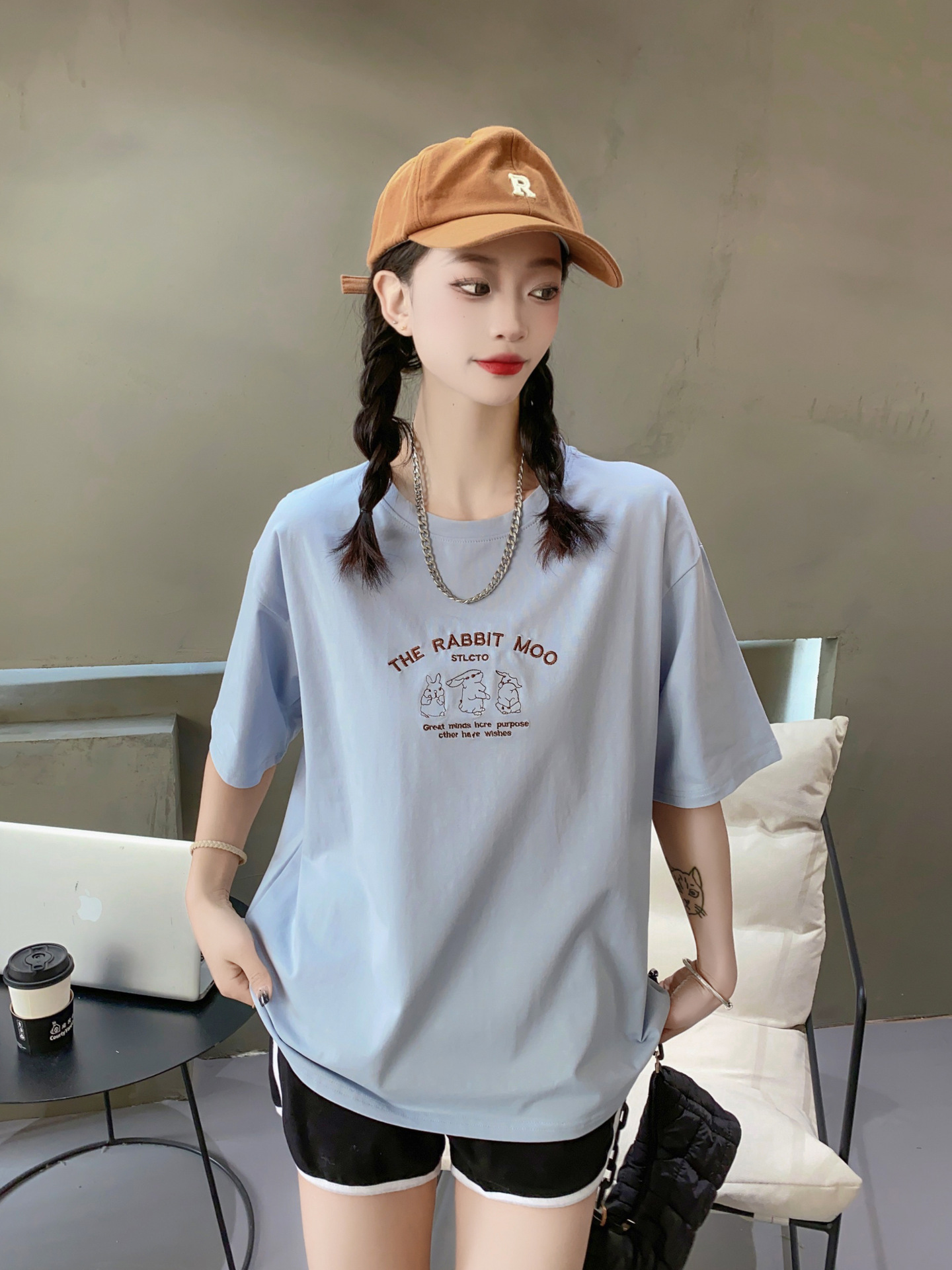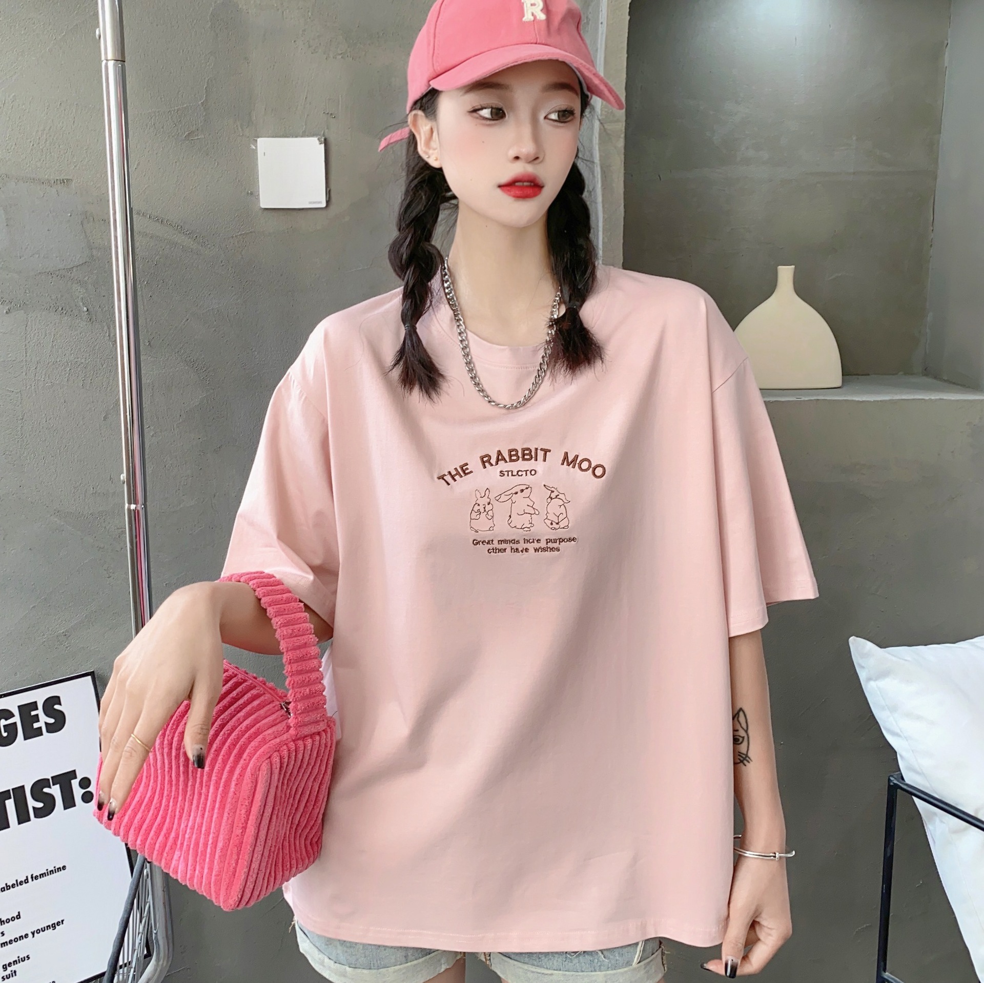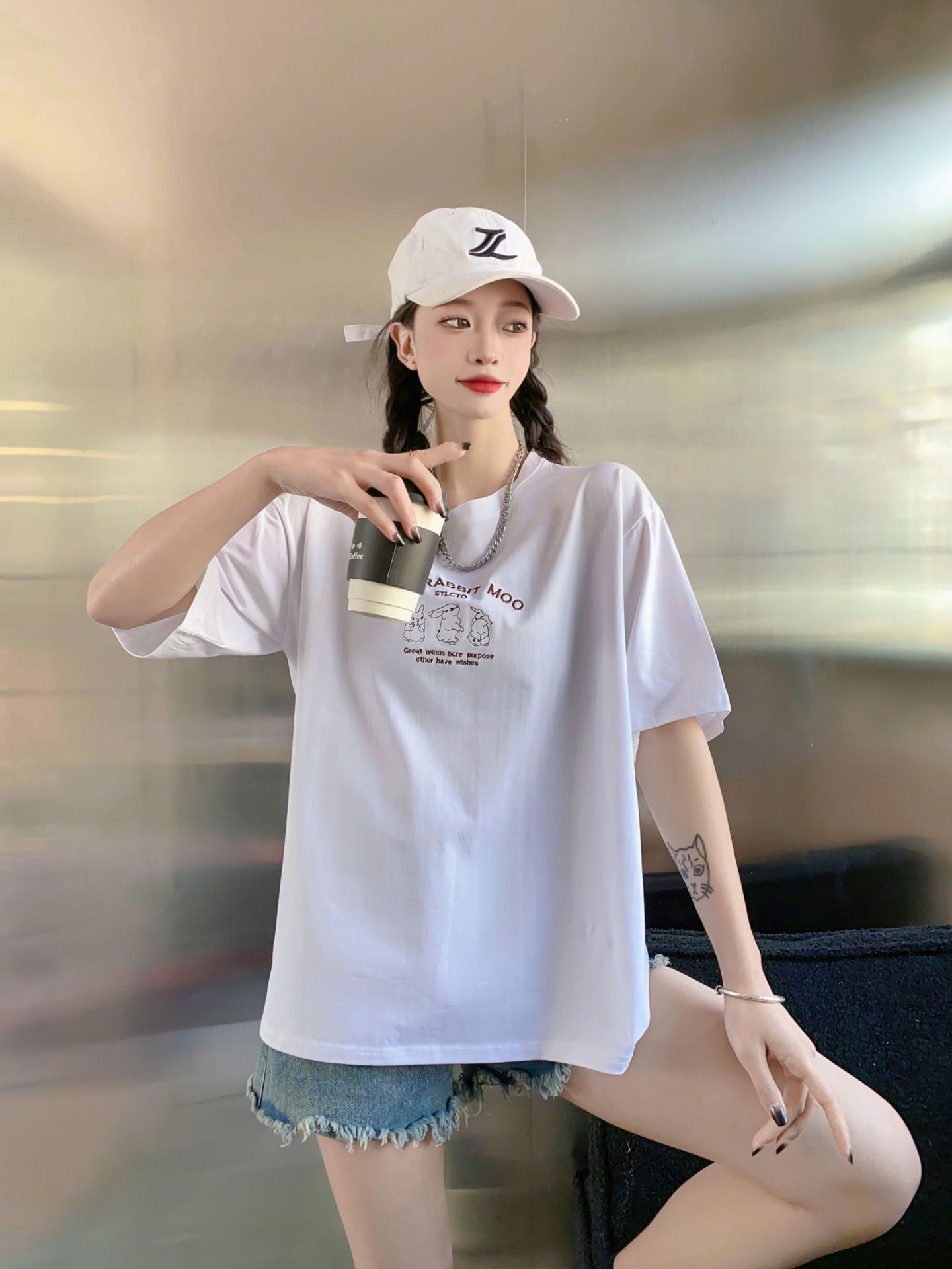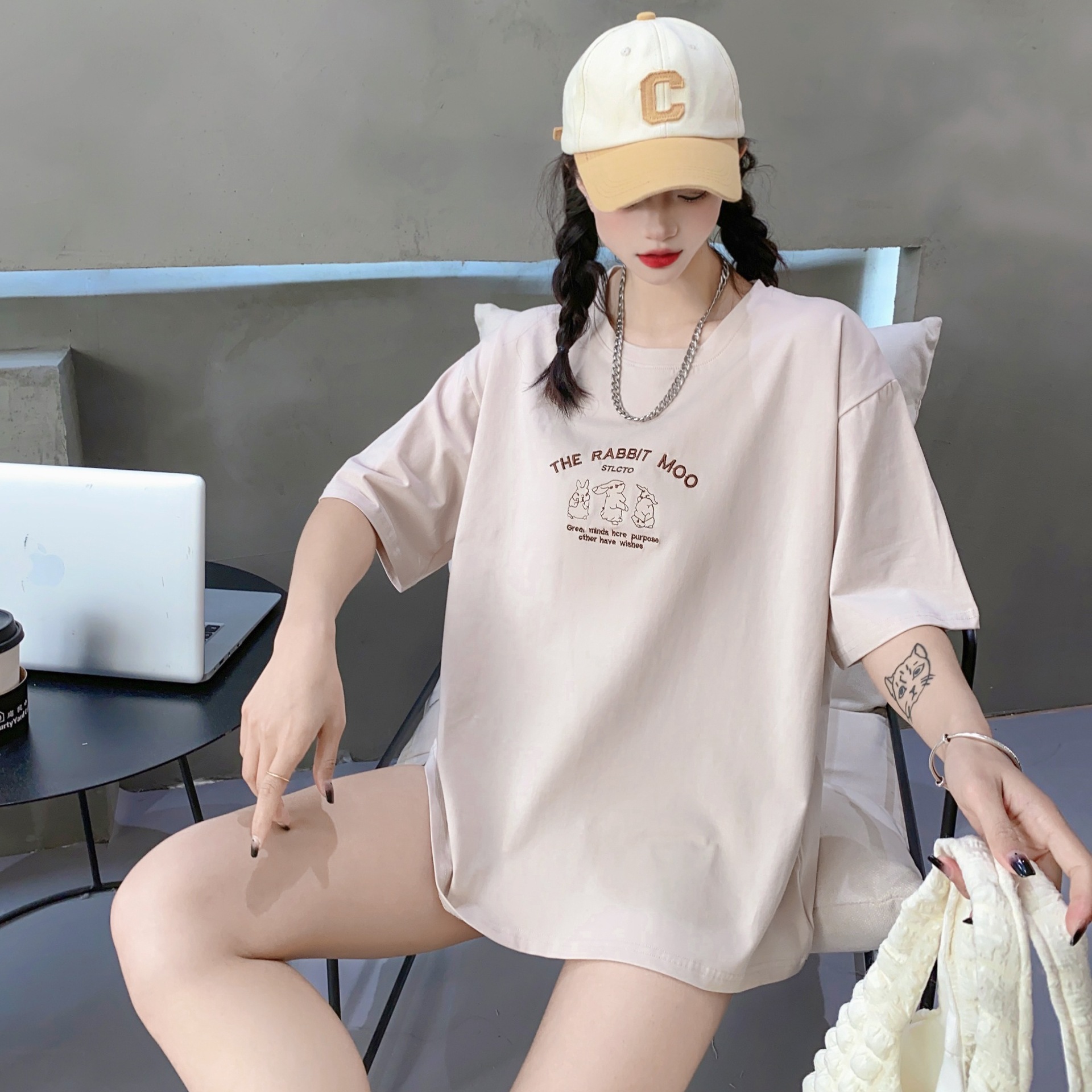 2023白色短袖T恤女ins潮夏季新款设计感小众圆领宽松上衣4.3版