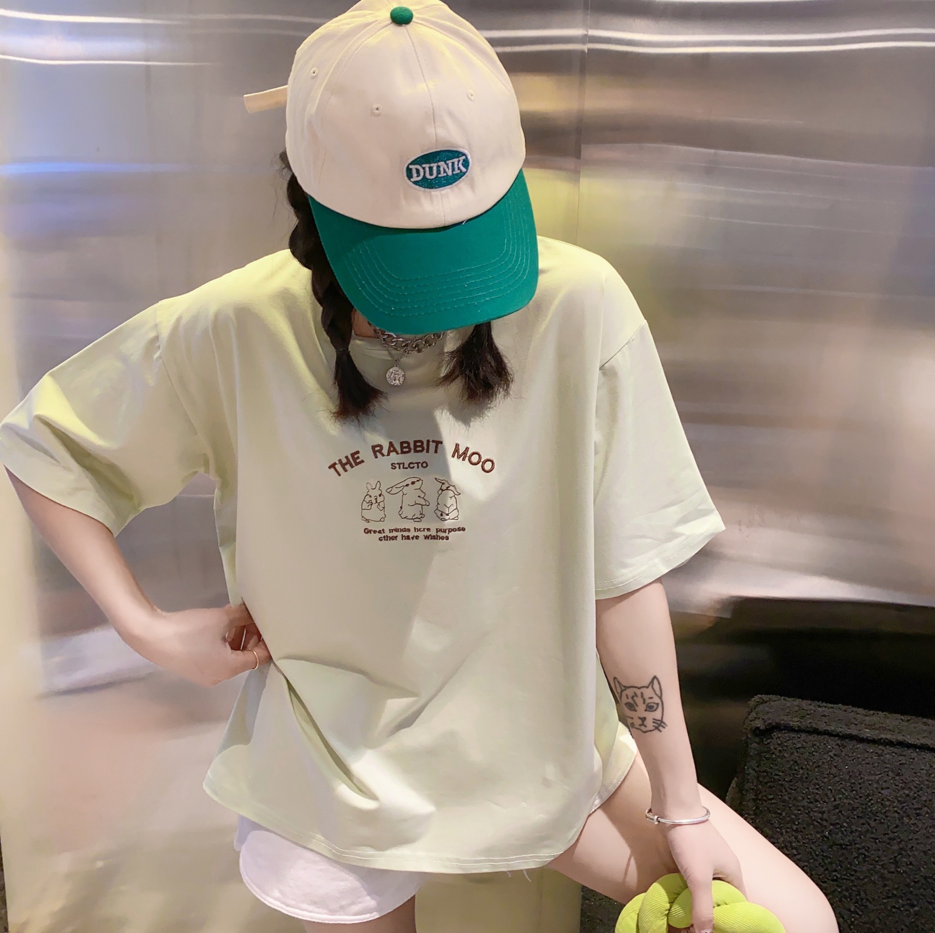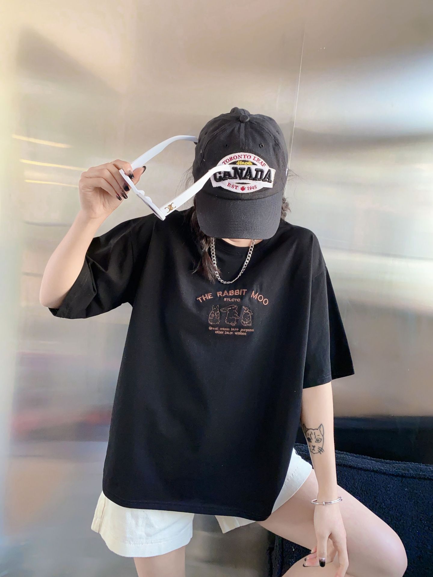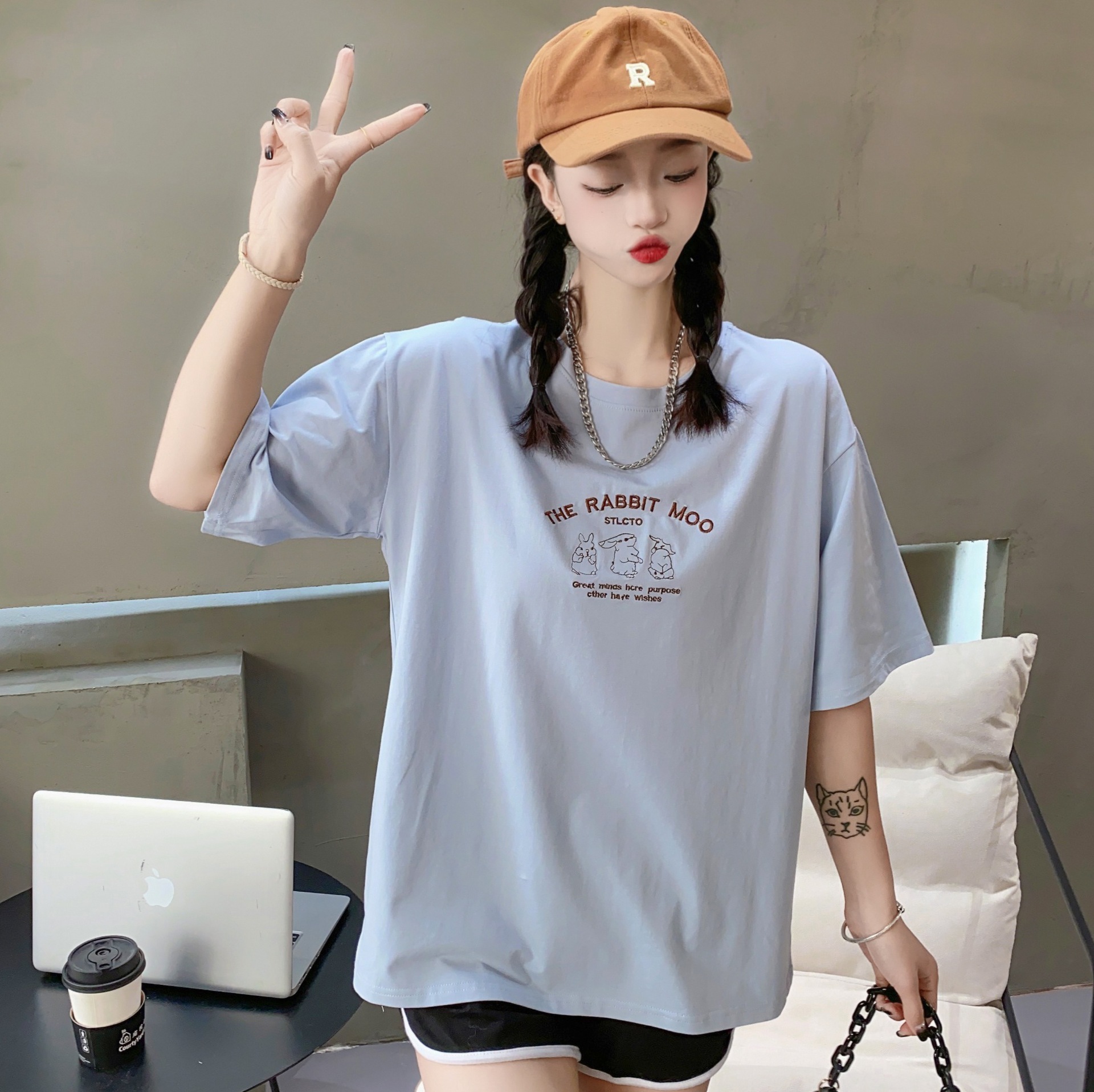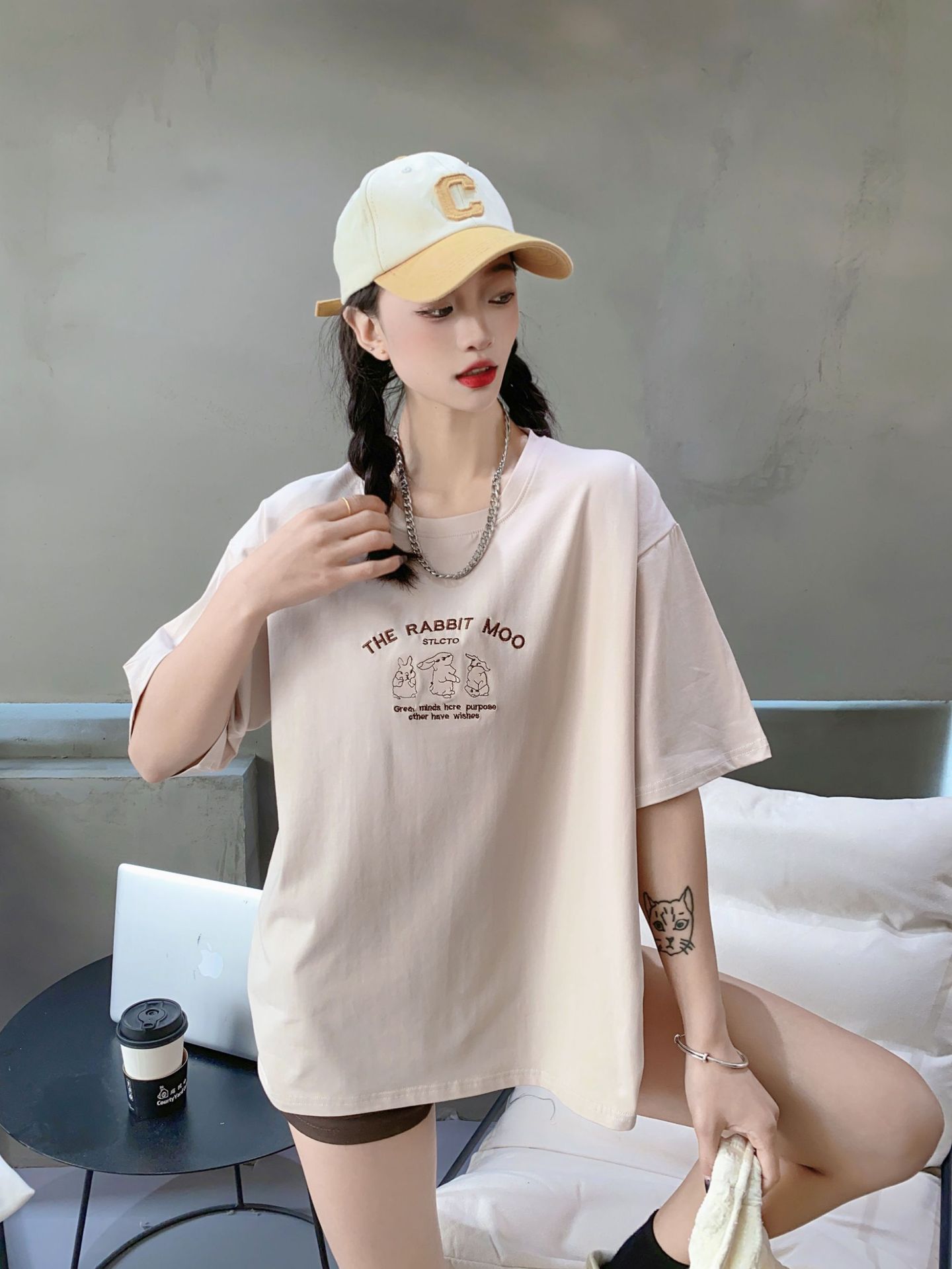 2023白色短袖T恤女ins潮夏季新款设计感小众圆领宽松上衣4.3版