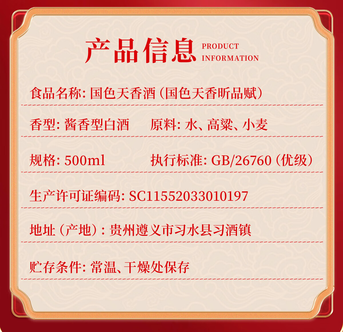 贵州习酒股份高端酒品 国色天香昕品赋 53度酱香型白酒500ml/瓶礼盒装