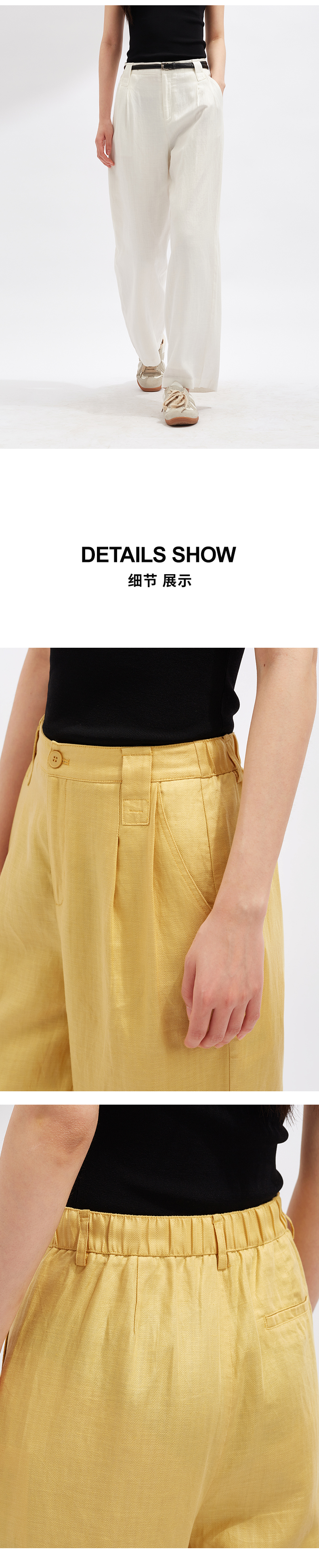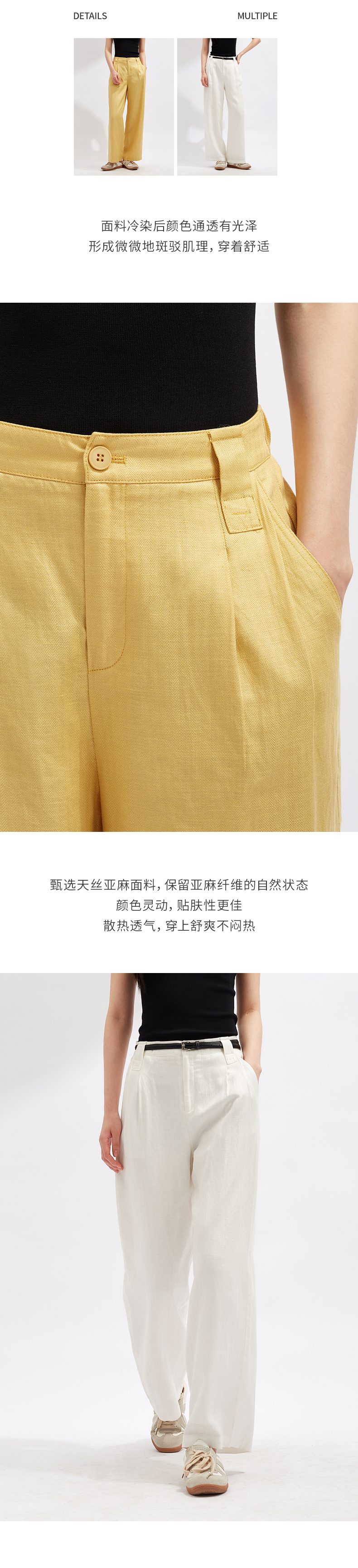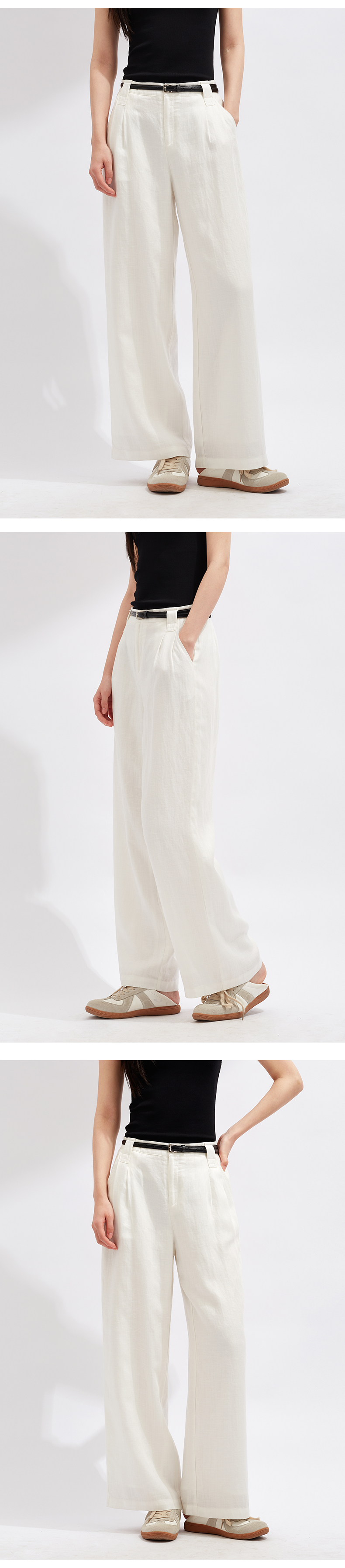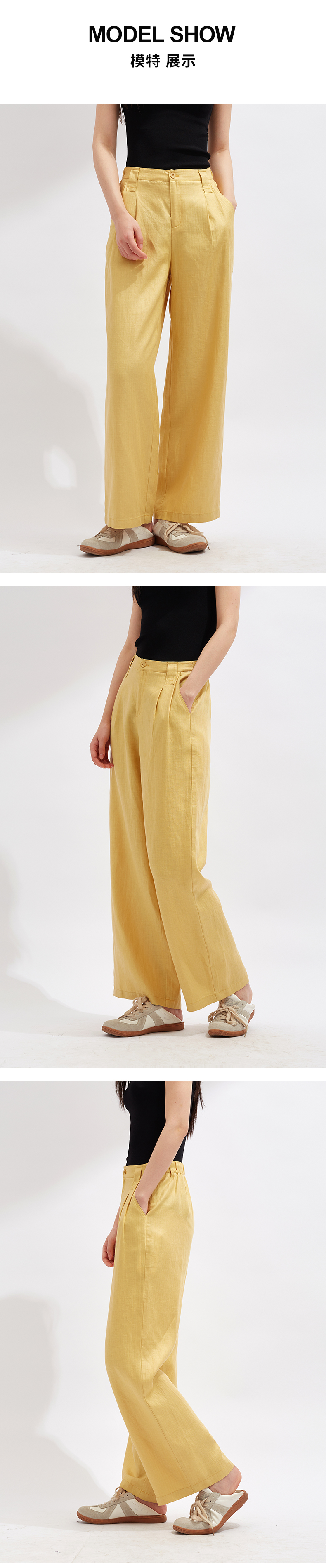 【百搭实穿】阿菁娜夏季丝麻垂坠感打褶设计阔腿裤F30X210011