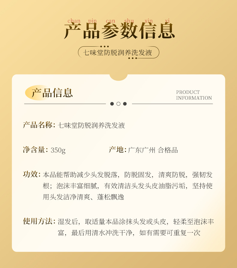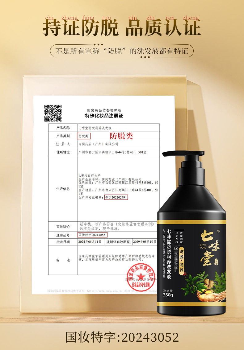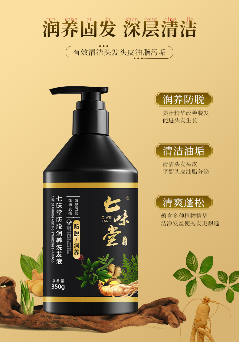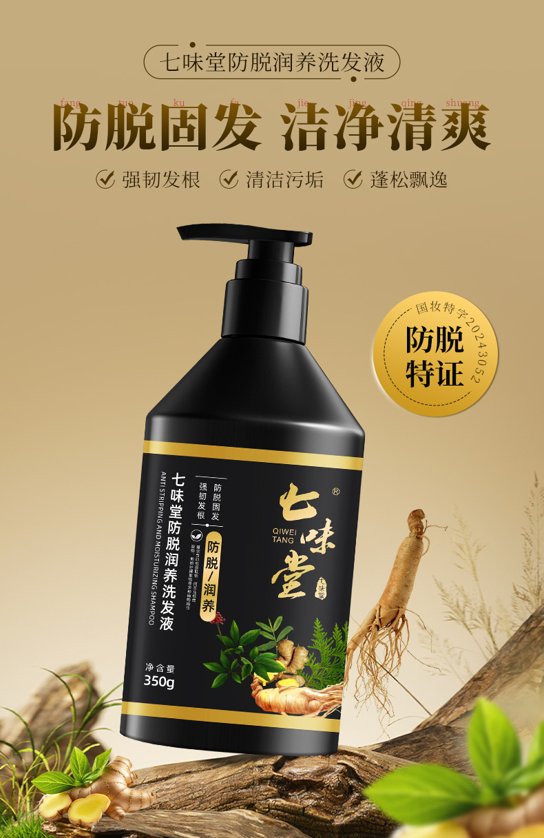 【润养固发!深层清洁】七味堂防脱润养洗发液防脱固发洗发露控油清洁头皮洗头水350g。ry