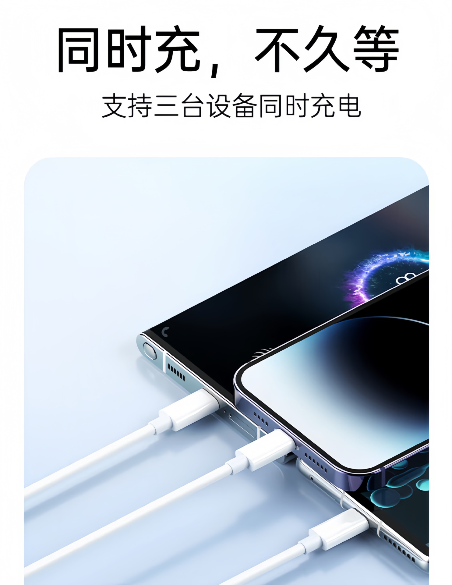 春节不打烊【低温快充不伤机❗️同时充不久等】3C认证充电器三合一数据线充电头一拖三快充66W充电套装适用华为。jd