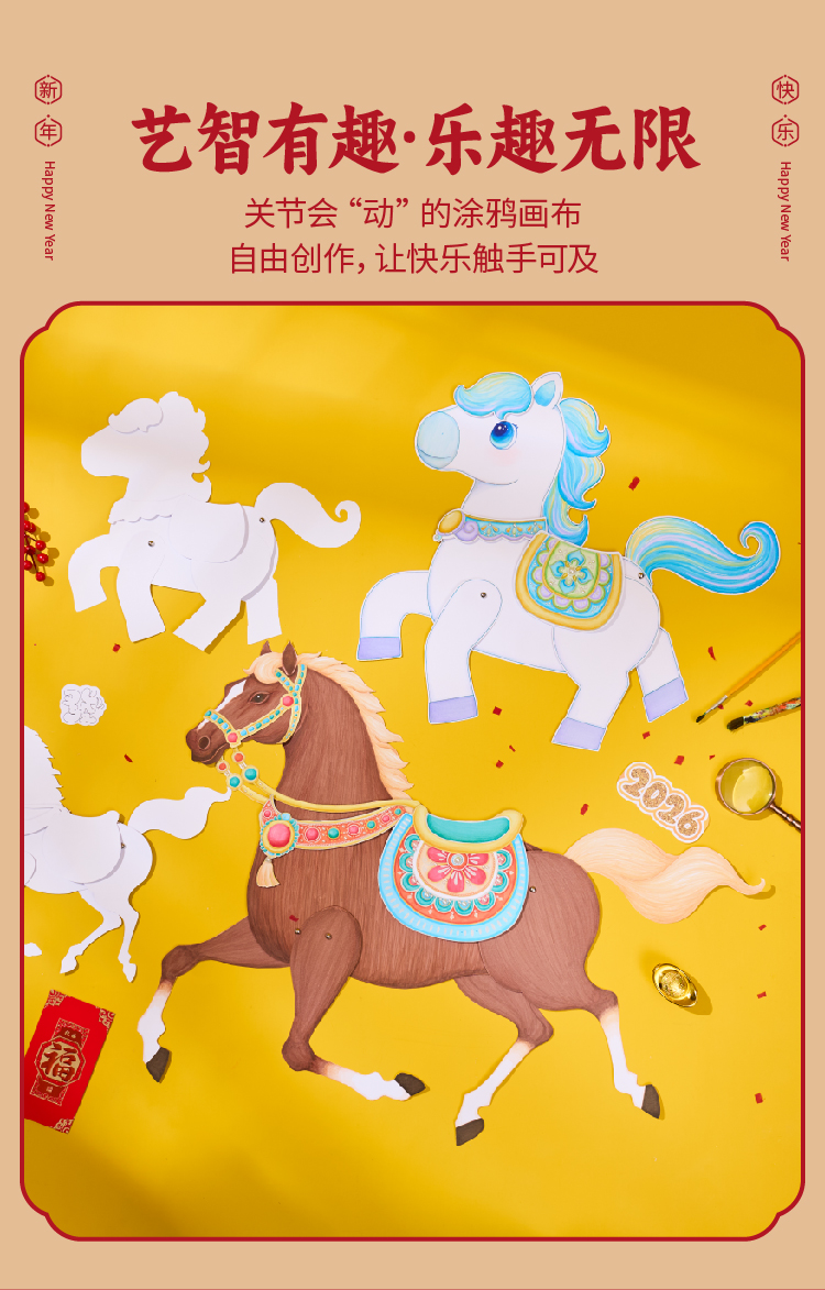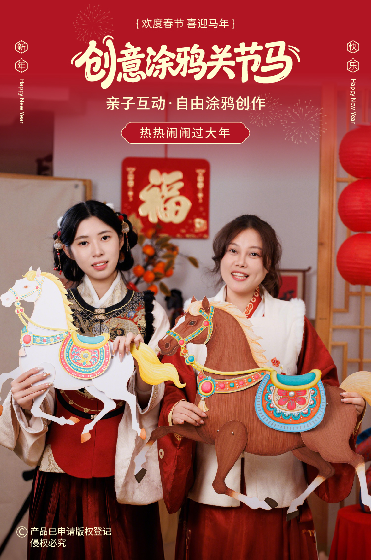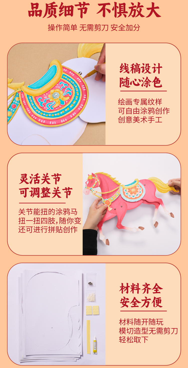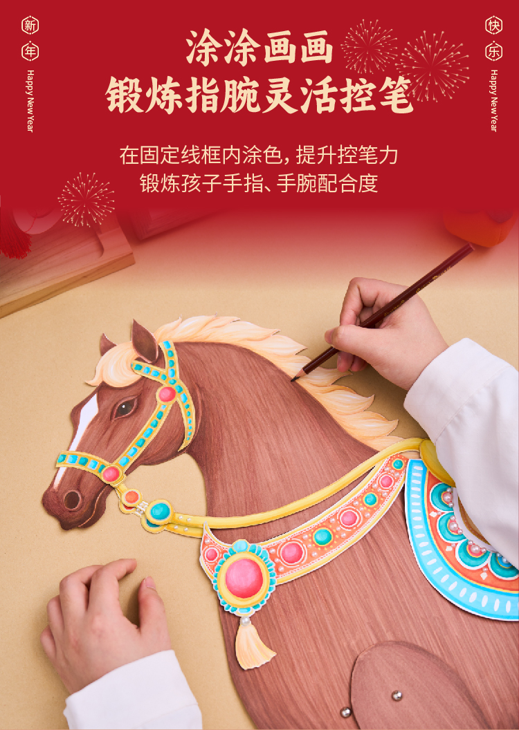 新年春节元旦马年创意涂鸦关节马手工diy儿童制作材料幼儿园美术