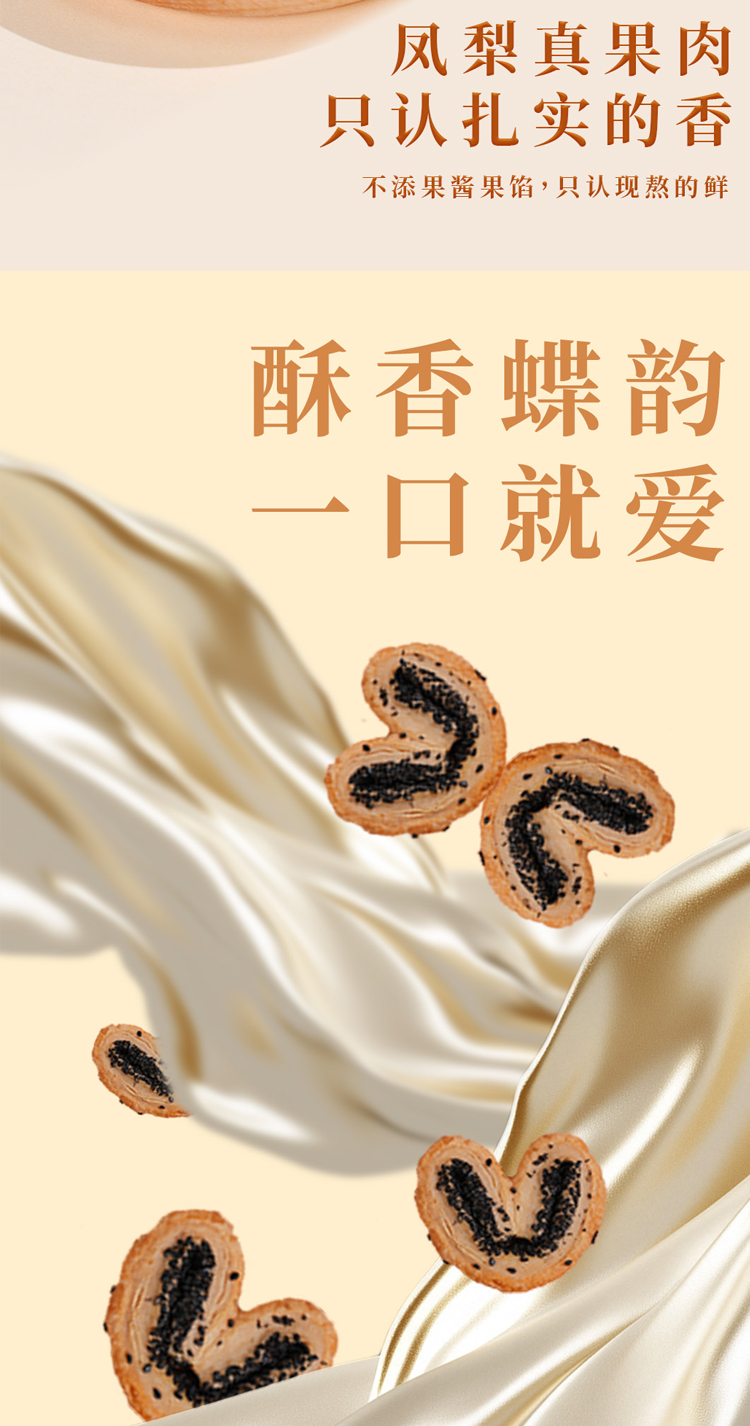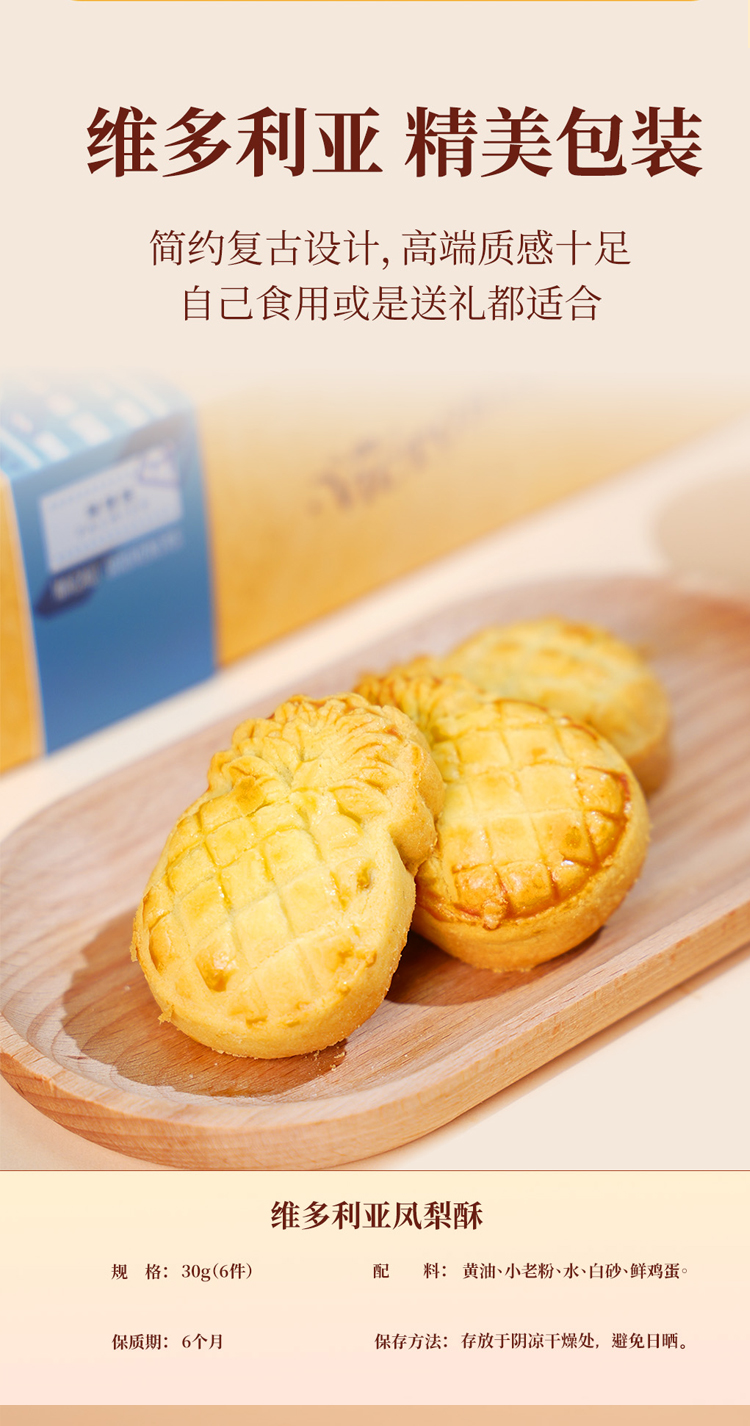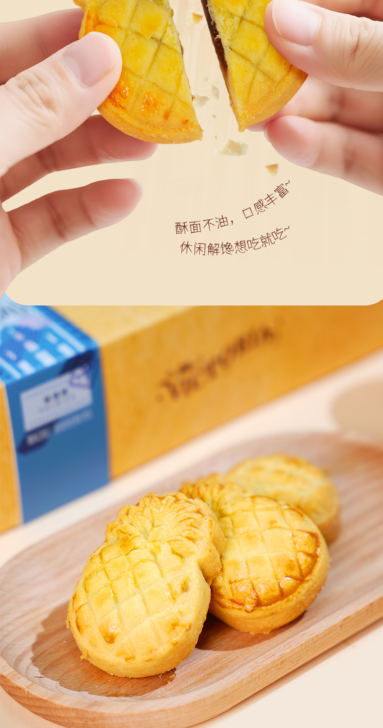 【规格】:黄油蝴蝶酥160g/盒(10g*16片);黄油凤梨酥300g/盒 (30g*10片);开口笑咸蛋酥216g/盒