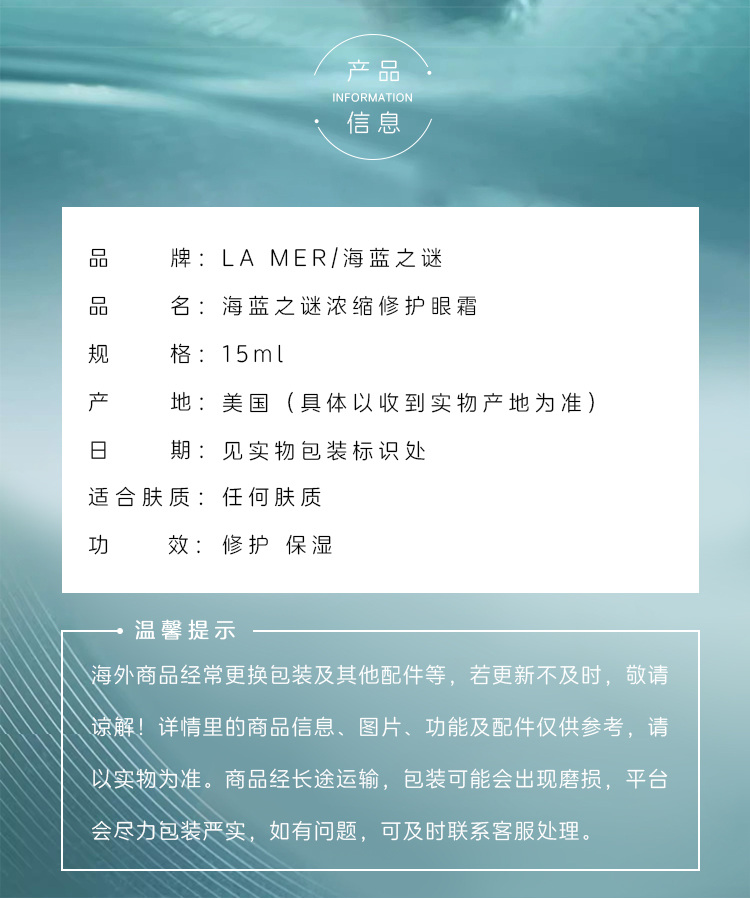 LAMER海蓝之谜浓缩修护眼霜15ml/焕亮护手霜30ml 带礼盒手提袋(CDF)
