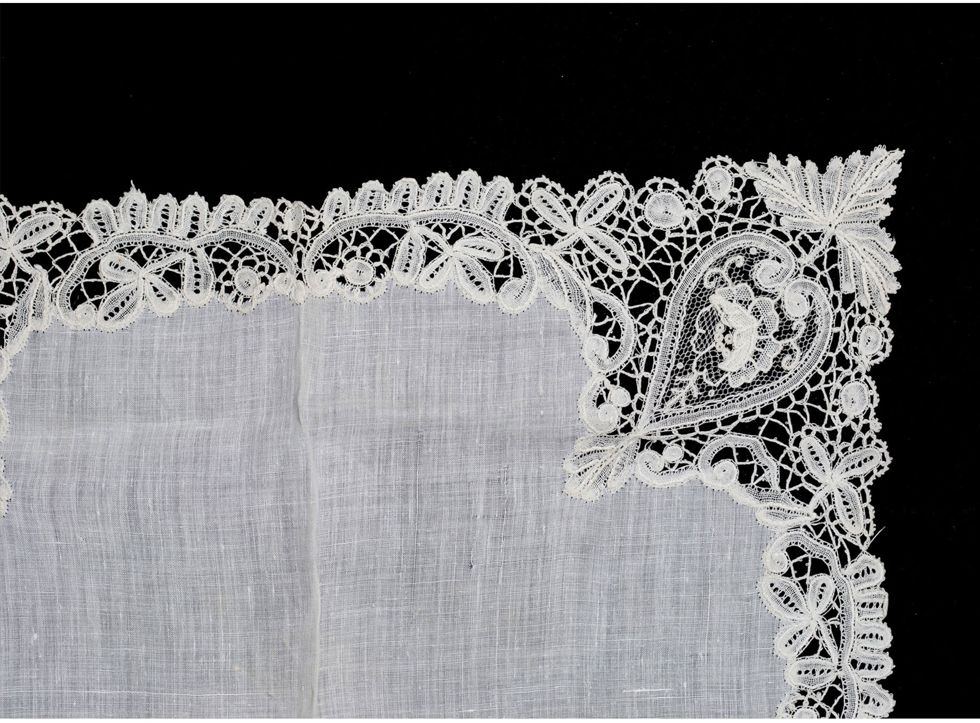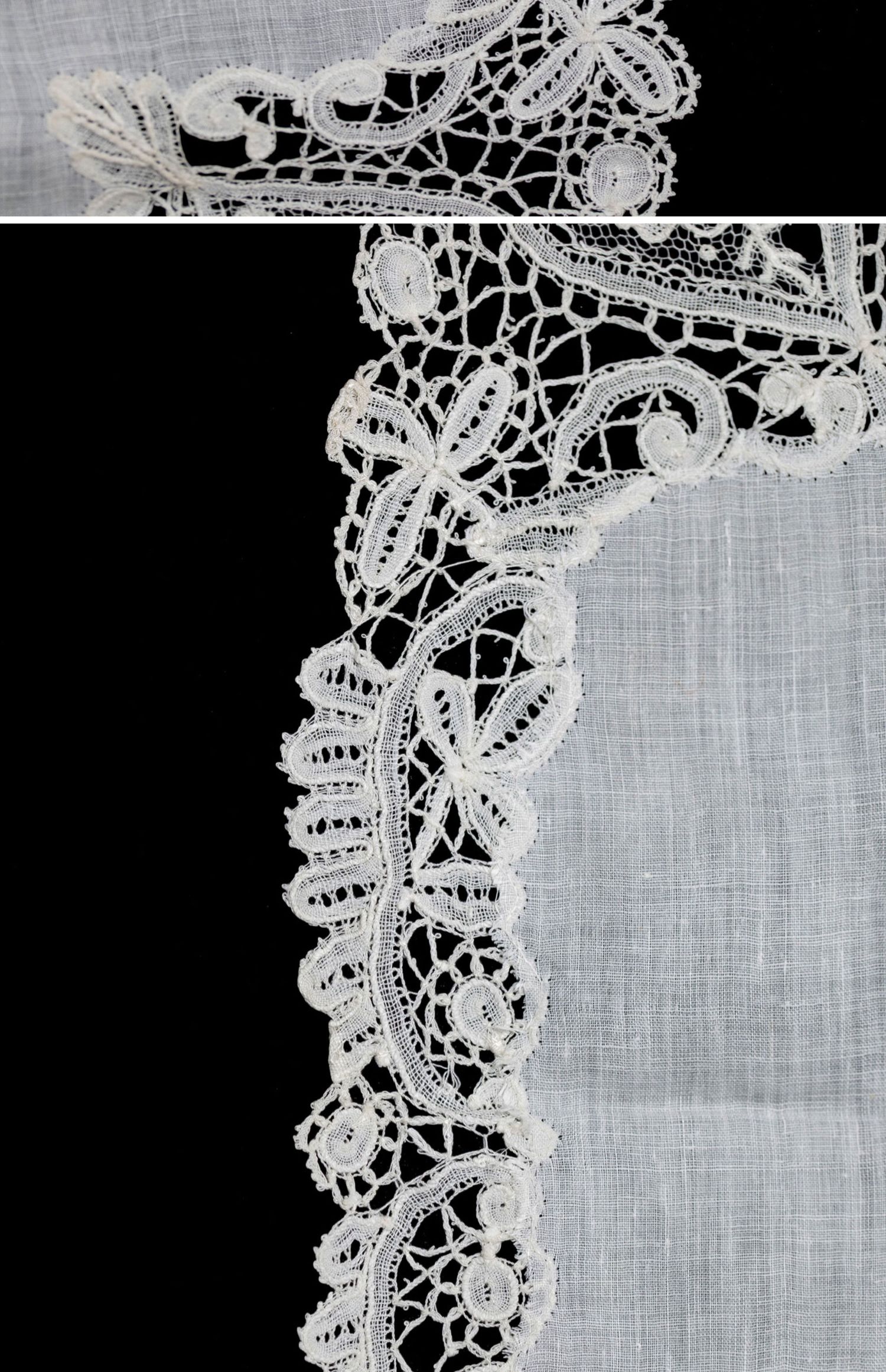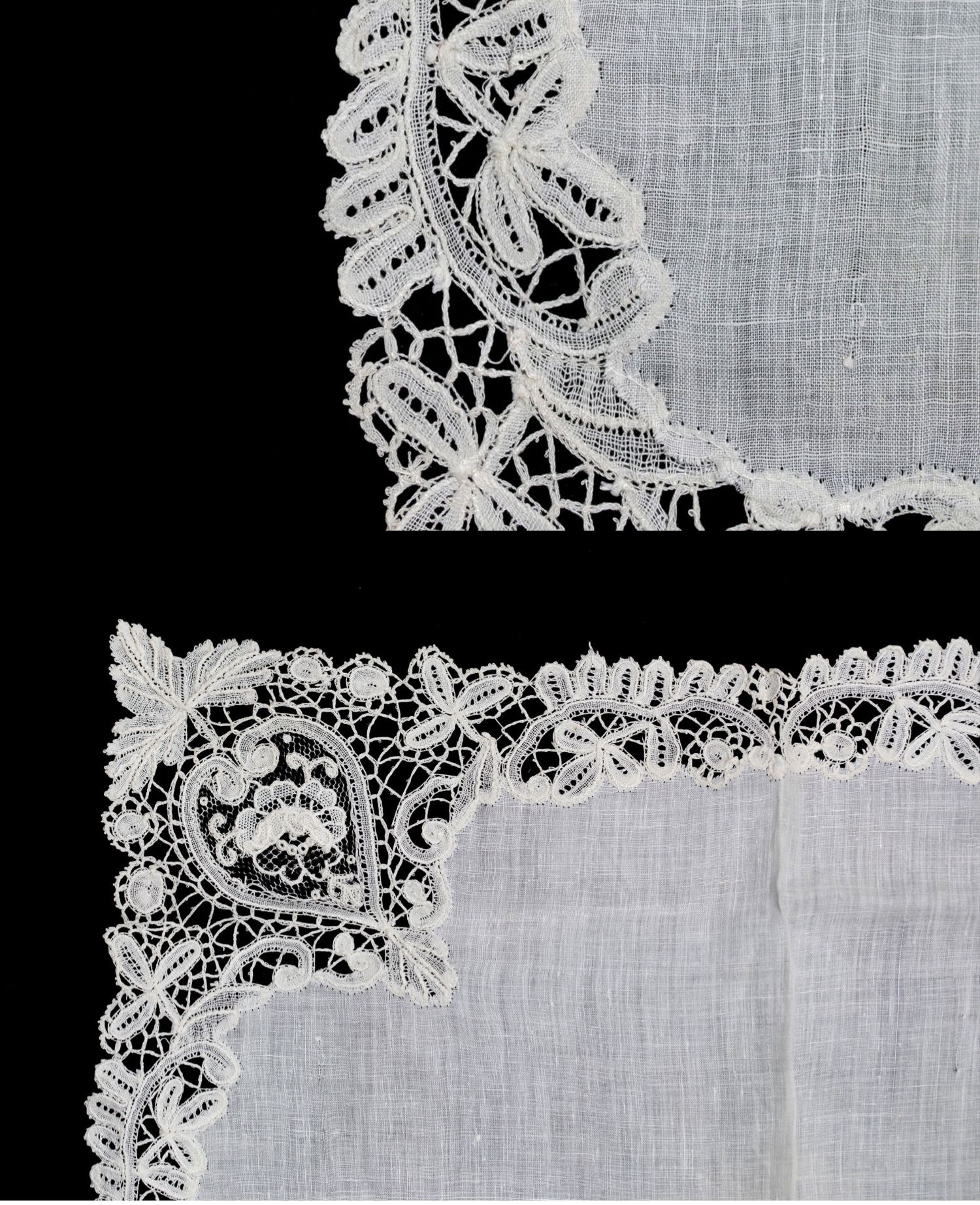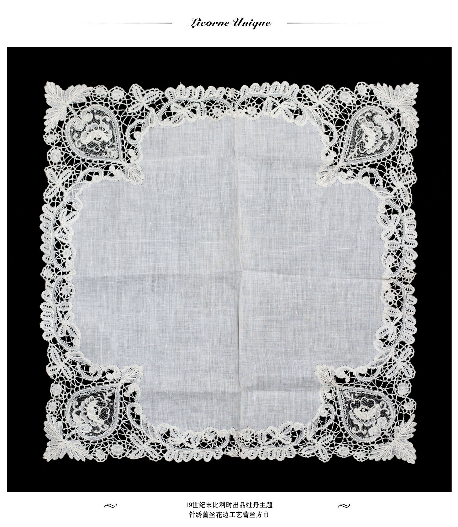 独角鹿西洋古董19世纪末比利时牡丹主题针绣蕾丝花边工艺蕾丝方巾
