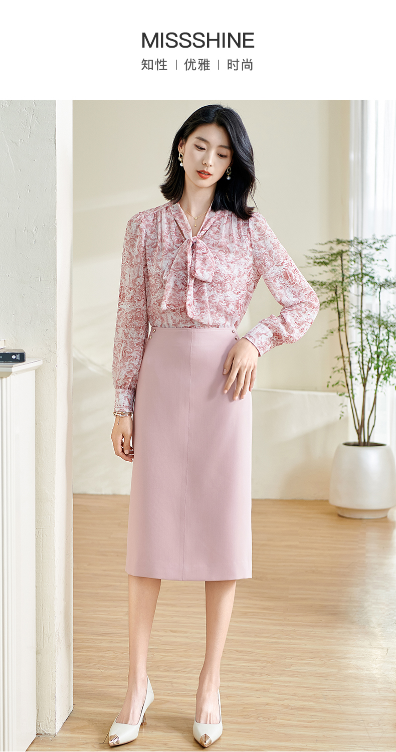 剩S/M 米思阳2026春季新款气质简约粉色半身裙修身开叉弹力一步裙女0442