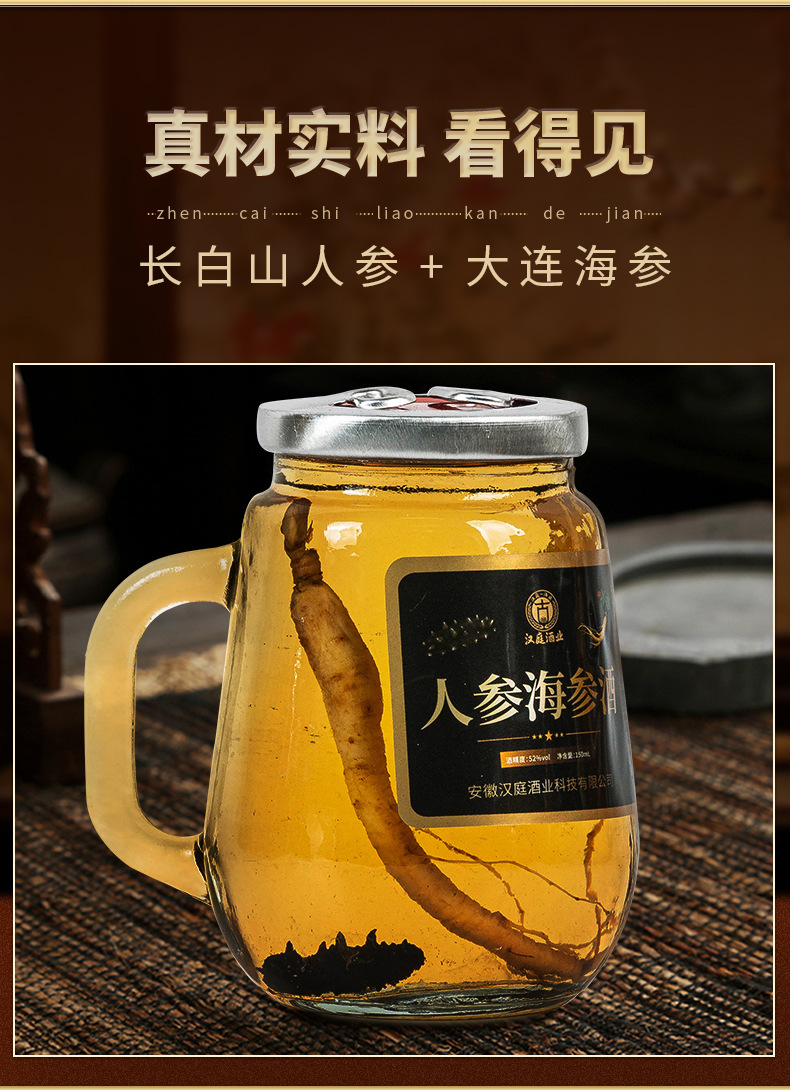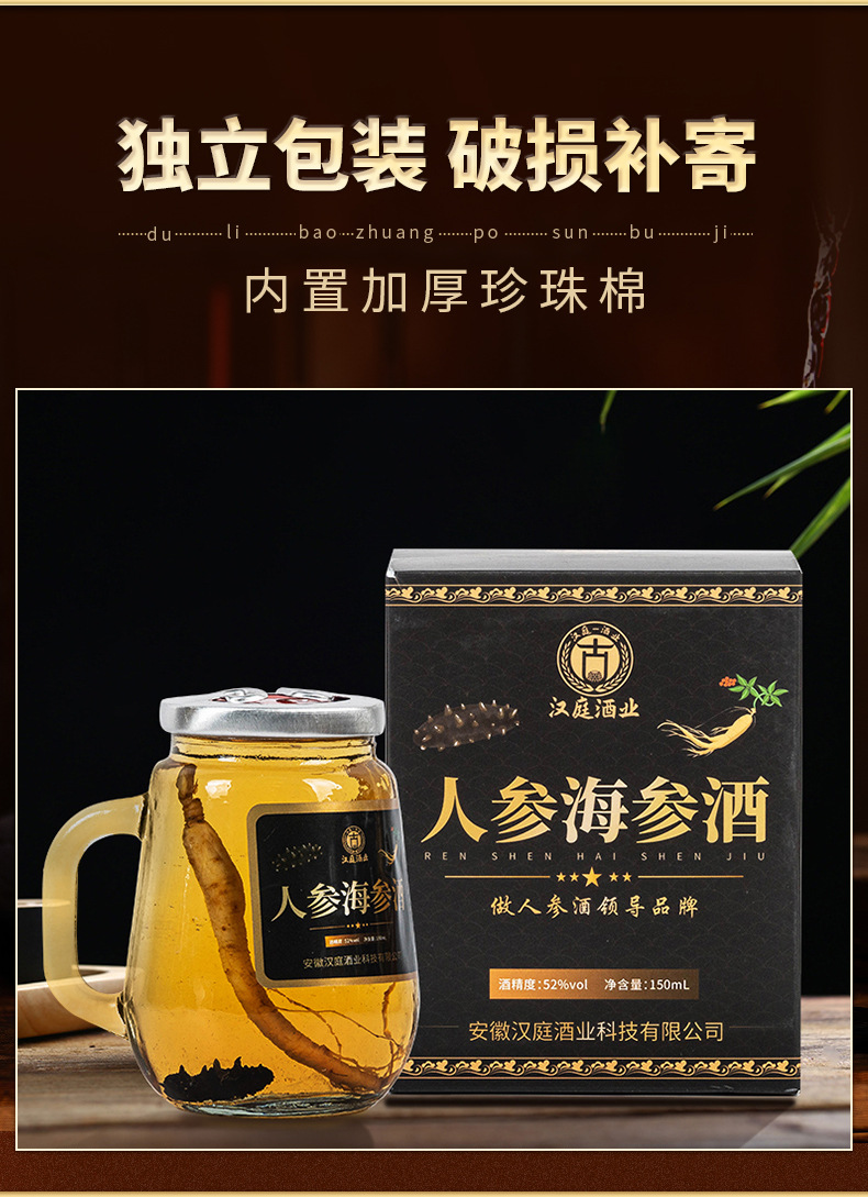 【六瓶更超值❗人参海参酒】甄选品质原料制作,优选长白山人参+大连海参,真材实料看得见,口感柔和,酒香四溢,52度150ml滋补,海参酒长白山人参海参L