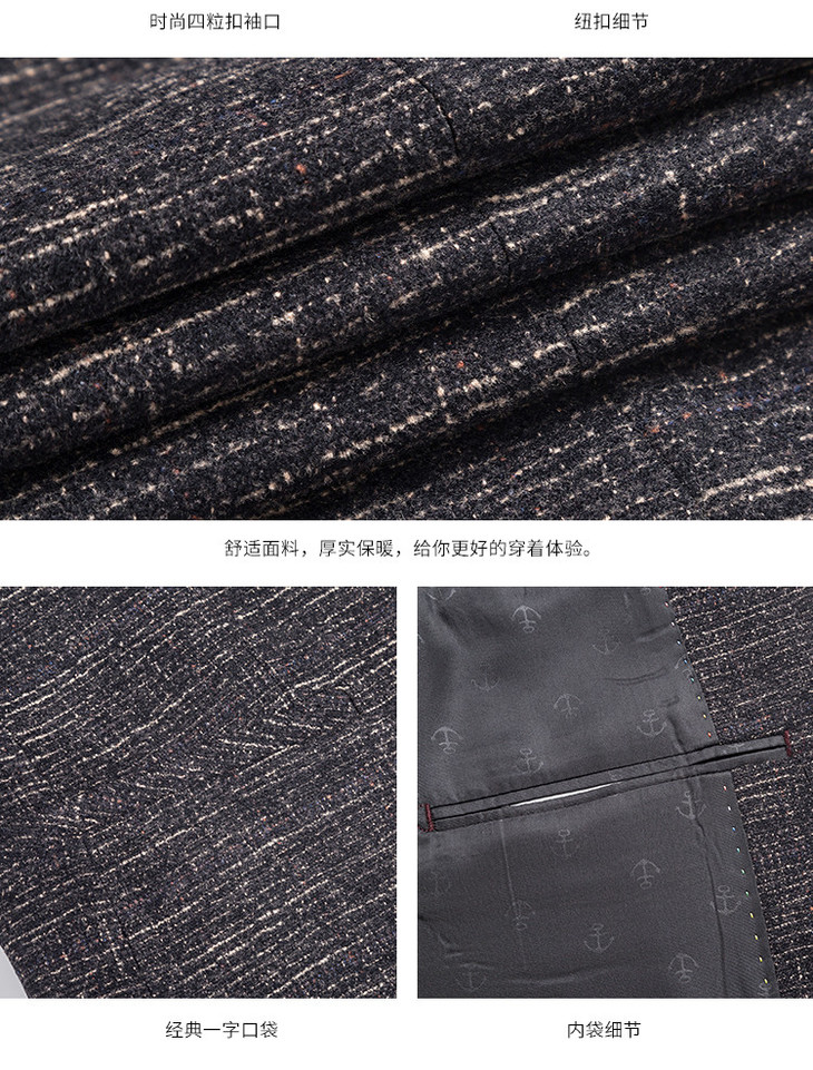 【磨毛面料】罗蒙男士休闲西装外套厚款格子西服男式单西