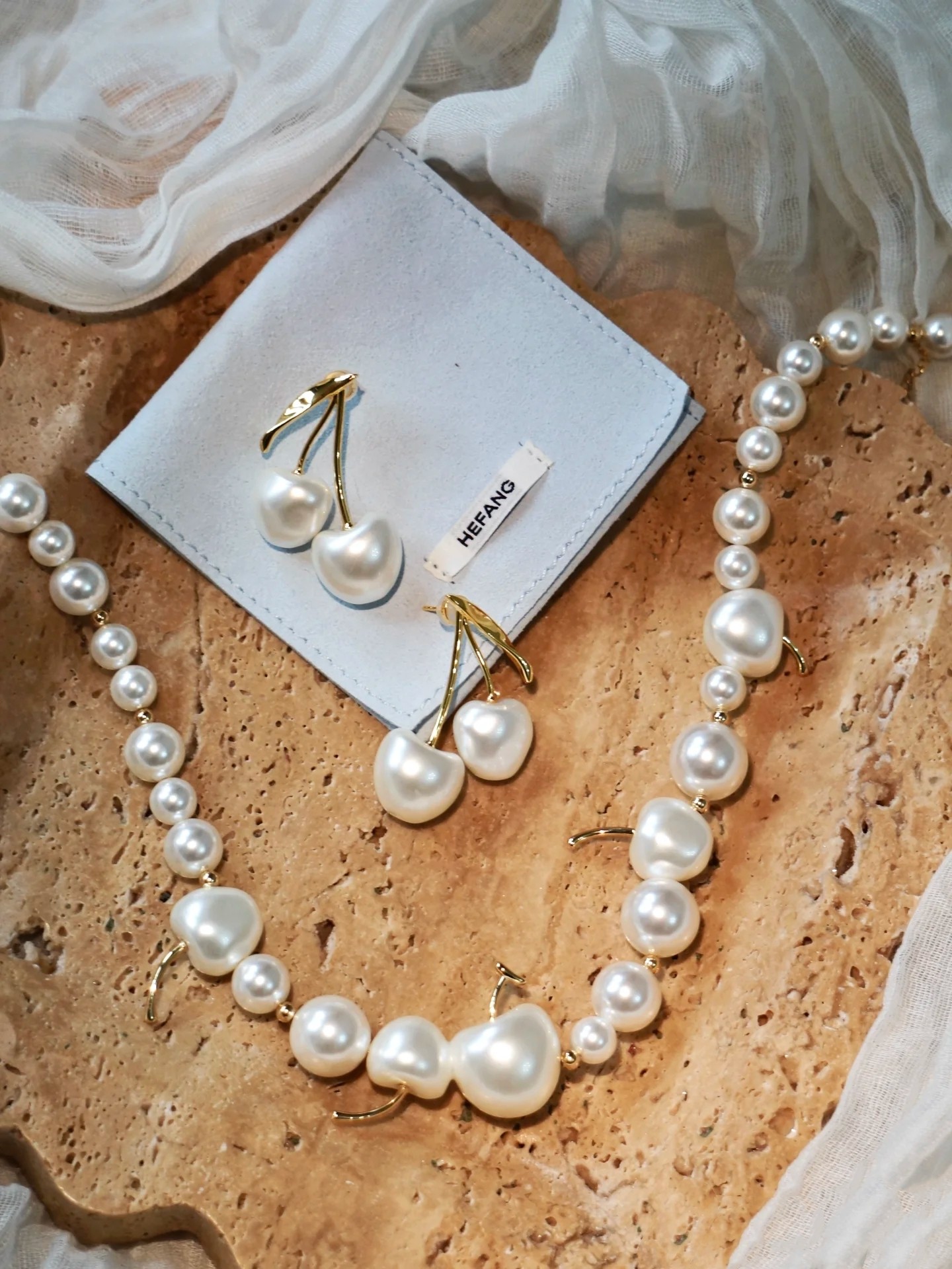 珍珠车厘子这套的设计真的不得不爱,看上去就像是涂满了奶油的车厘子,超级甜!大小错落的贝壳圆珠与立体车厘子、小金珠随性组合,造型充满创意与匠心巧思!樱桃呈现出珍珠般的光泽,俏皮可爱的基础上又叠加一层温柔气质,不得不说设计师太会了白金配色精致耐看,营造出视觉美感,戴上去时髦又精致透出一种华丽的复古风,给沉闷的秋冬带来不一样的视觉感受!