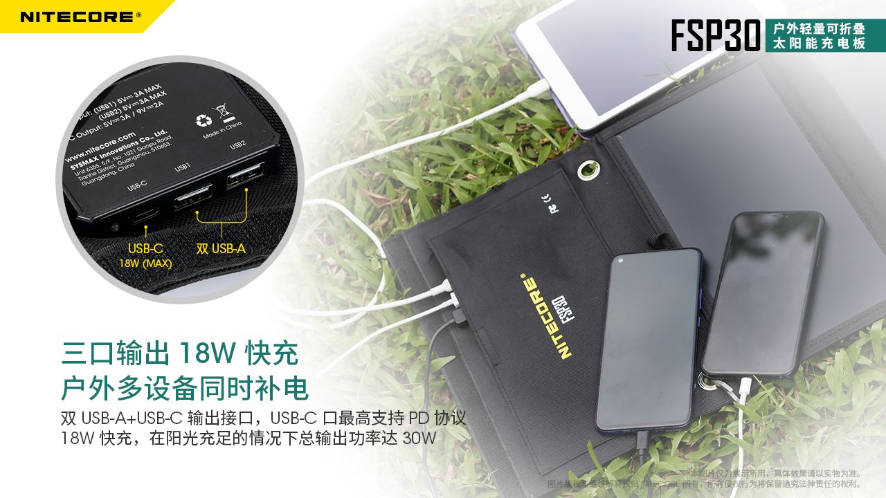 NITECORE奈特科尔FSP30户外便携可折叠太阳能充电板