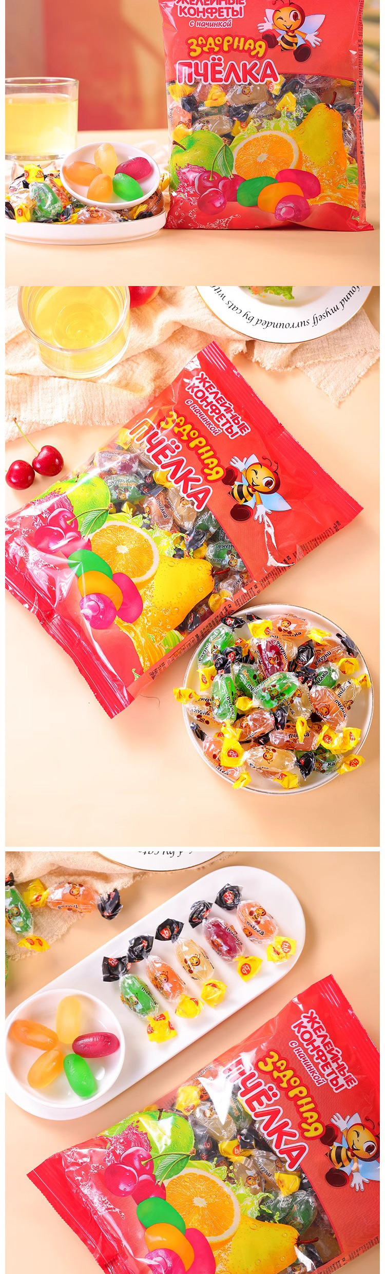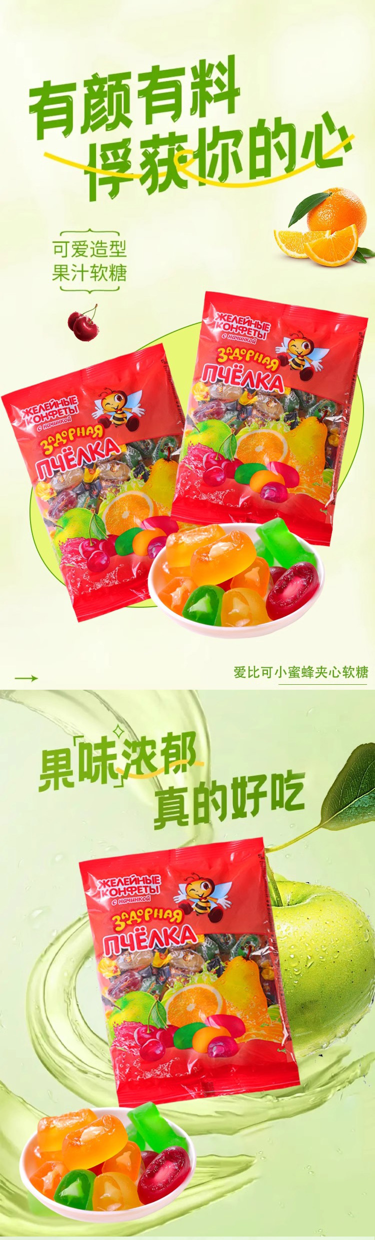俄罗斯进口爱比可小蜜蜂夹心软糖500g