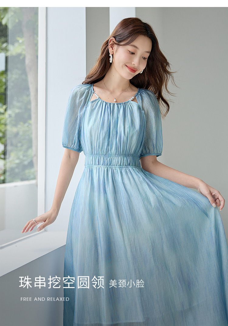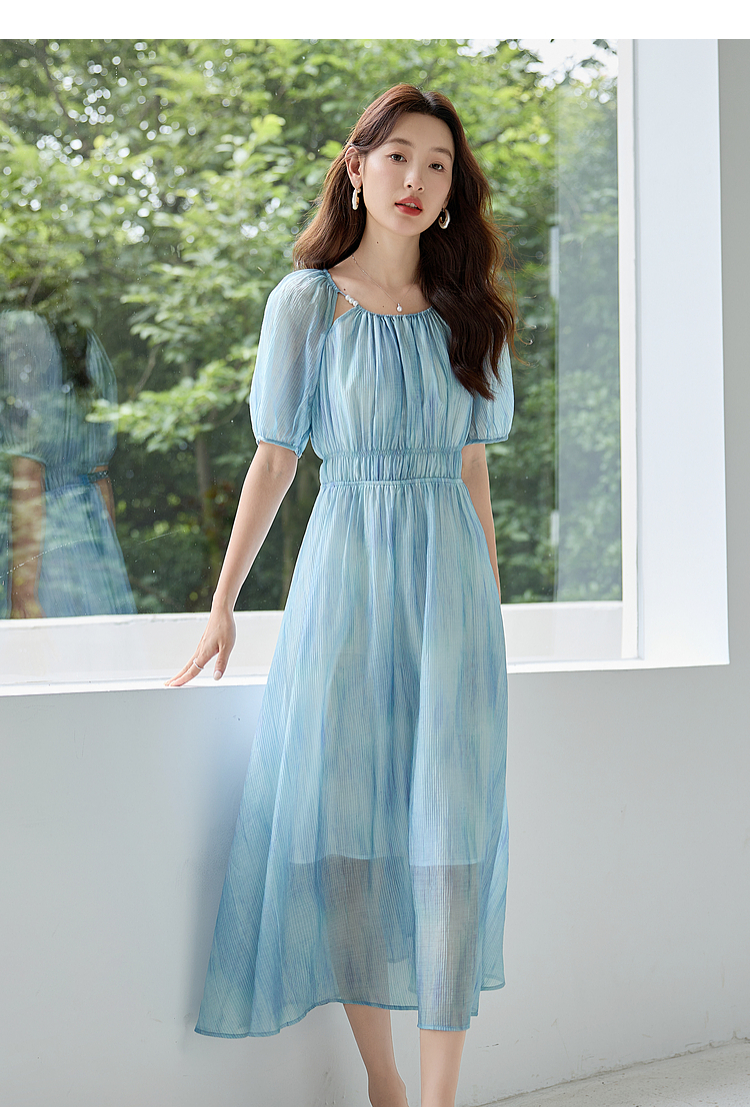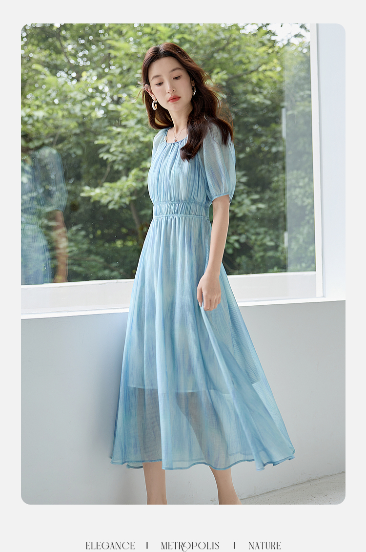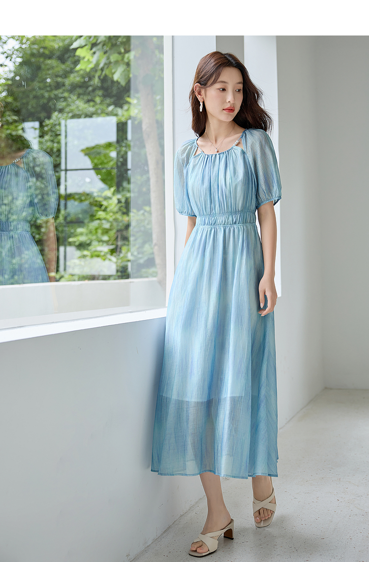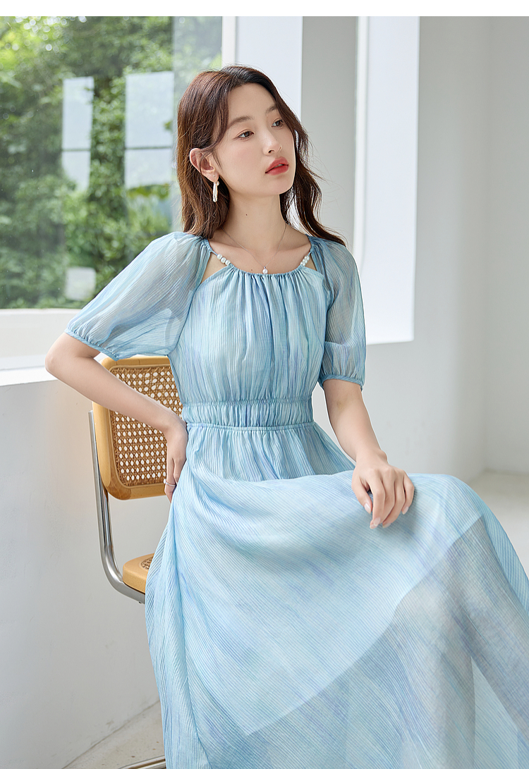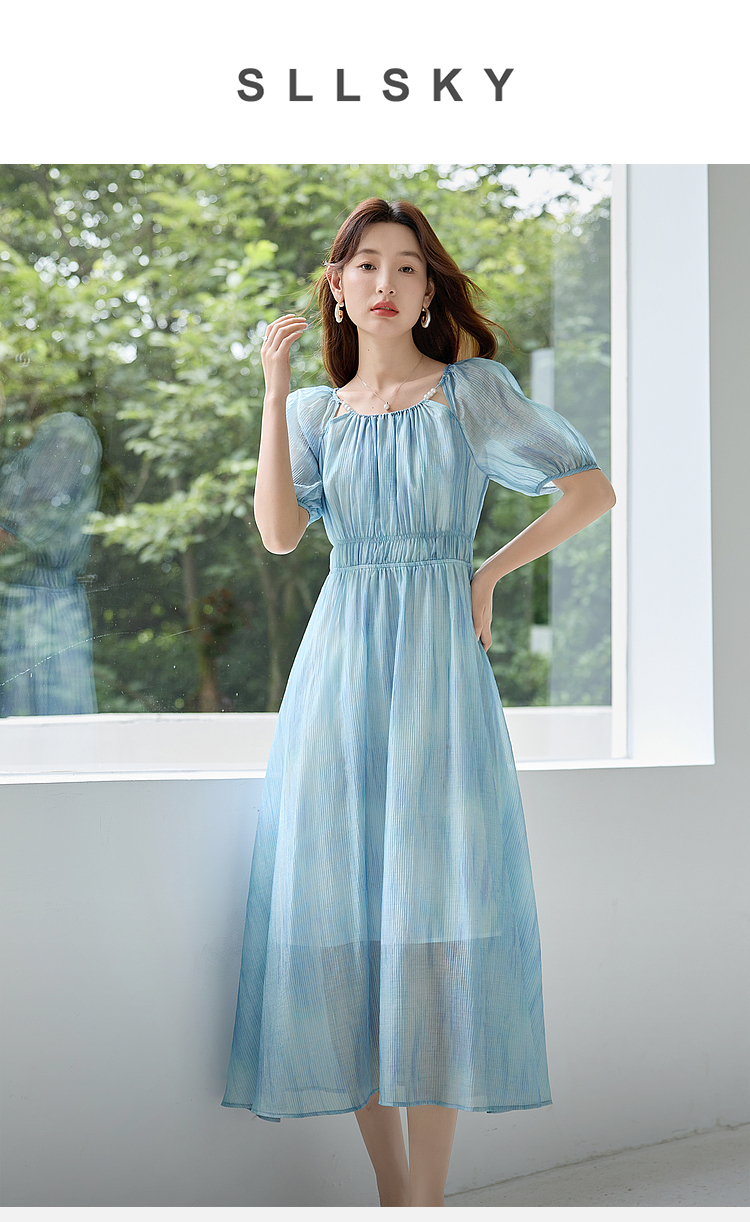 【专属特价】熙世界气质绝美蓝色天丝连衣裙2025夏季新款法式海边度假风裙子