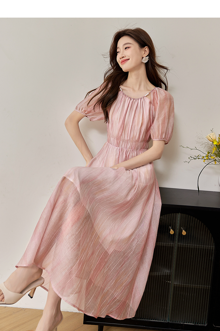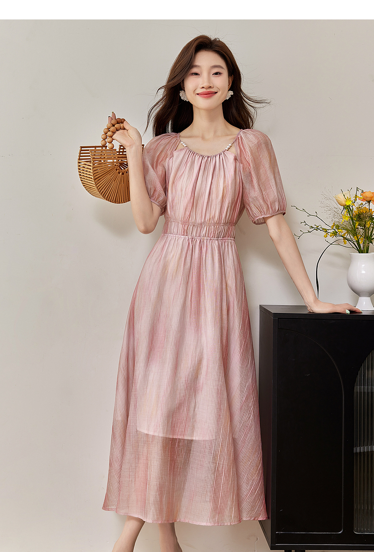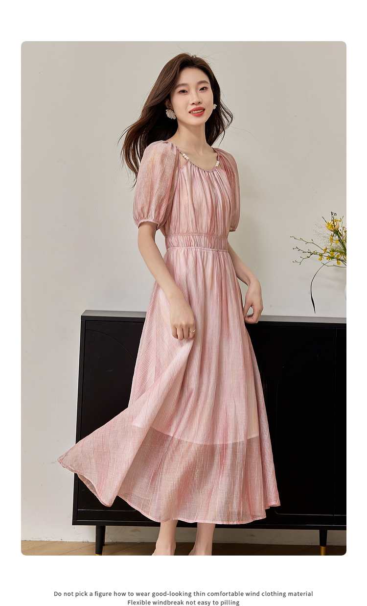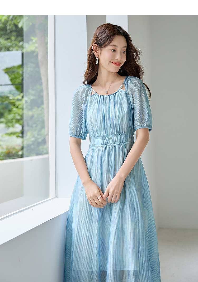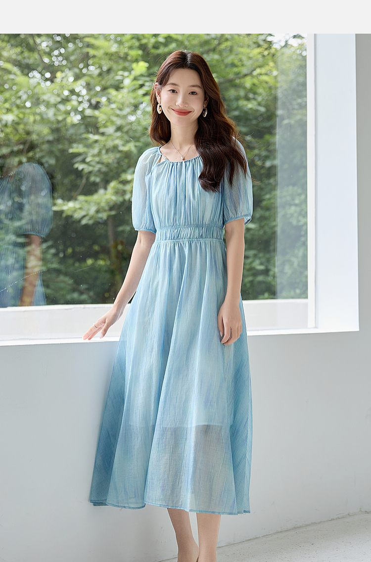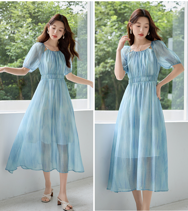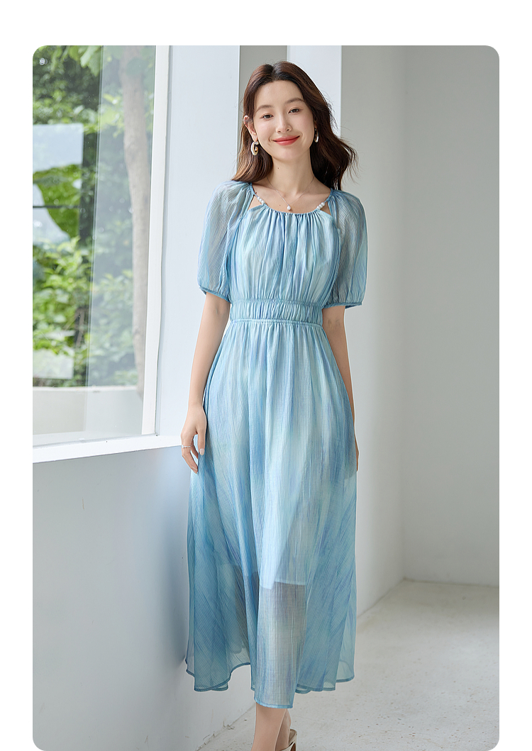 【专属特价】熙世界气质绝美蓝色天丝连衣裙2025夏季新款法式海边度假风裙子