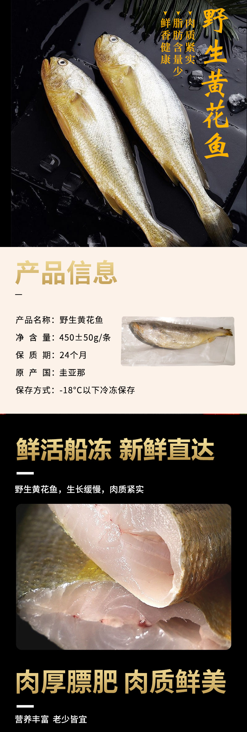 【野生海产】野生黄花鱼450±50g 大西洋纯净海域