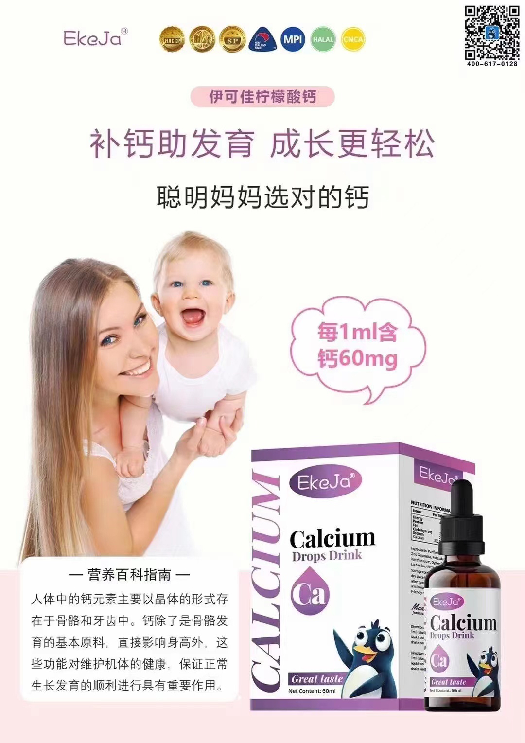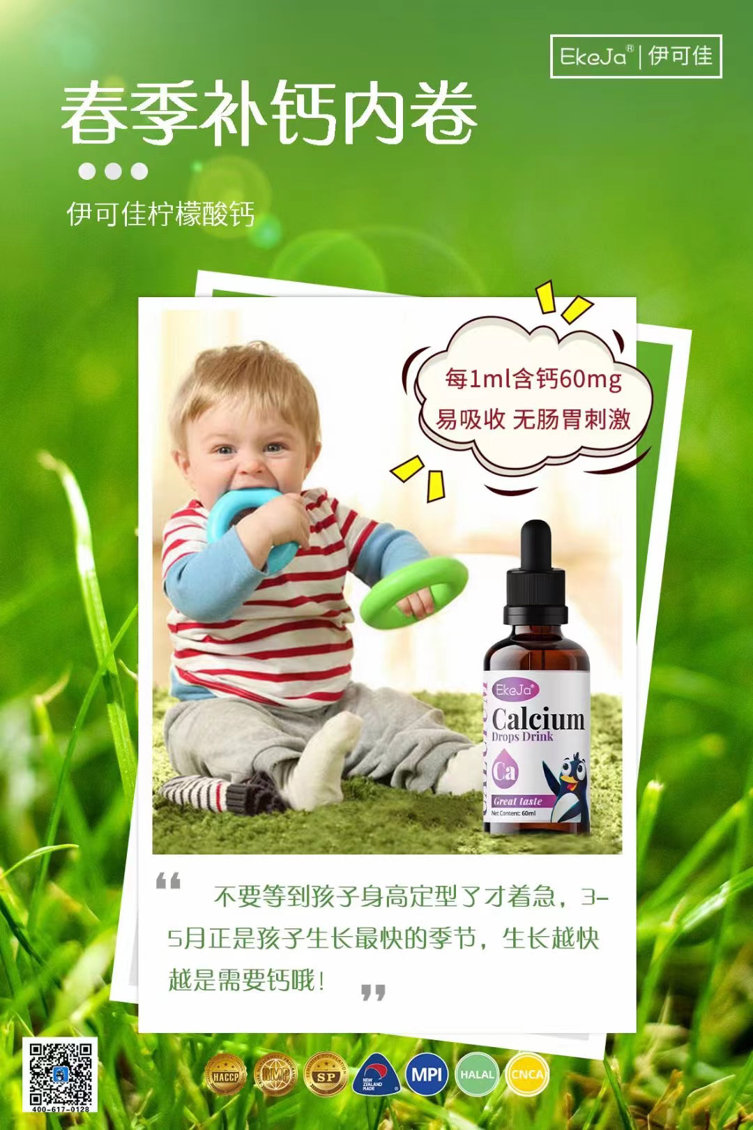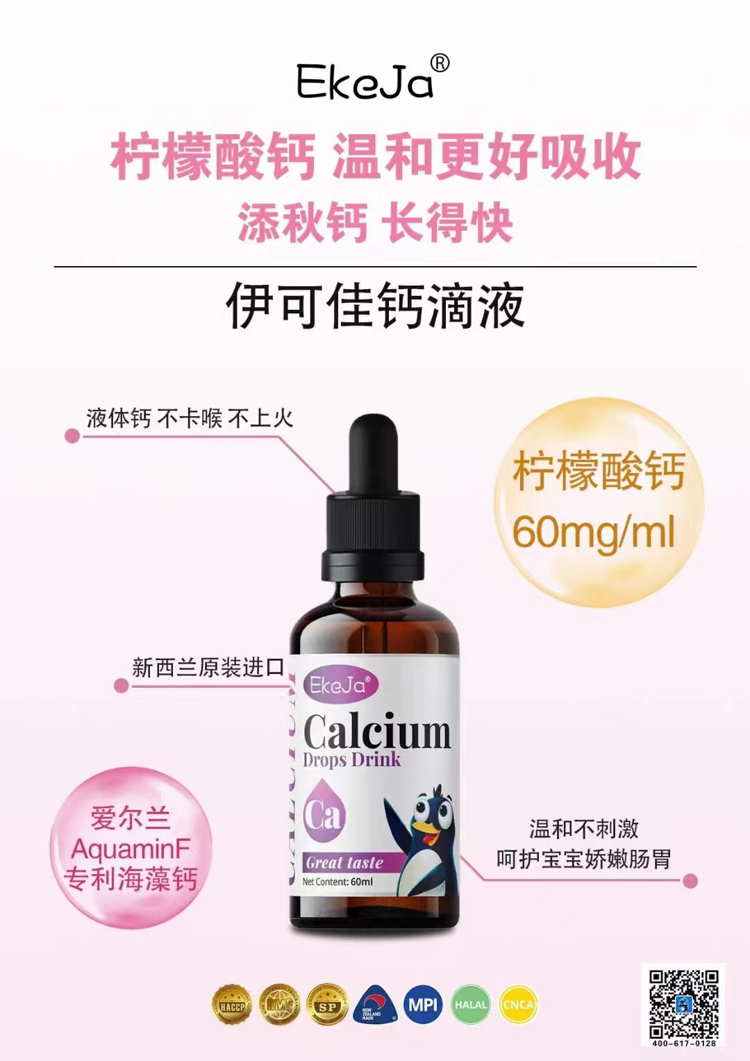 【 伊可佳钙滴剂】 柠檬酸钙➕ 海藻钙,1ml含钙60mg,新西兰原装进口,有机小分子吸收率高,水果口味,宝宝最爱,吸收不受胃酸影响,适合肠胃功能尚未发育完成的婴幼儿[强][强][强]