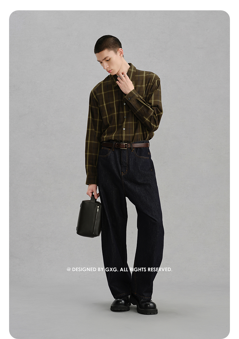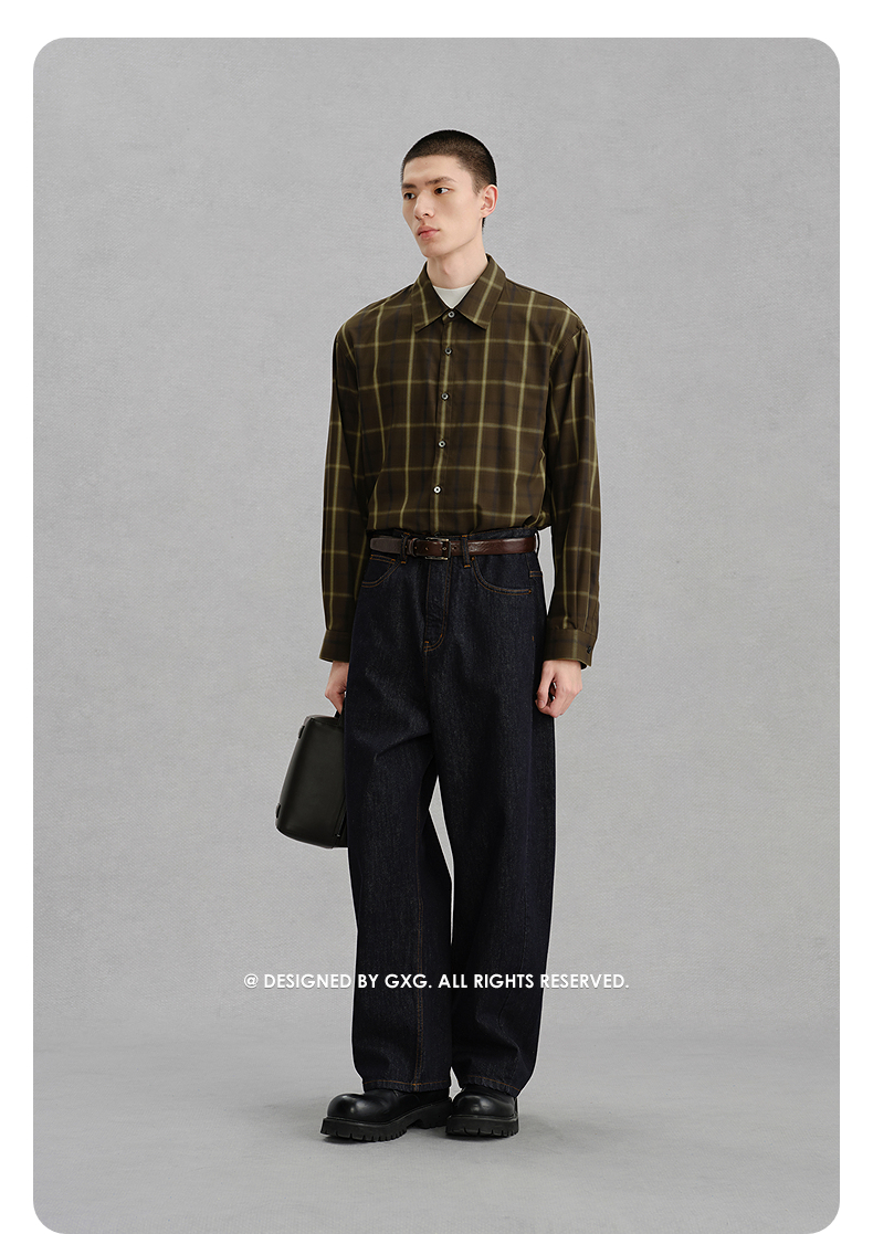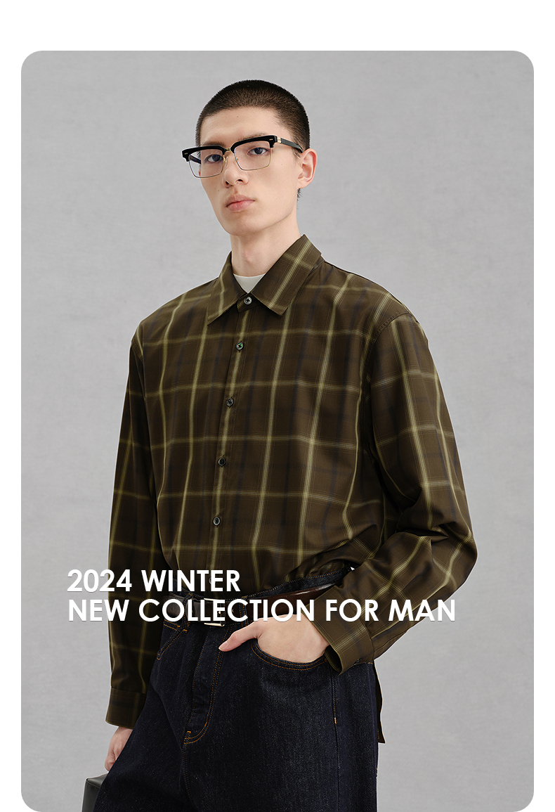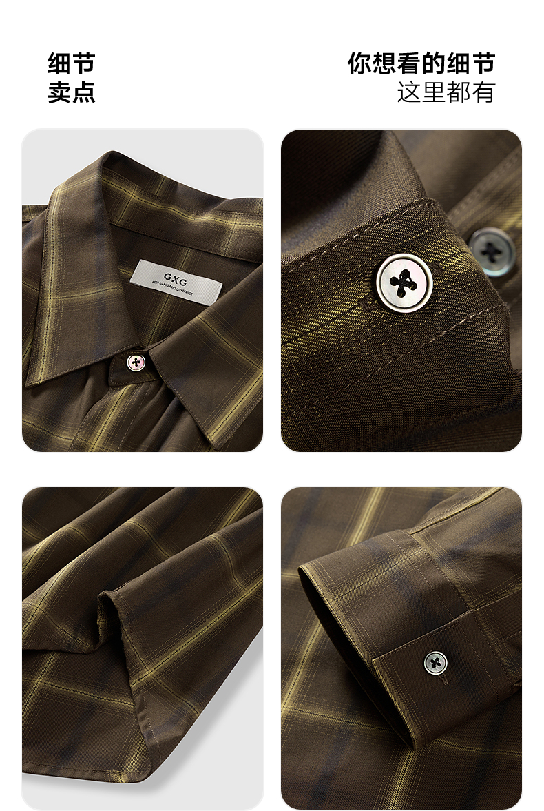 GXG男装 黄格休闲通勤翻领长袖衬衫 24冬热卖衬衫 G24X034057