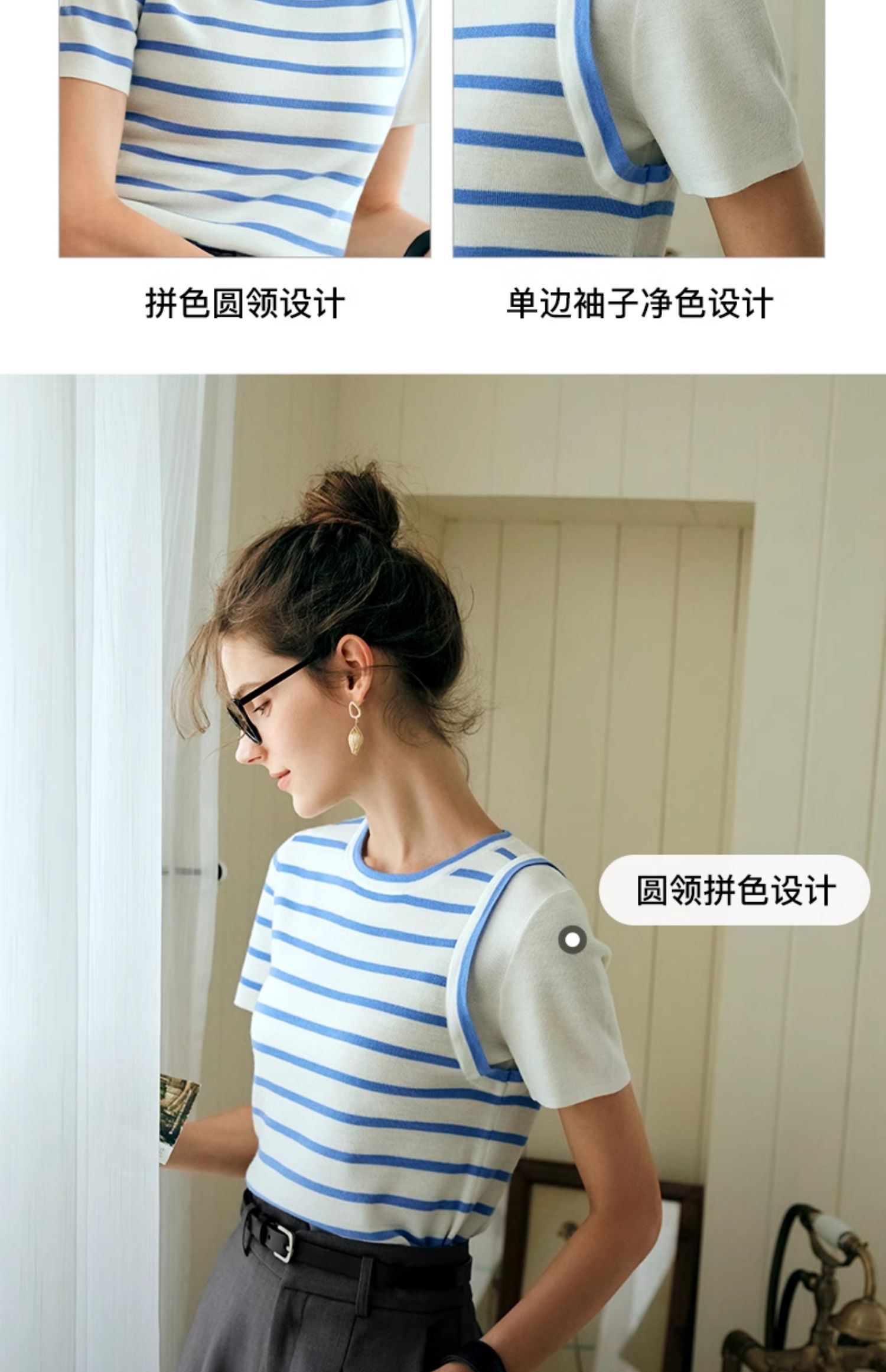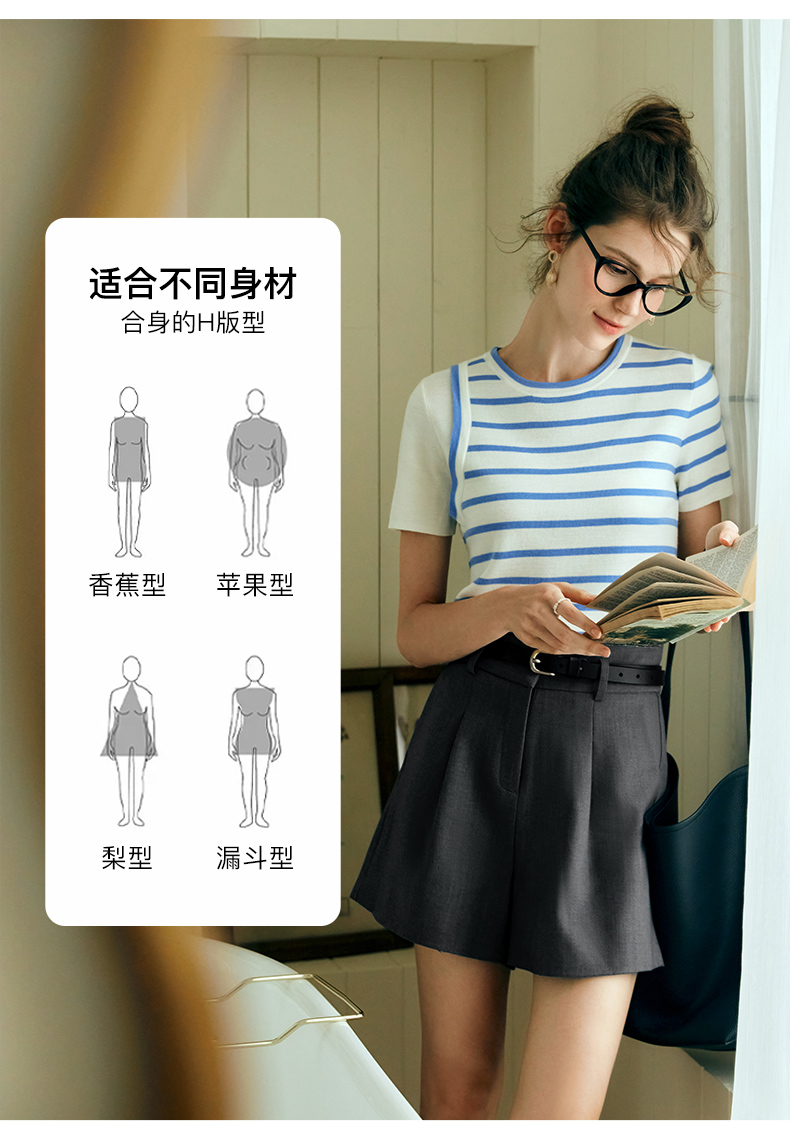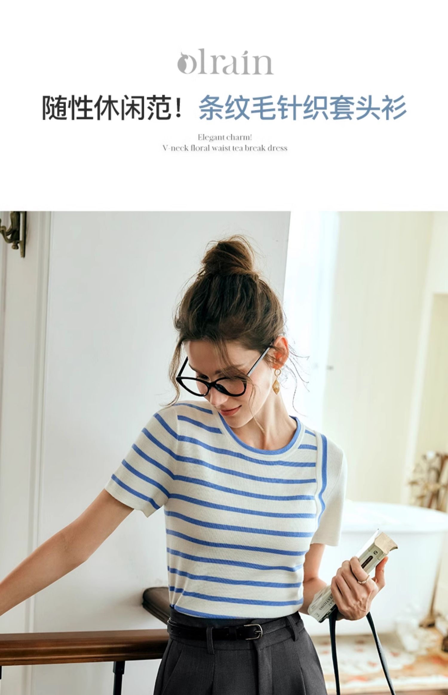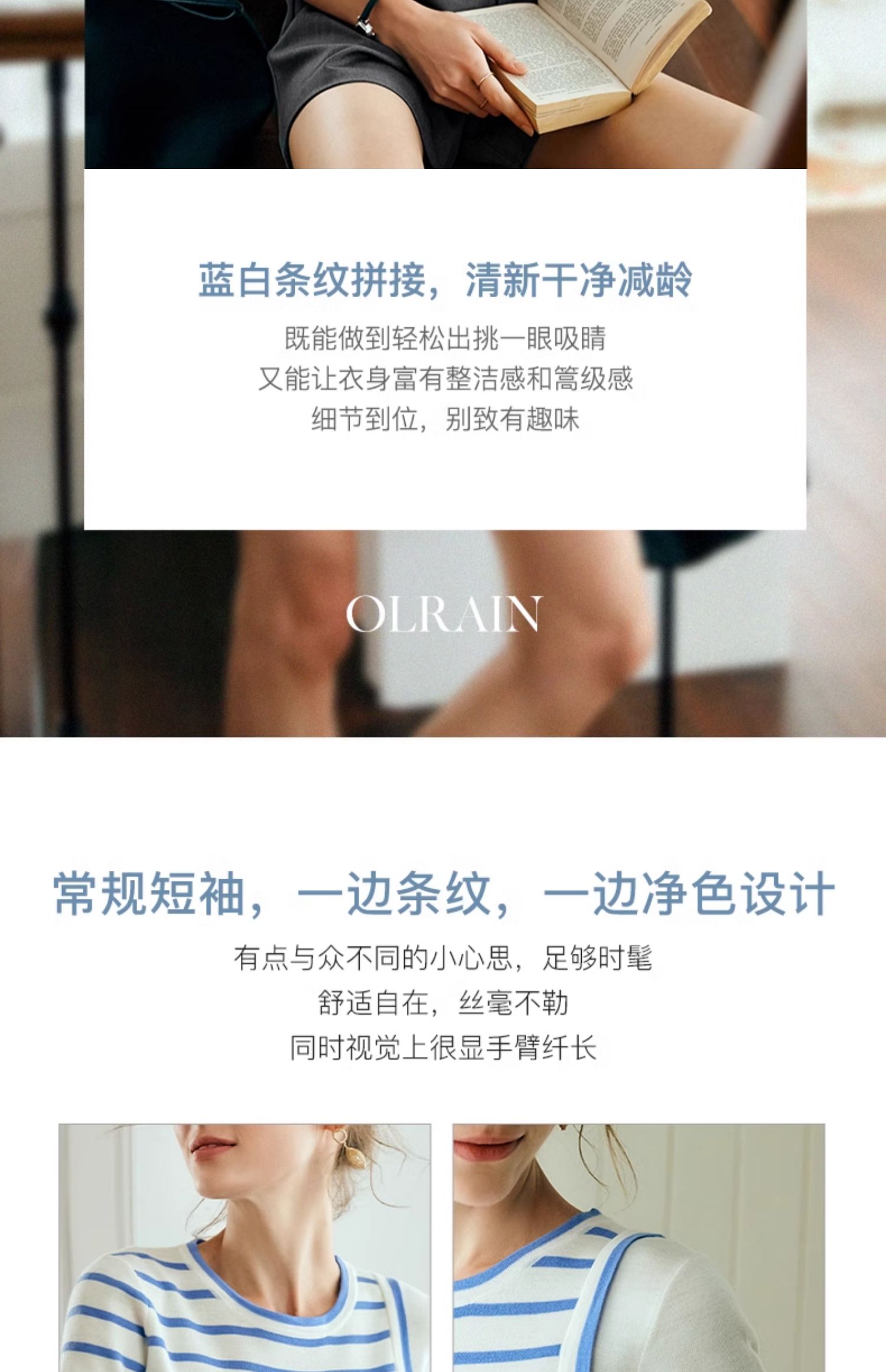 OLrain欧芮儿条纹针织衫女夏季2024年新款通勤百搭圆领短袖上衣