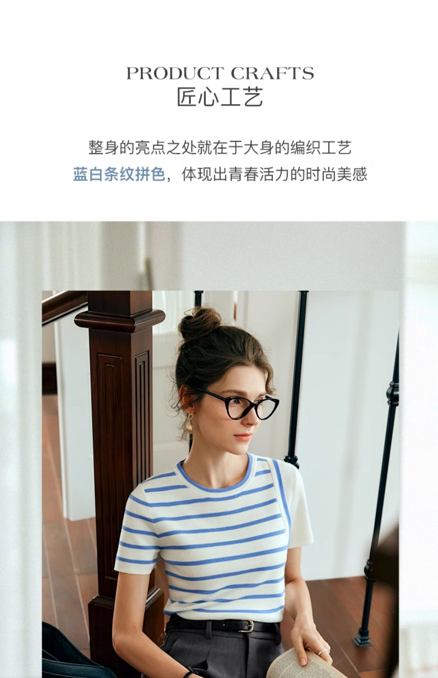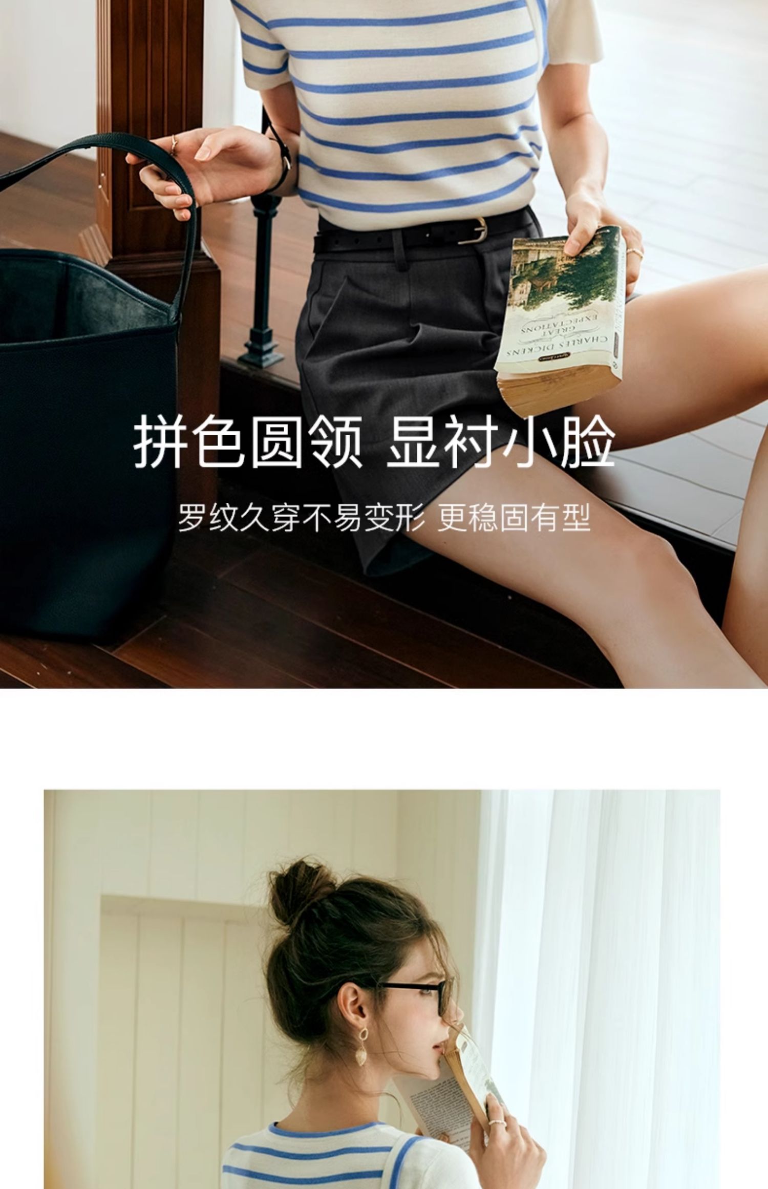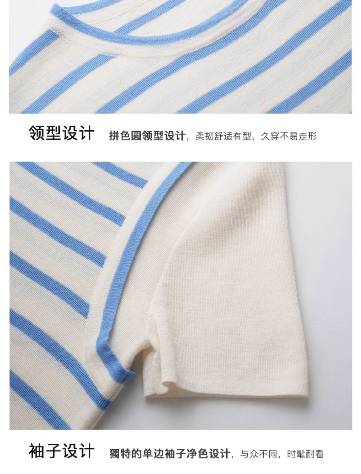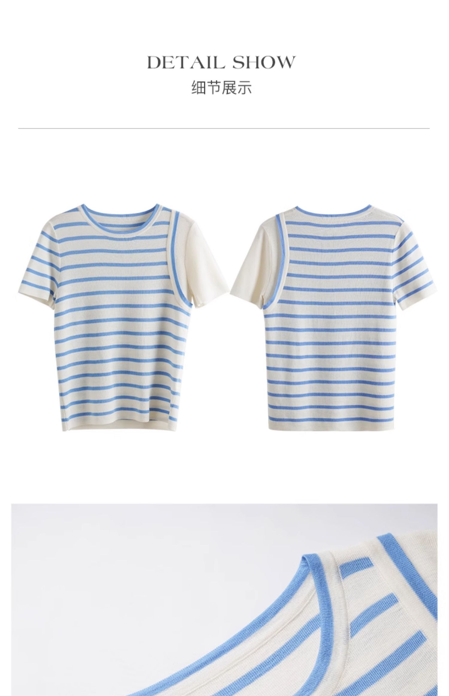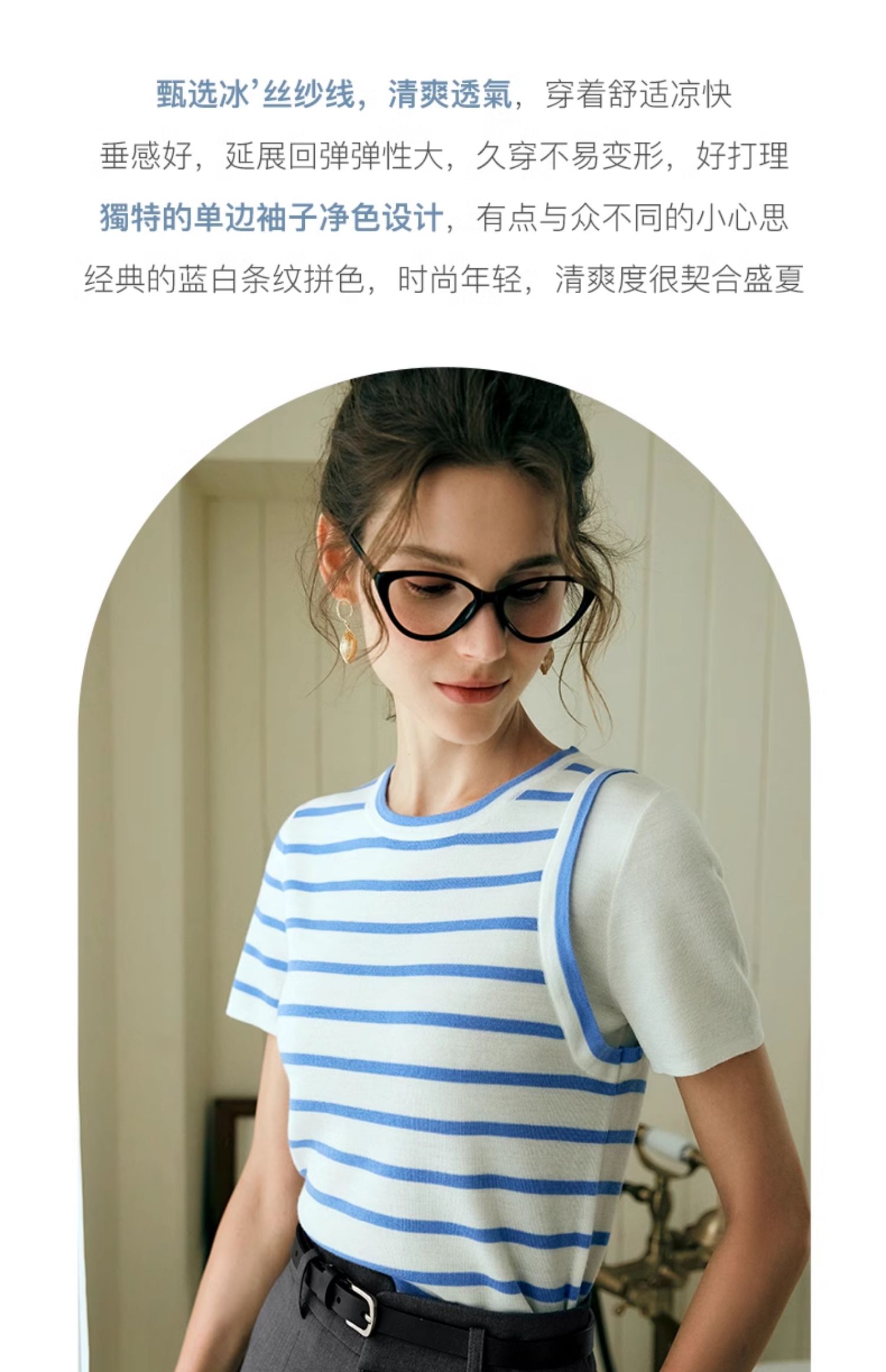 OLrain欧芮儿条纹针织衫女夏季2024年新款通勤百搭圆领短袖上衣