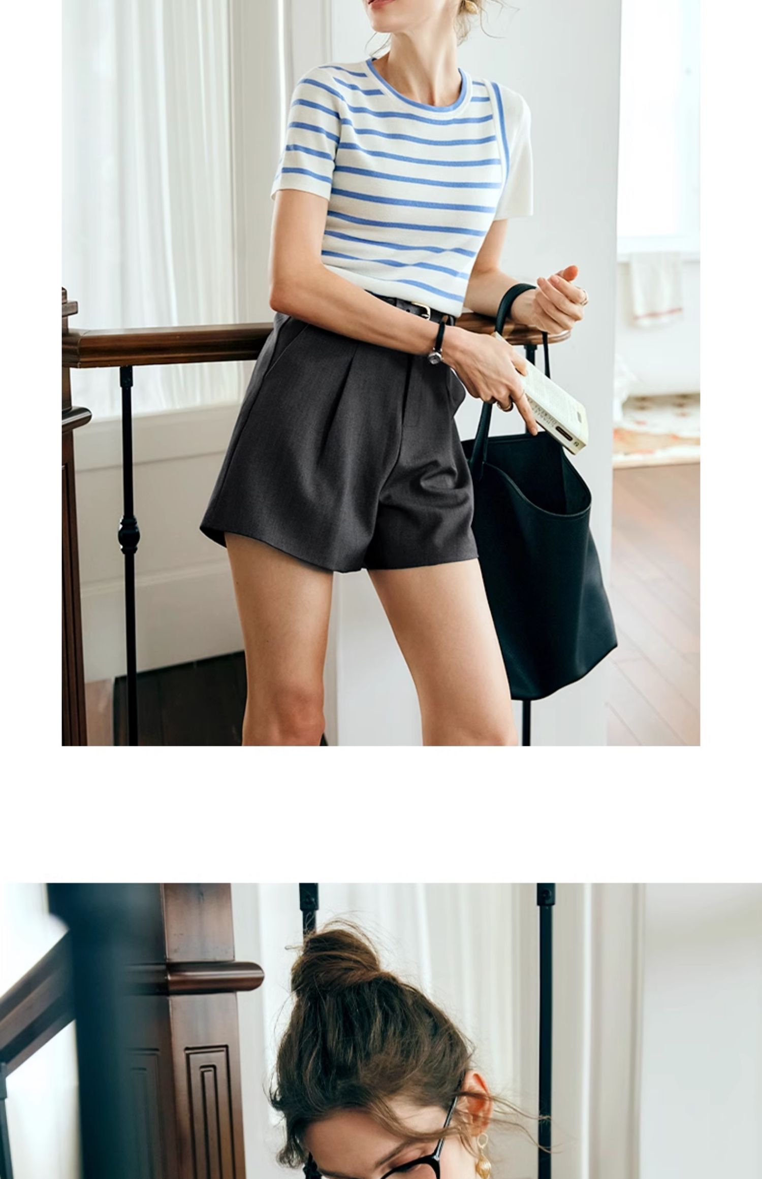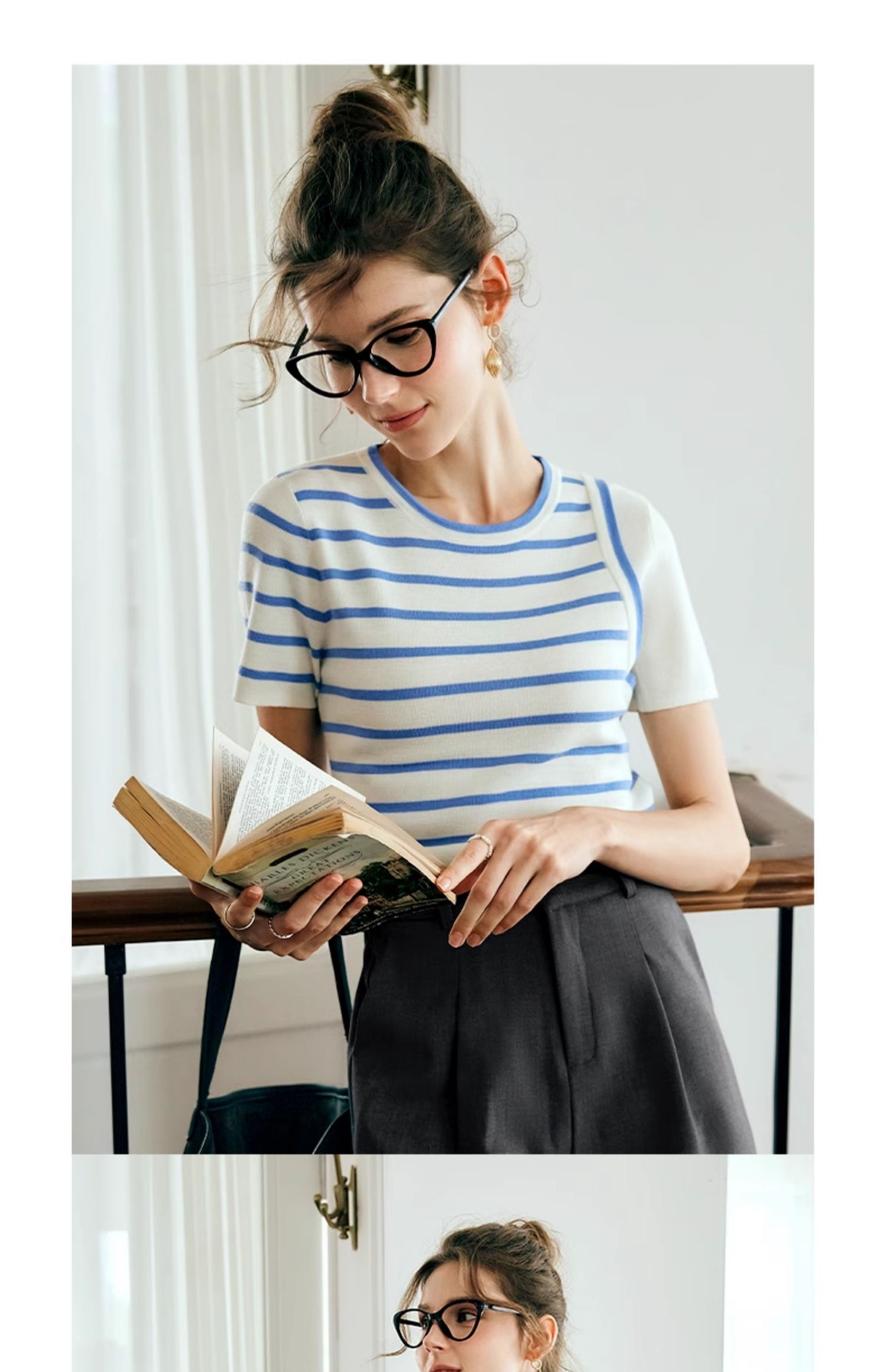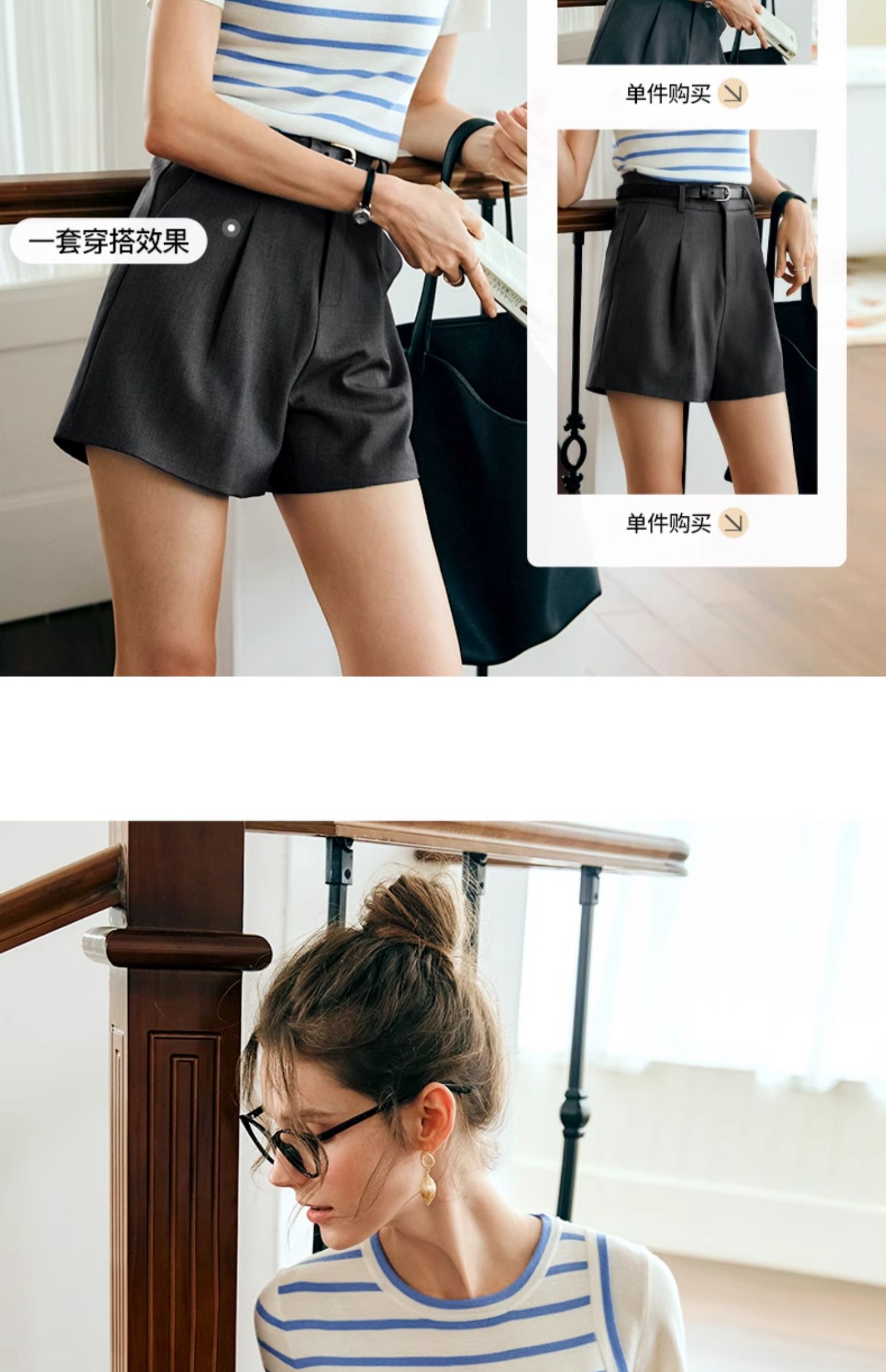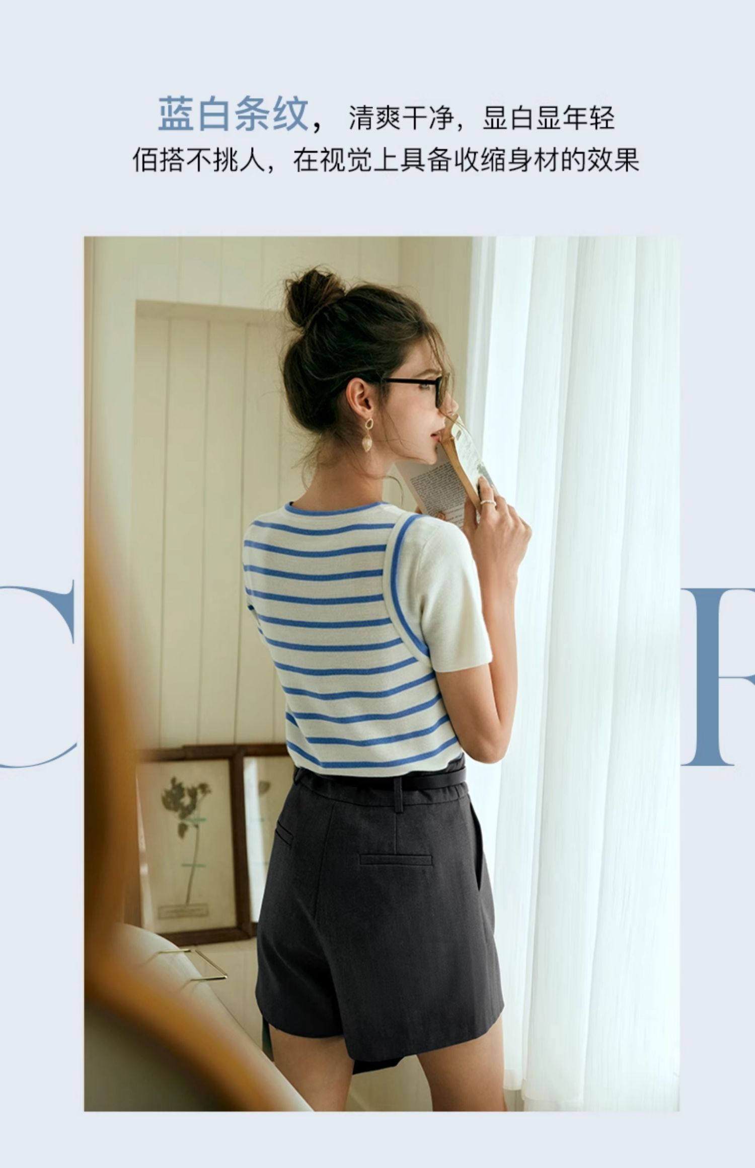 OLrain欧芮儿条纹针织衫女夏季2024年新款通勤百搭圆领短袖上衣